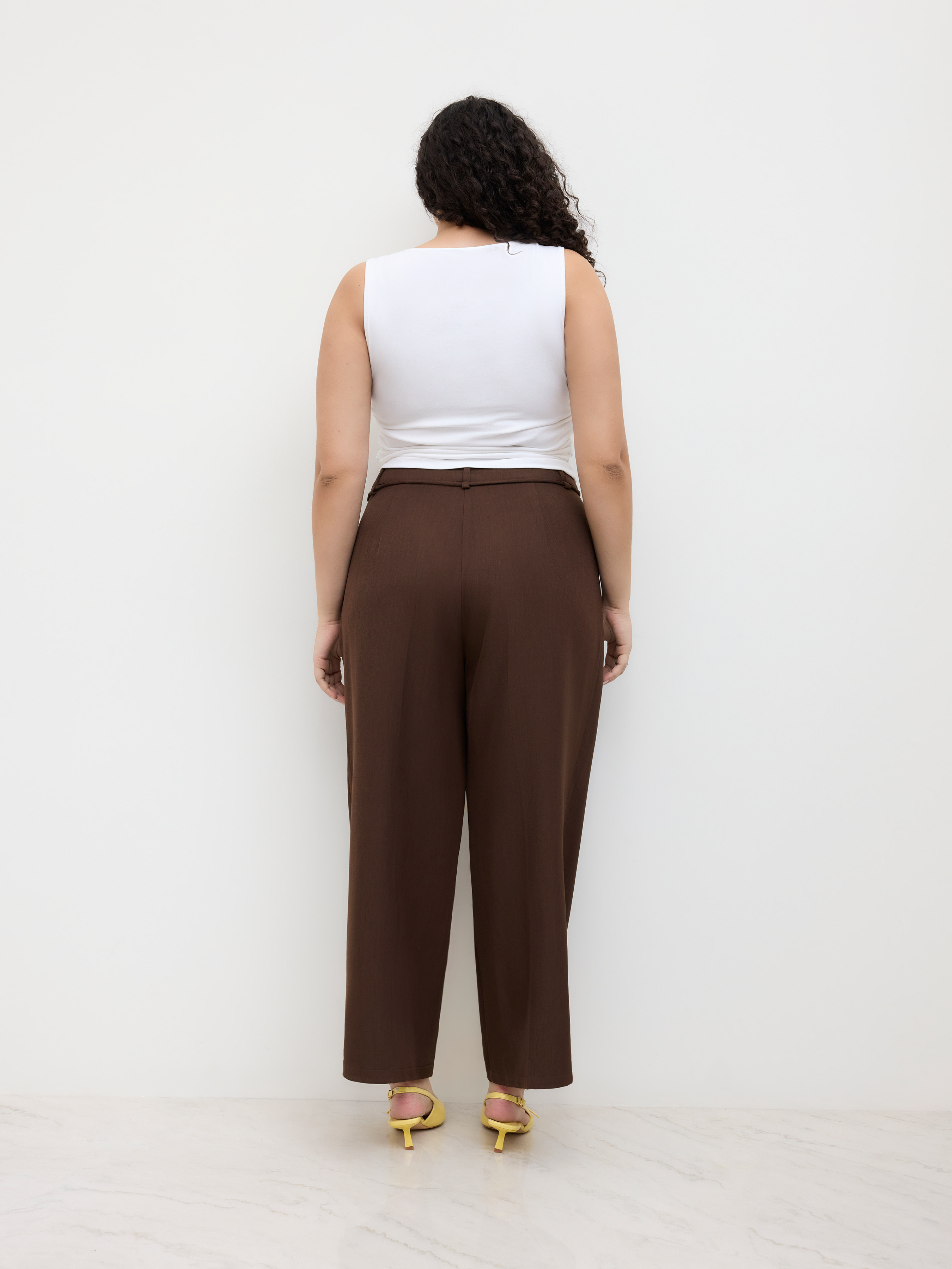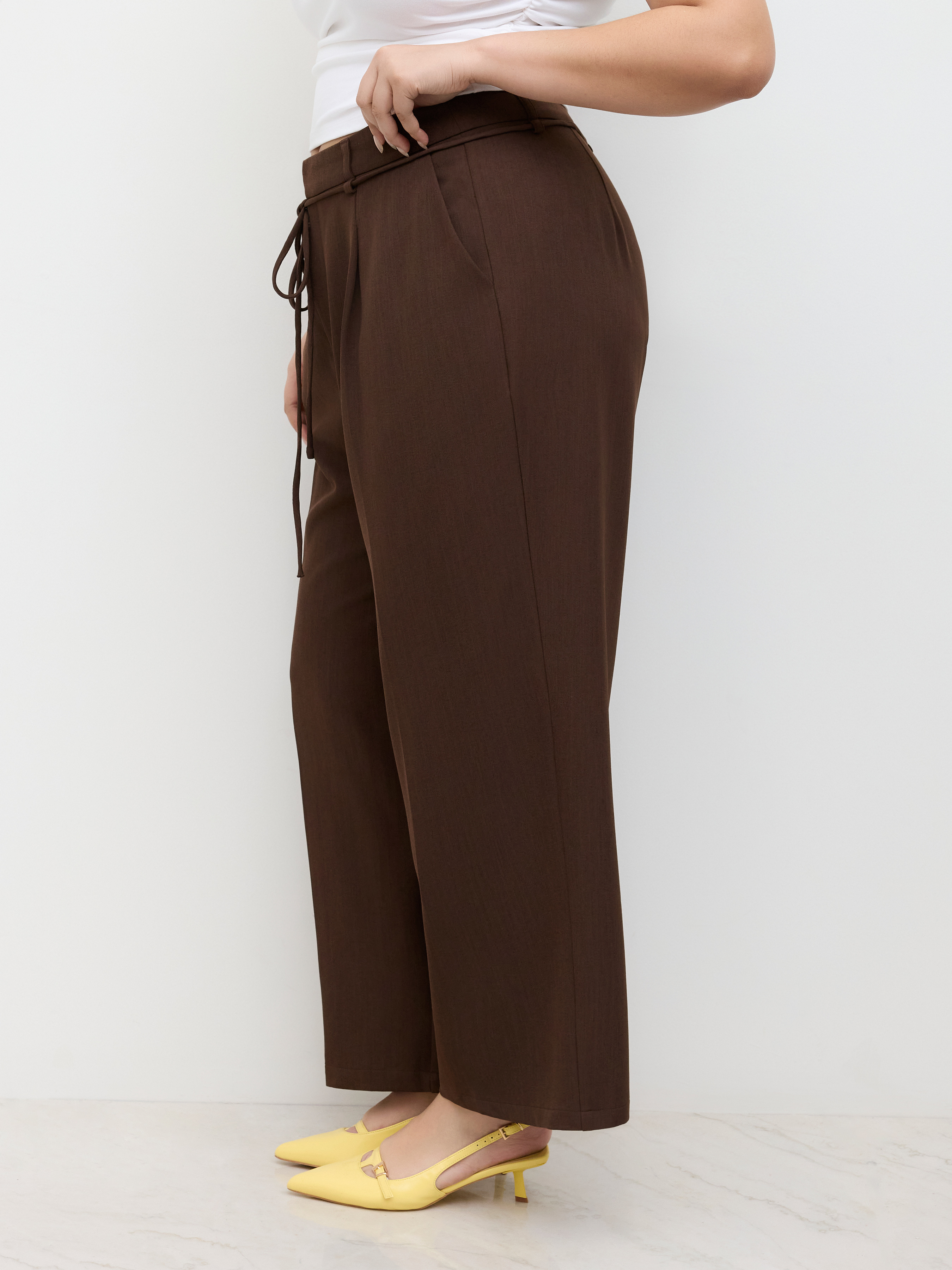 Pantaloni a gamba dritta con nodo a vita media Curve & Plus
