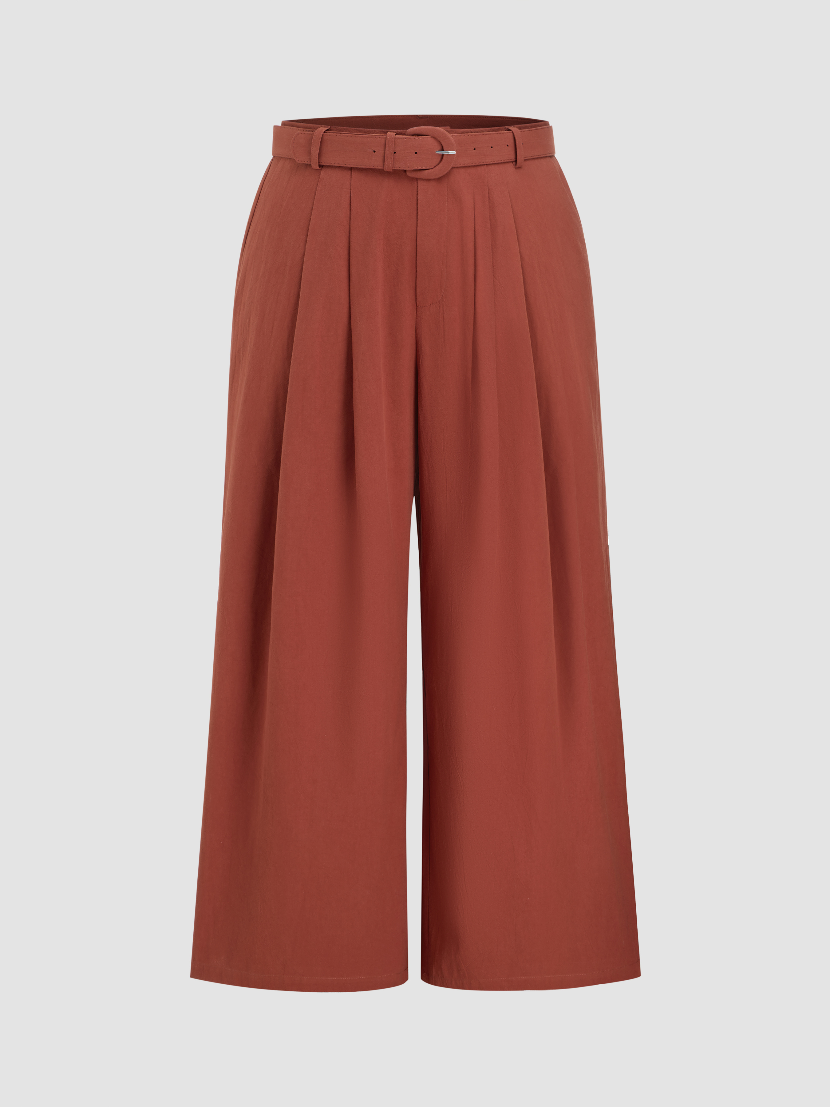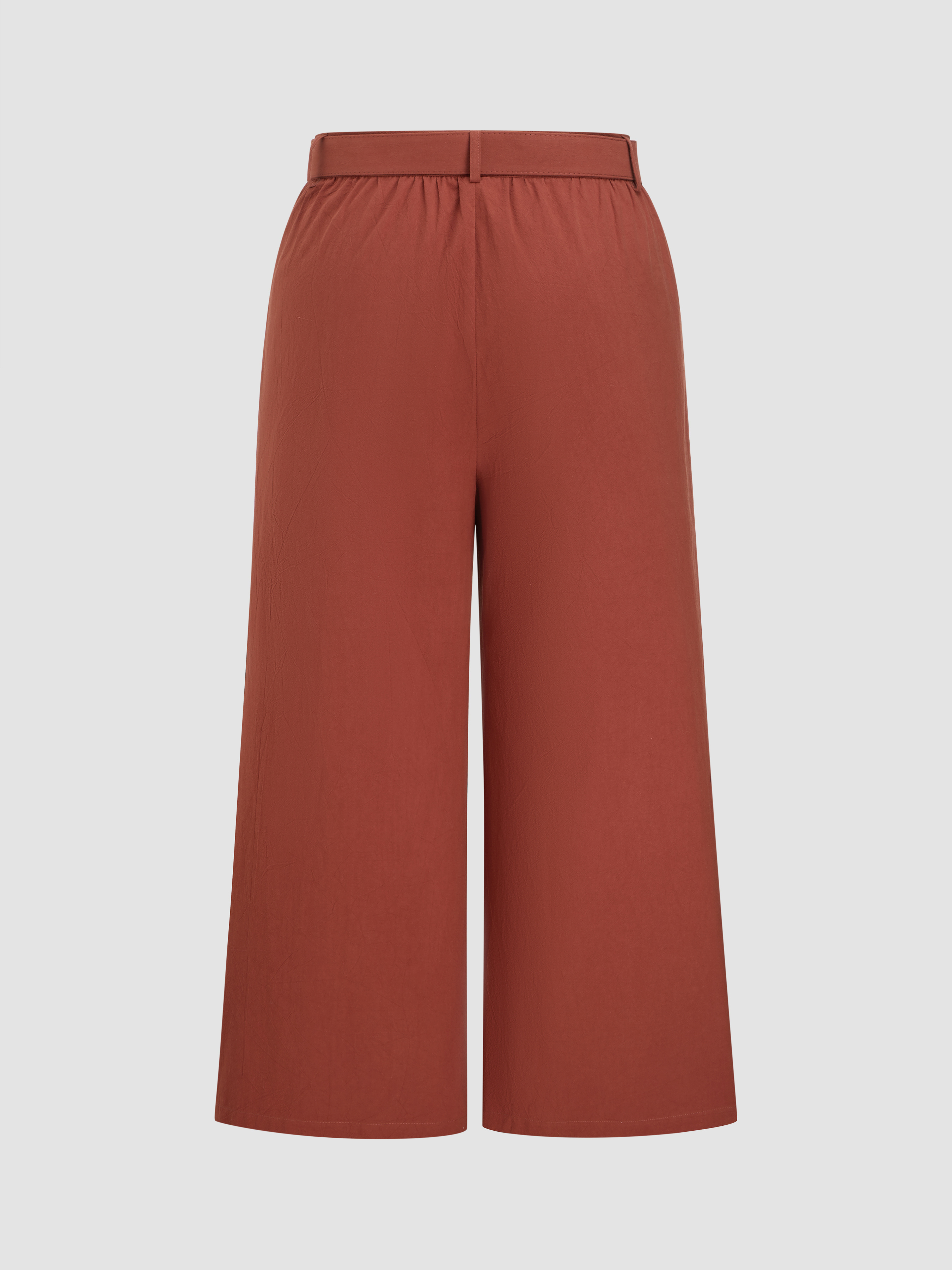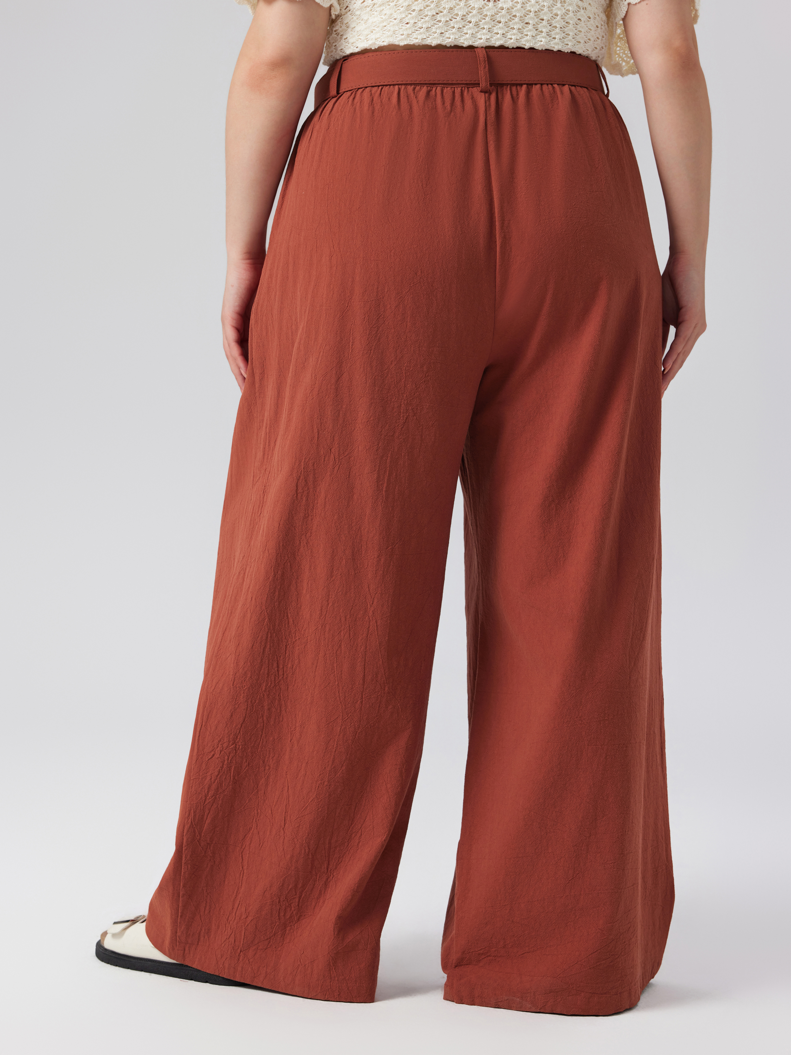 Pantaloni a gamba larga a vita media con tasche solide e pieghettati Curve & Plus