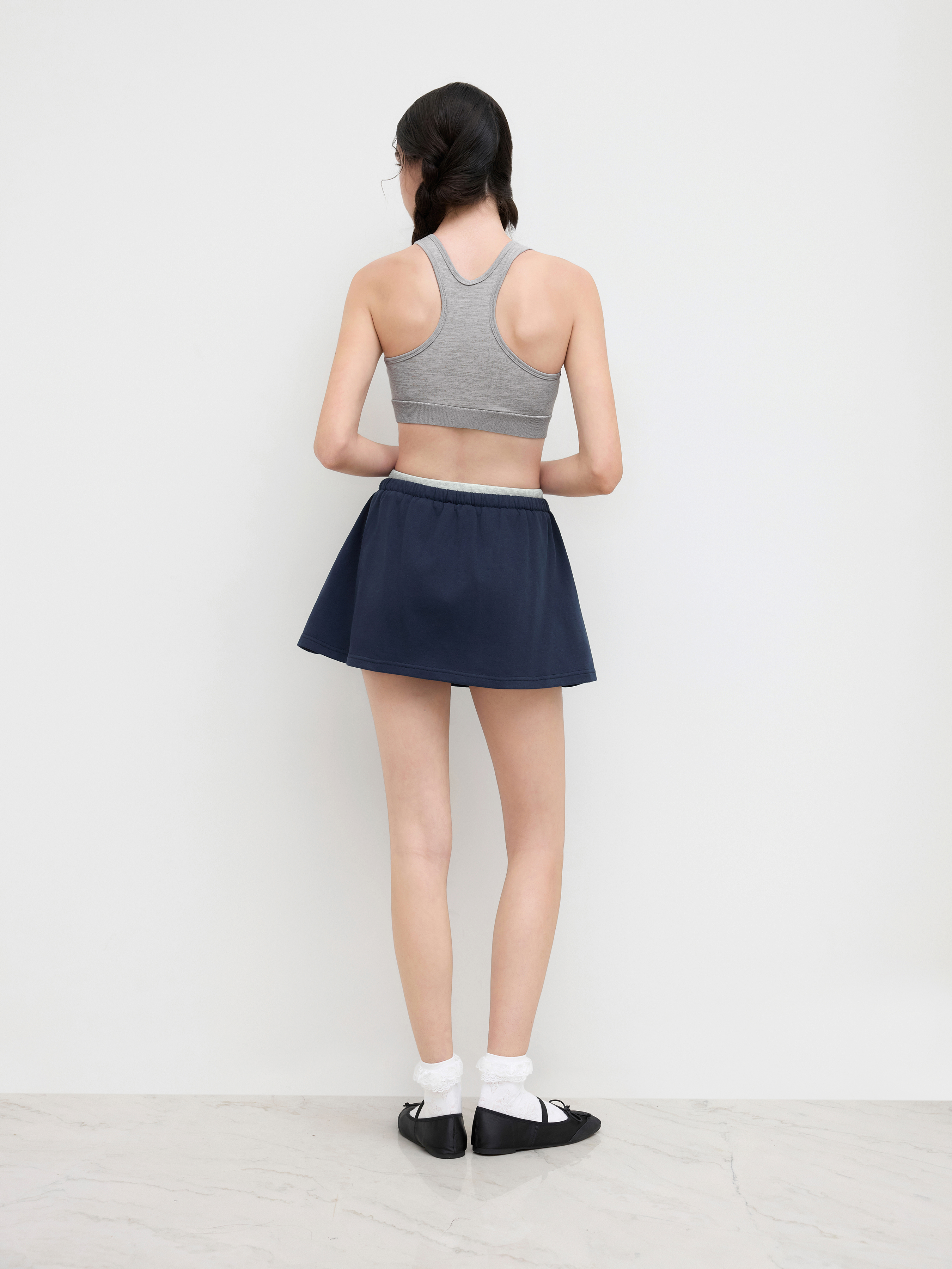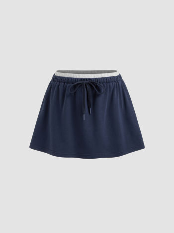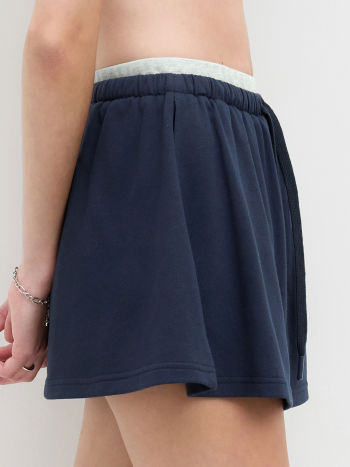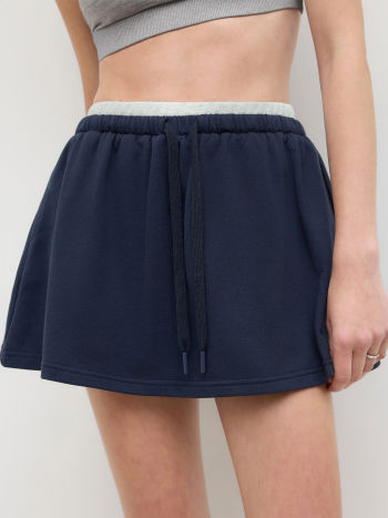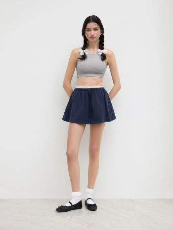 Mini gonna-pantalone a vita media in misto cotone con fiocco annodato sul davanti