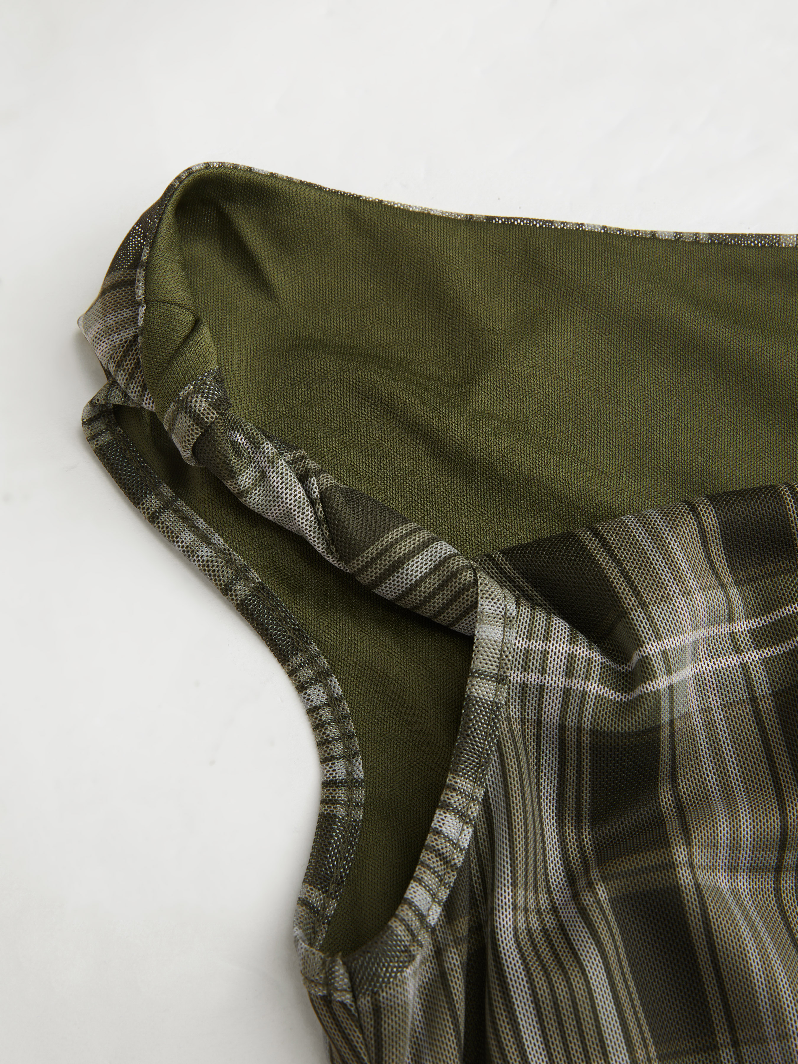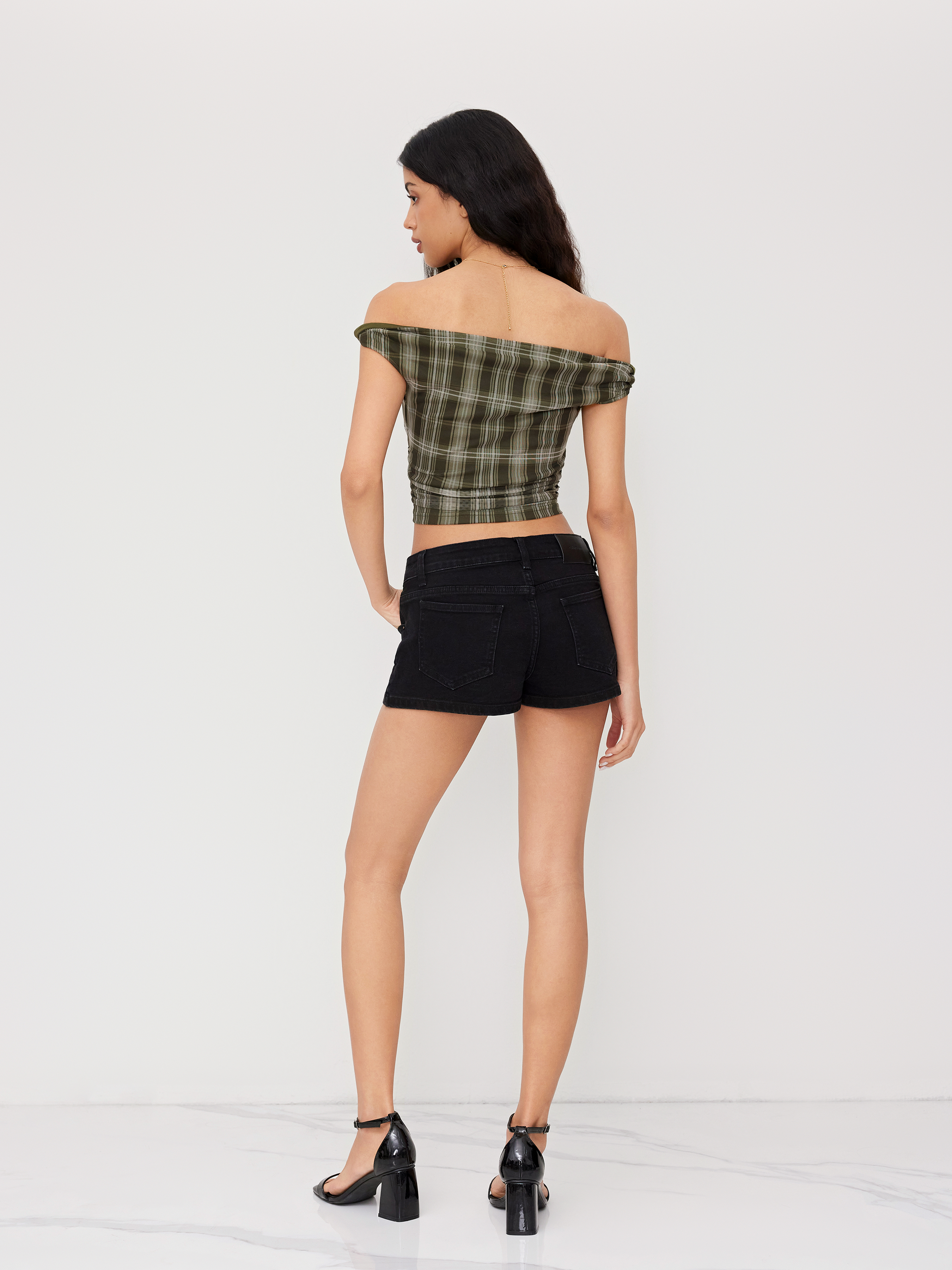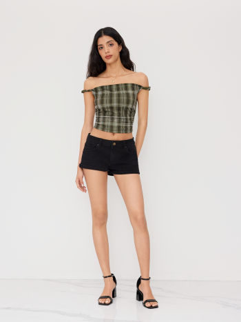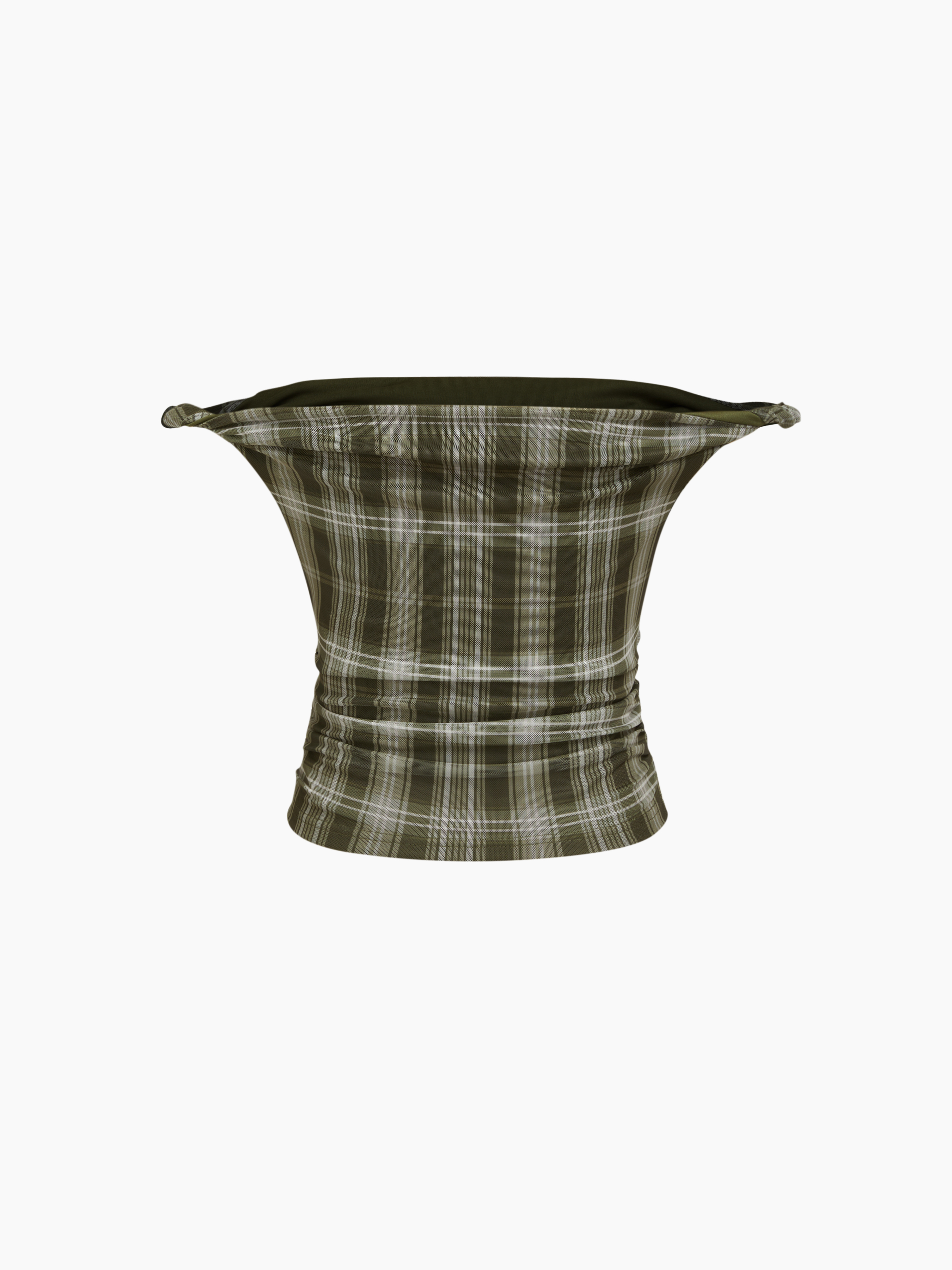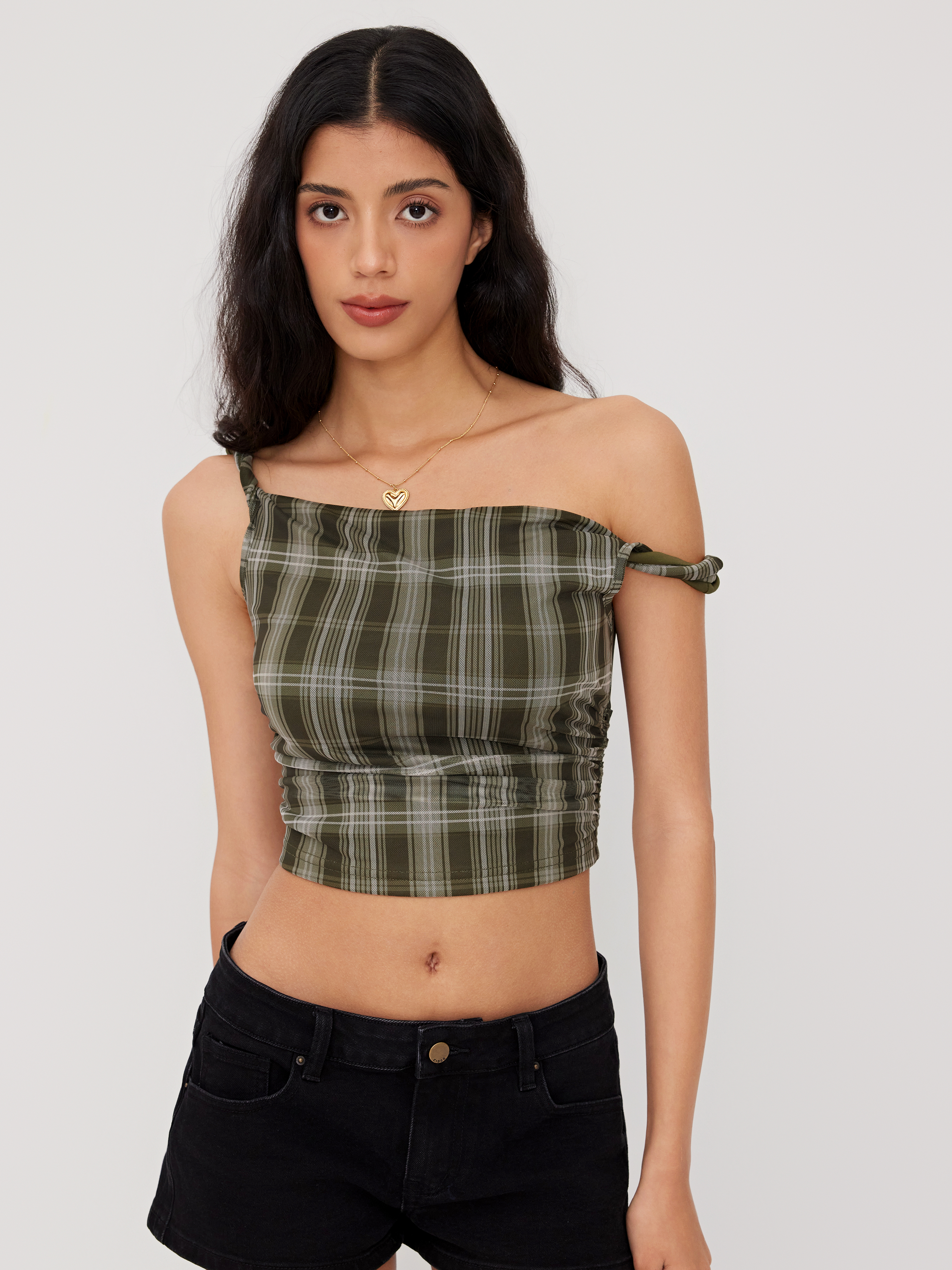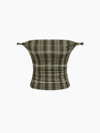 Top rinascimentale a spalle scoperte a quadri con arricciature