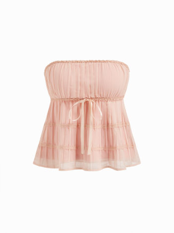 Top a fascia con nodo in pizzo e dettaglio a pieghe in rete