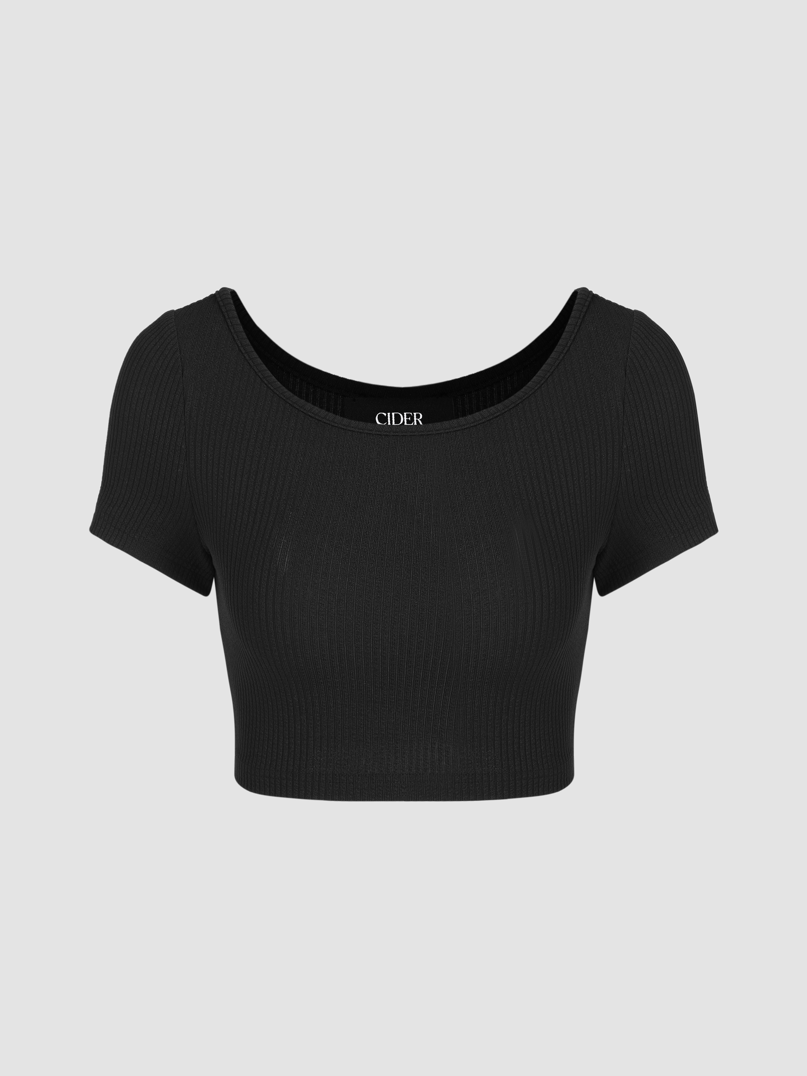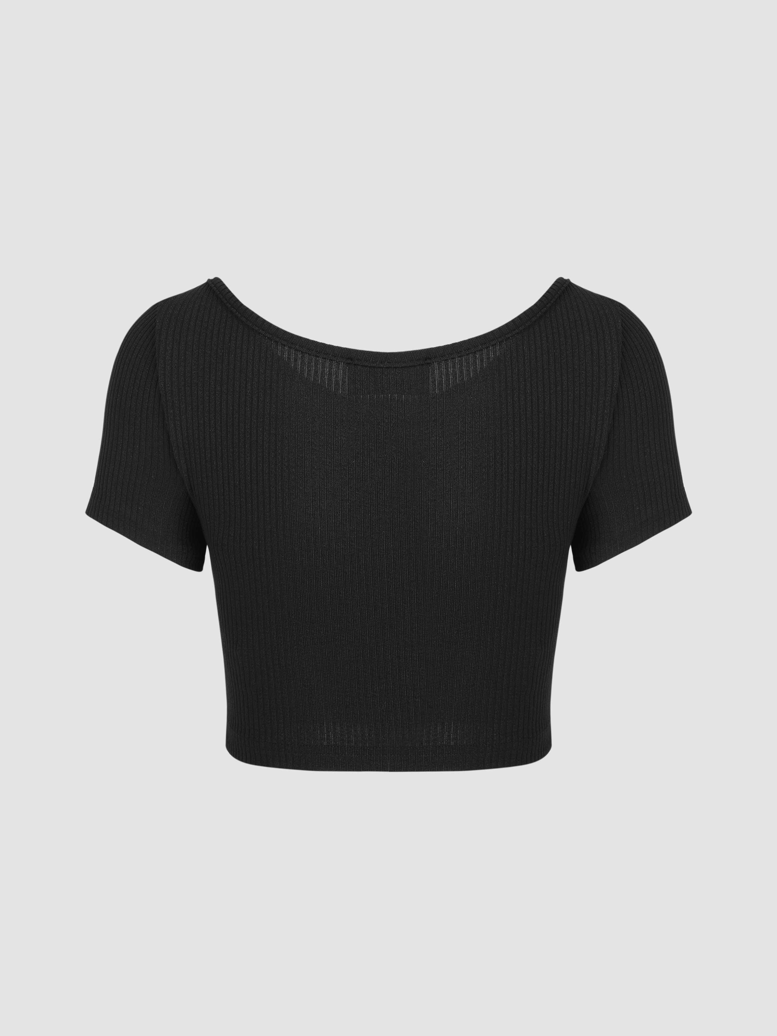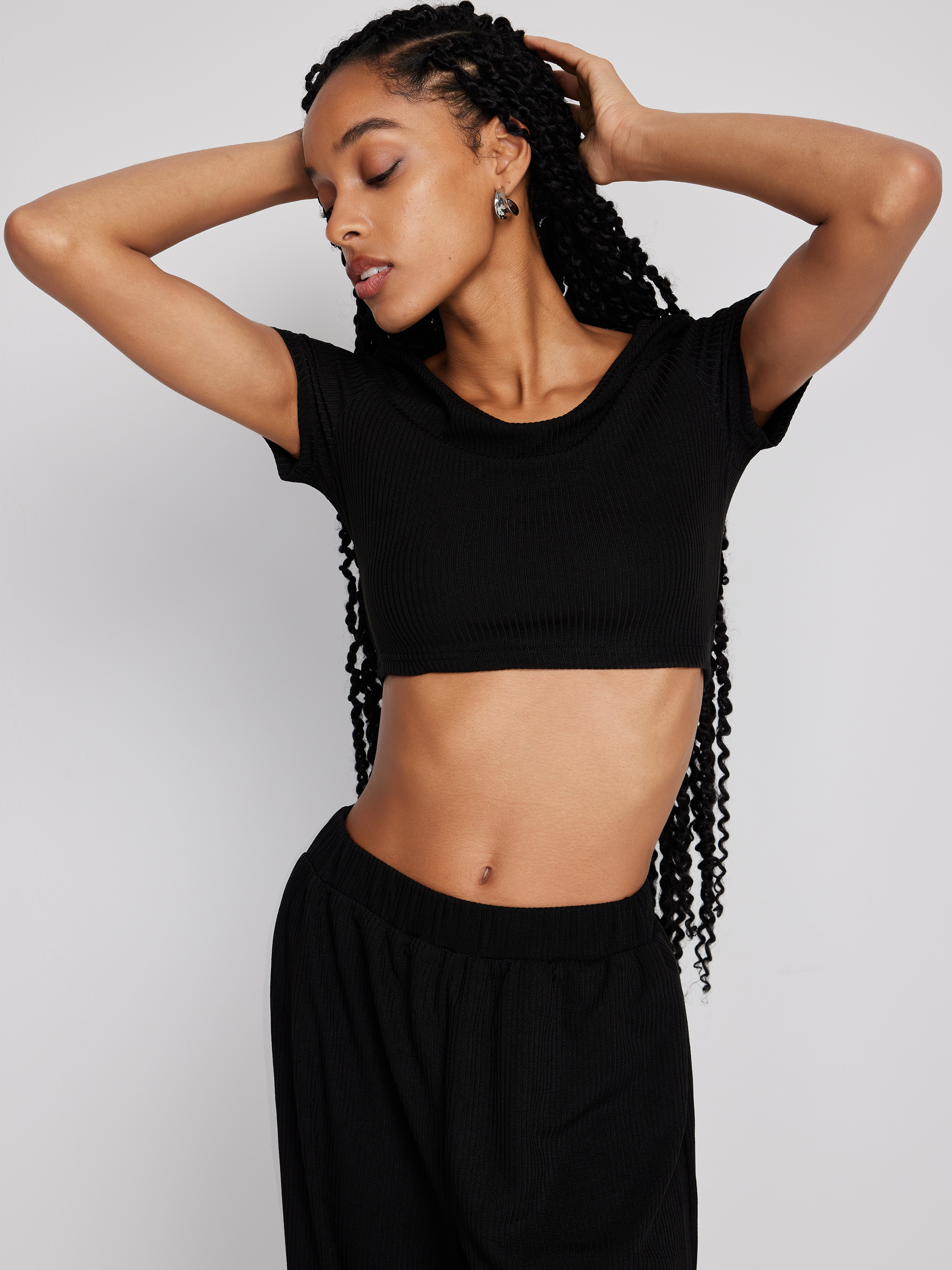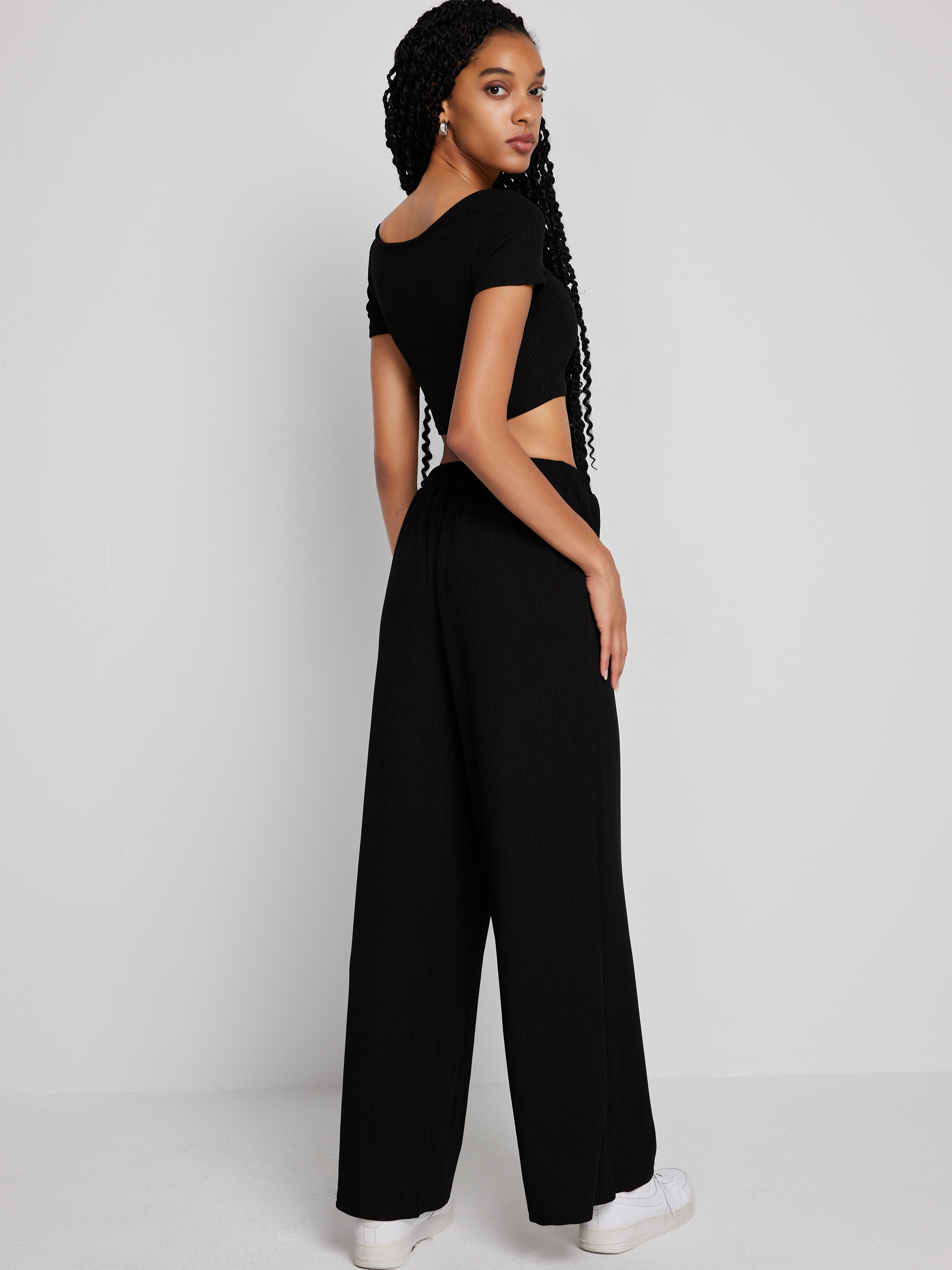 Top corto lavorato a maglia a maniche corte e pantaloni a gamba larga