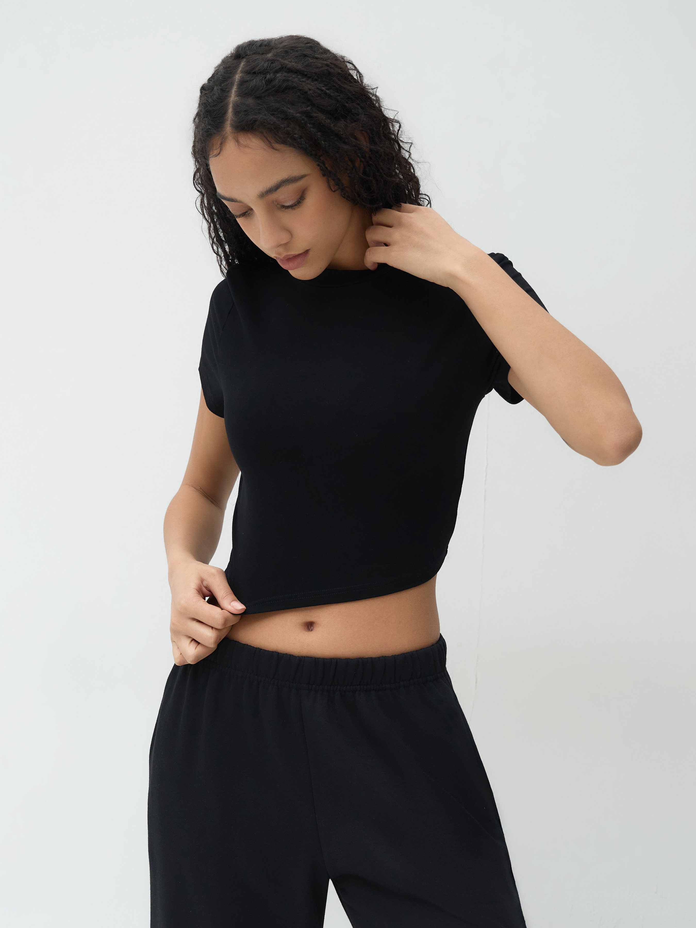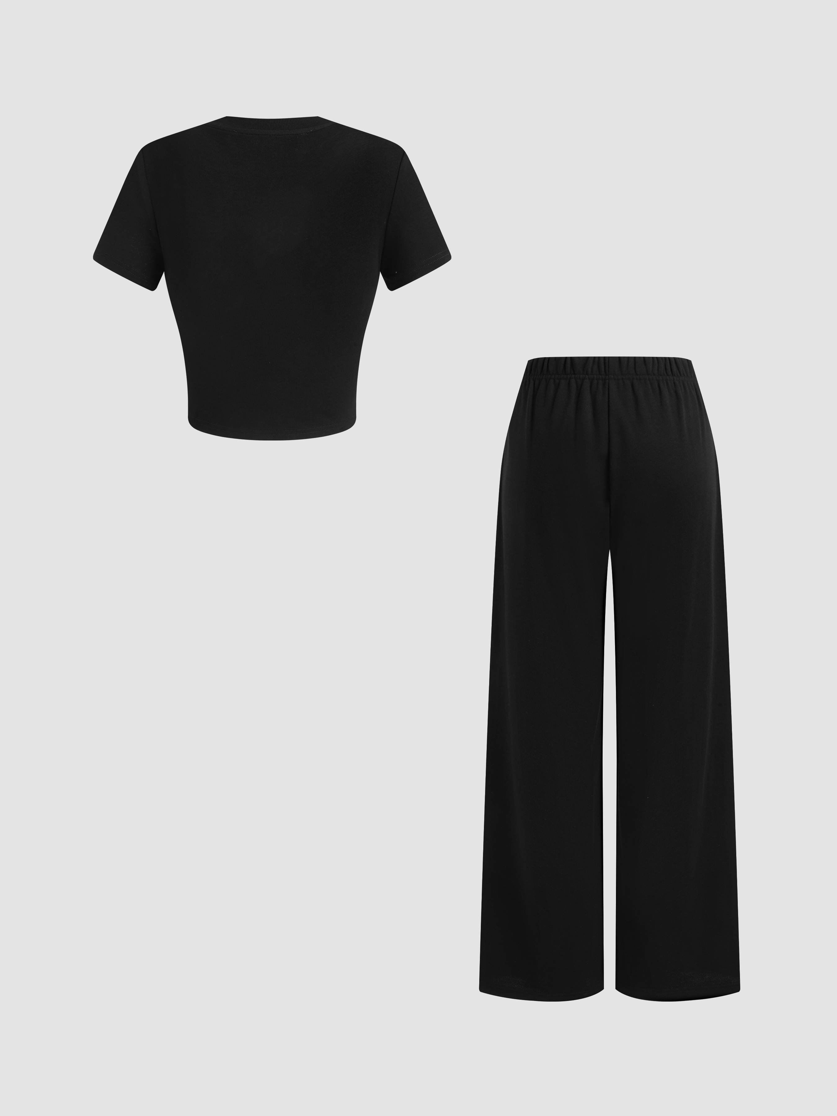 Set composto da t-shirt e pantaloni a vita bassa elasticizzati a gamba tesa