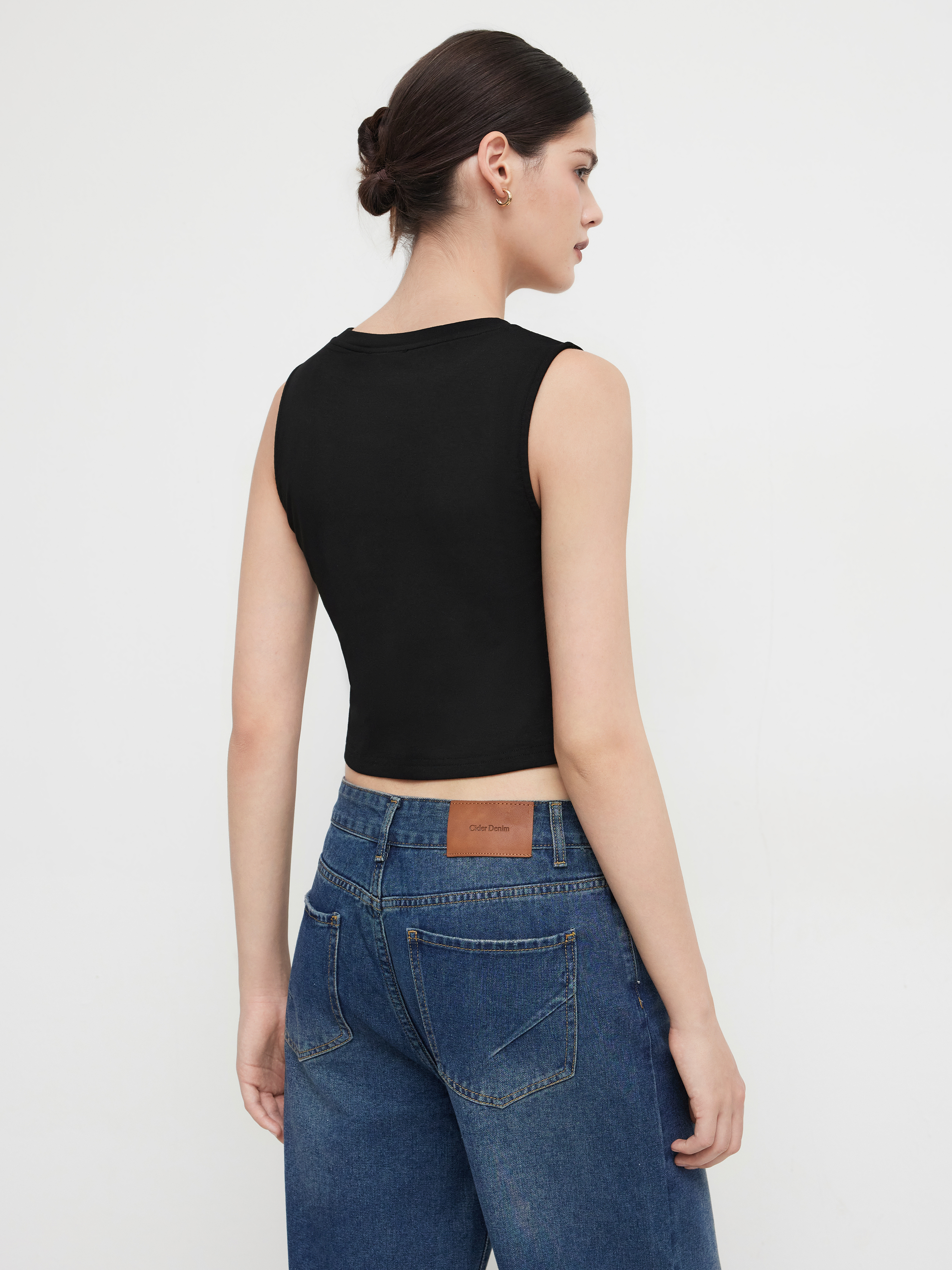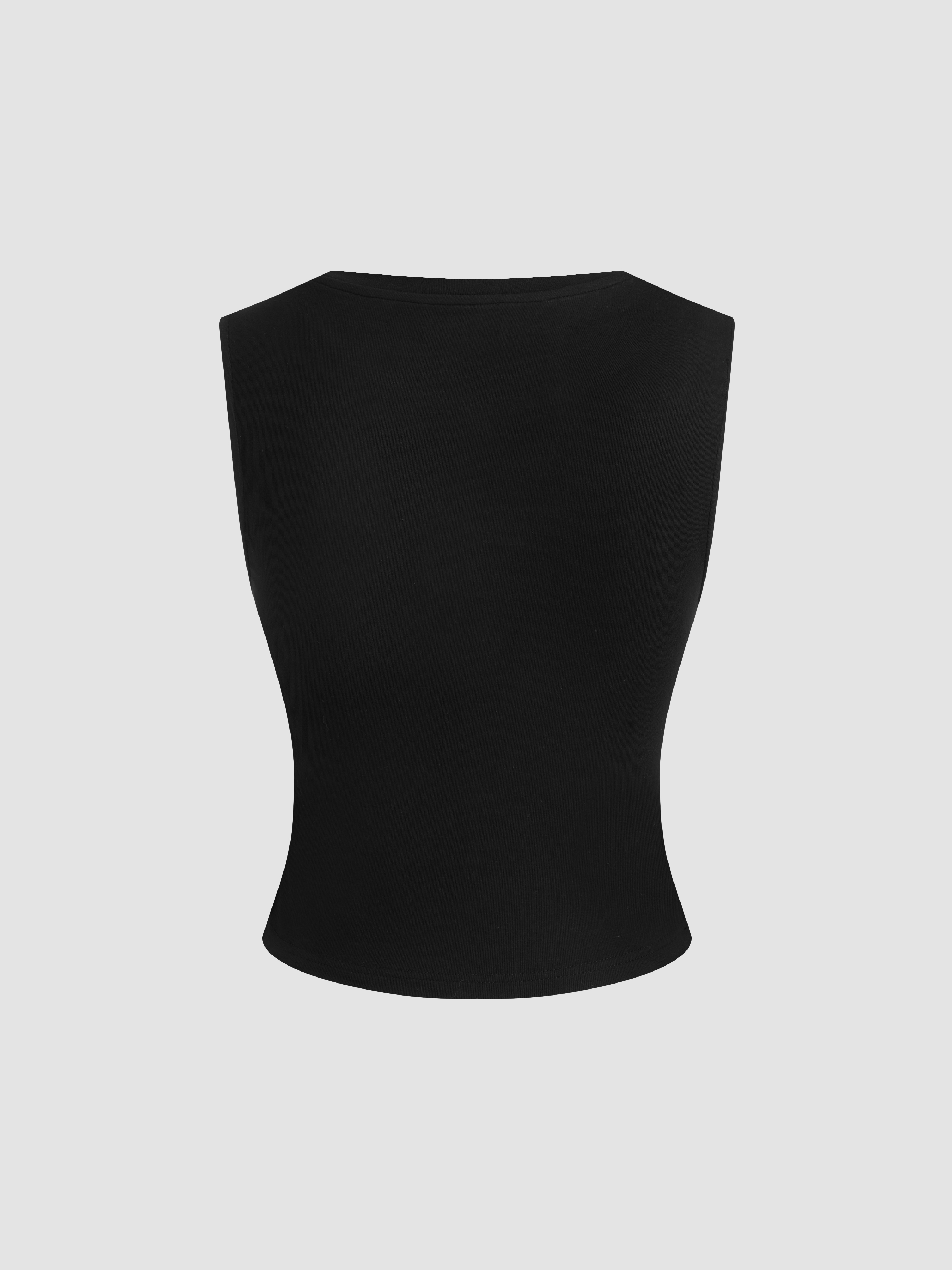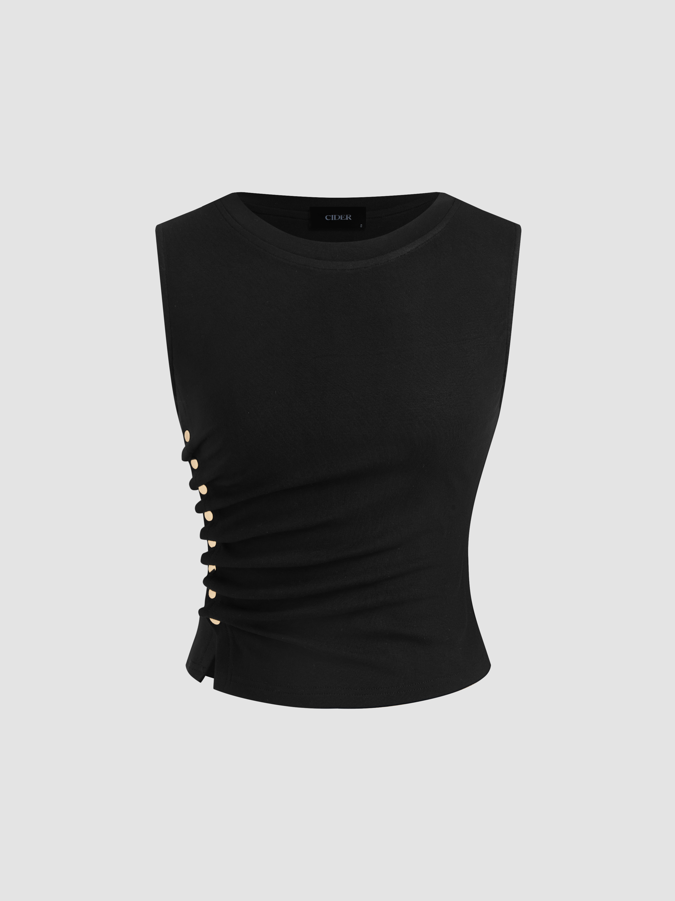 Canotta con scollo rotondo, solida e increspata