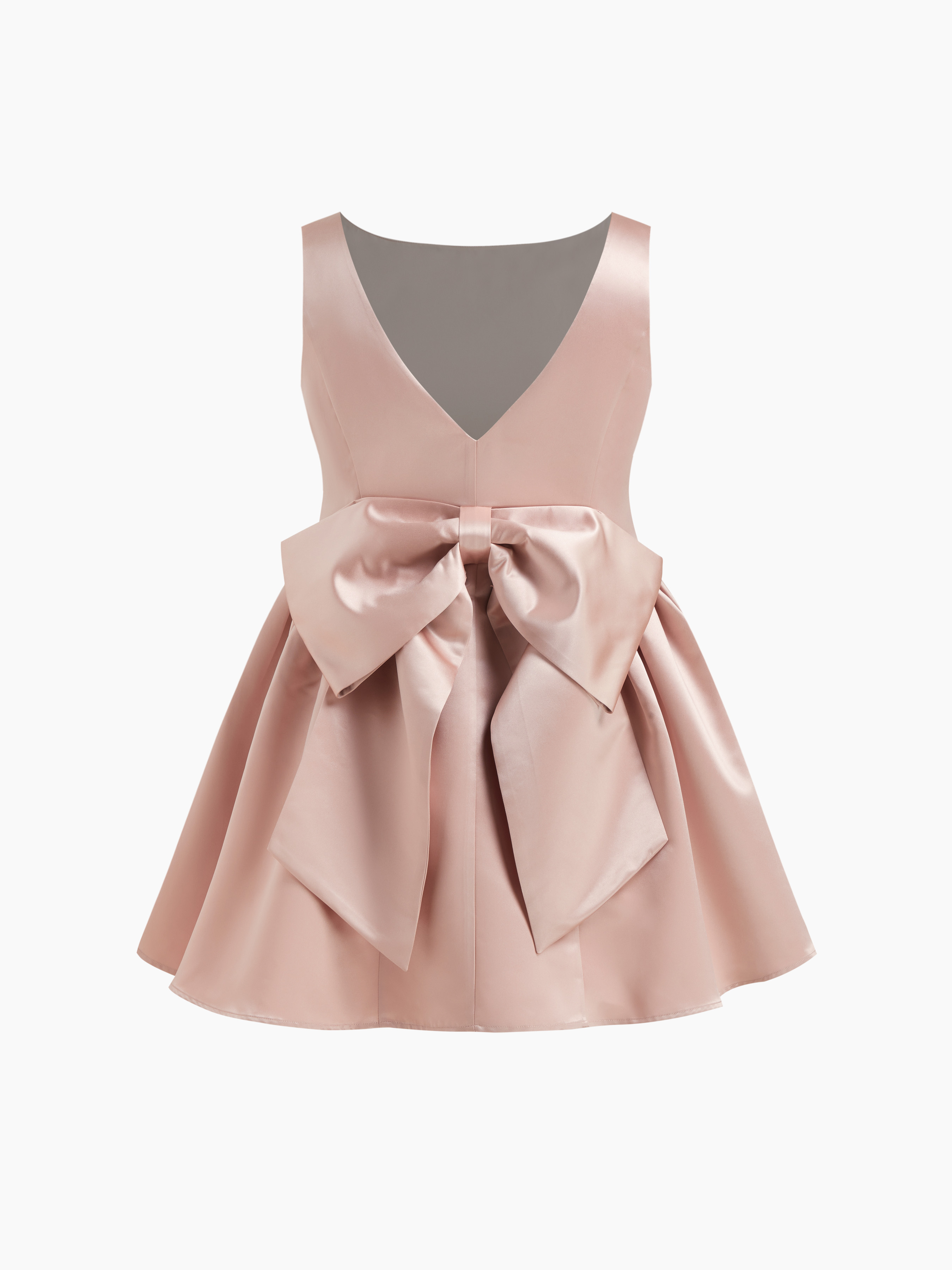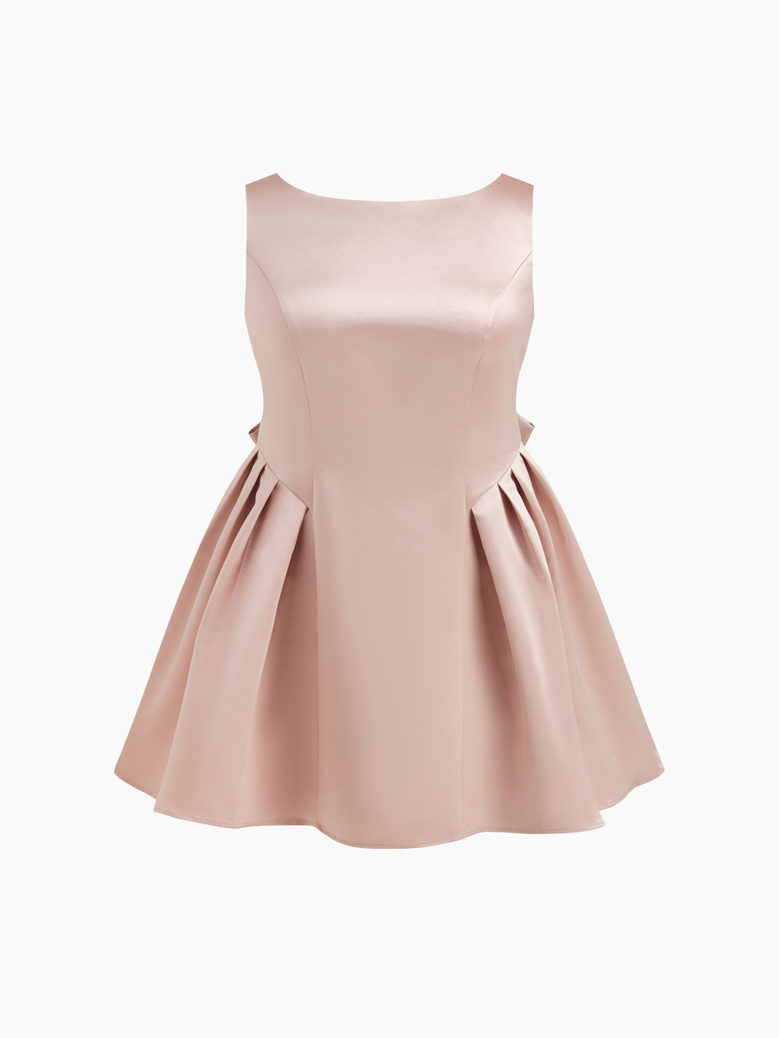 Mini abito in raso con scollo a barchetta e fiocco Curve & Plus