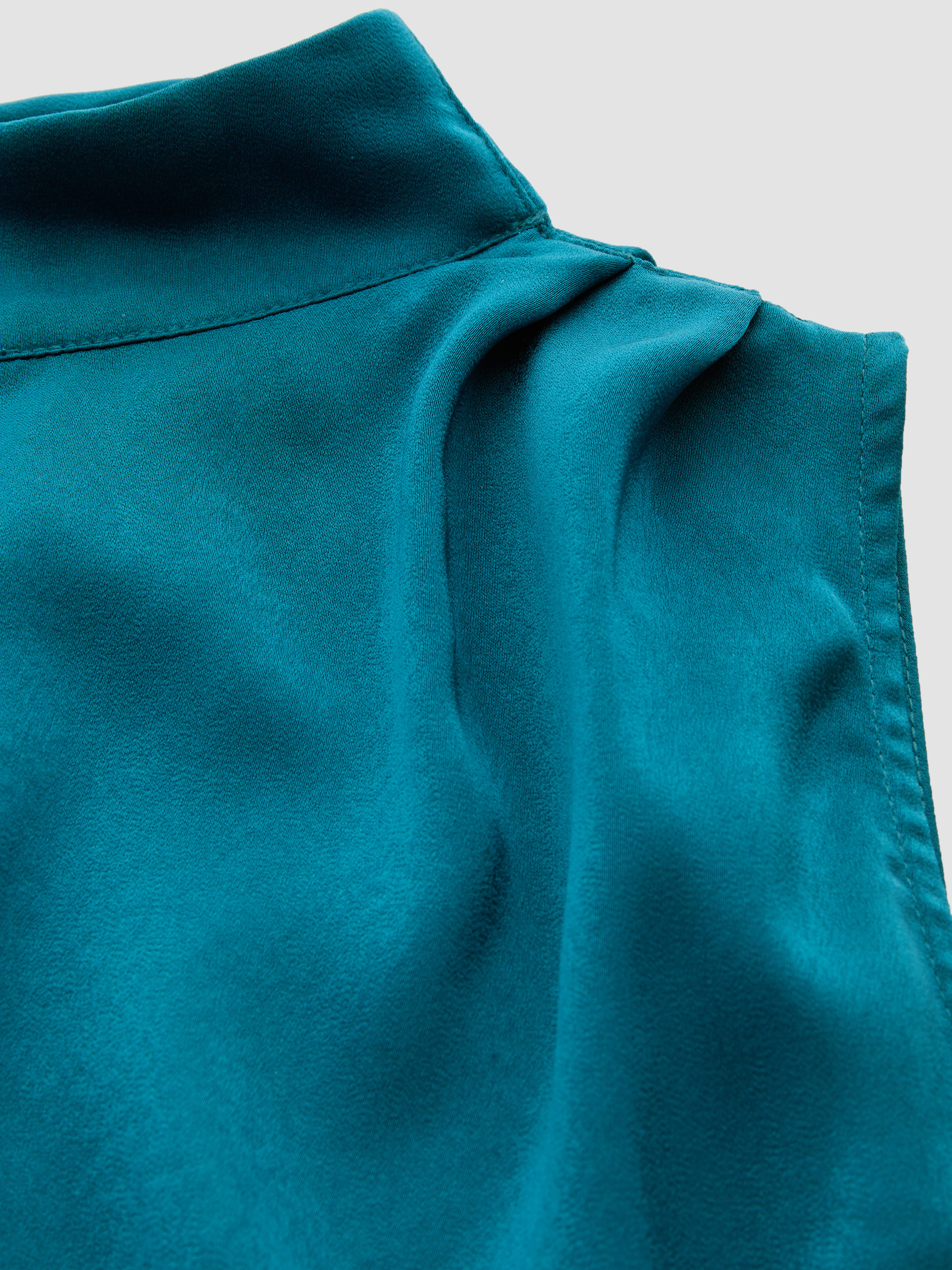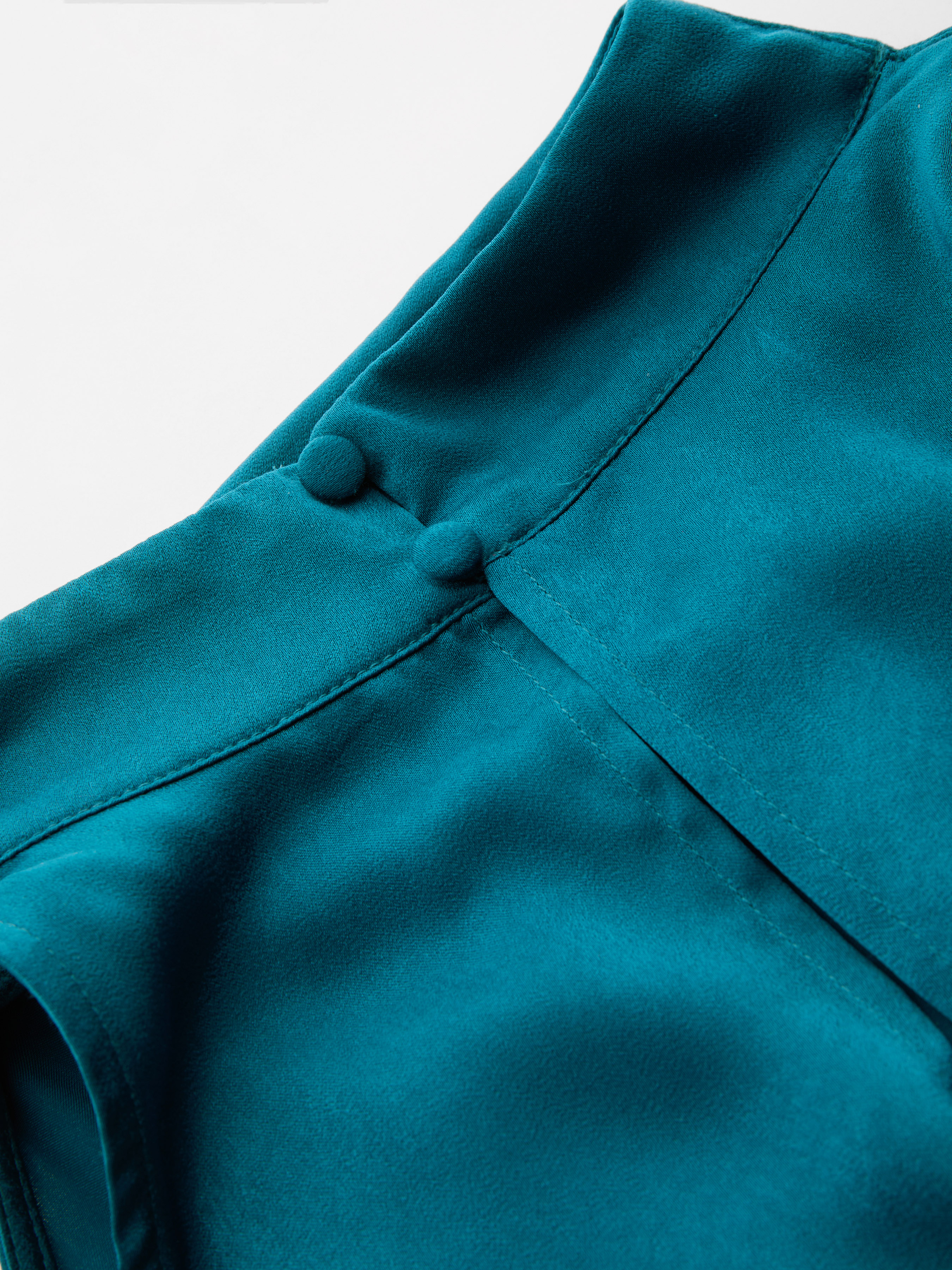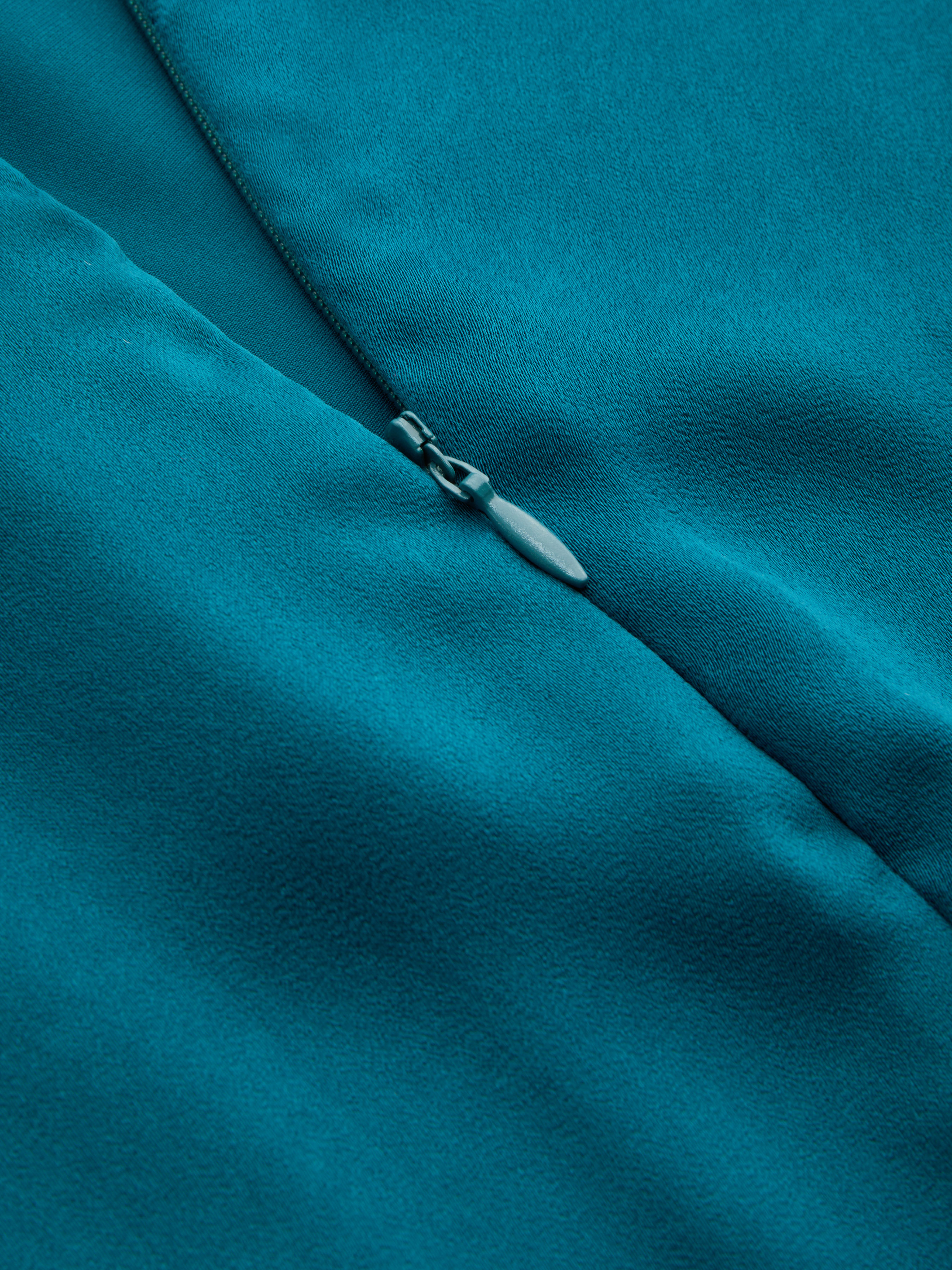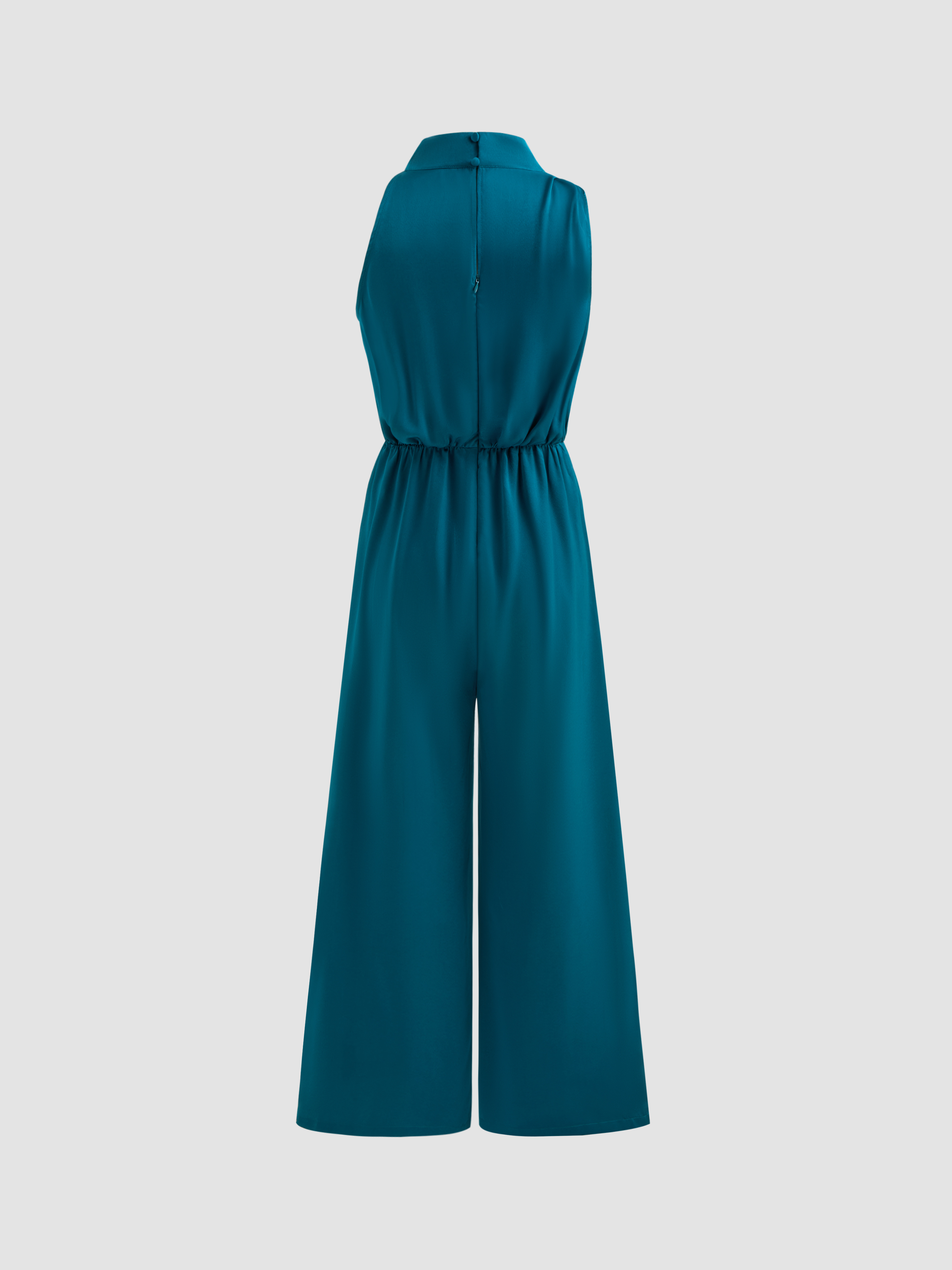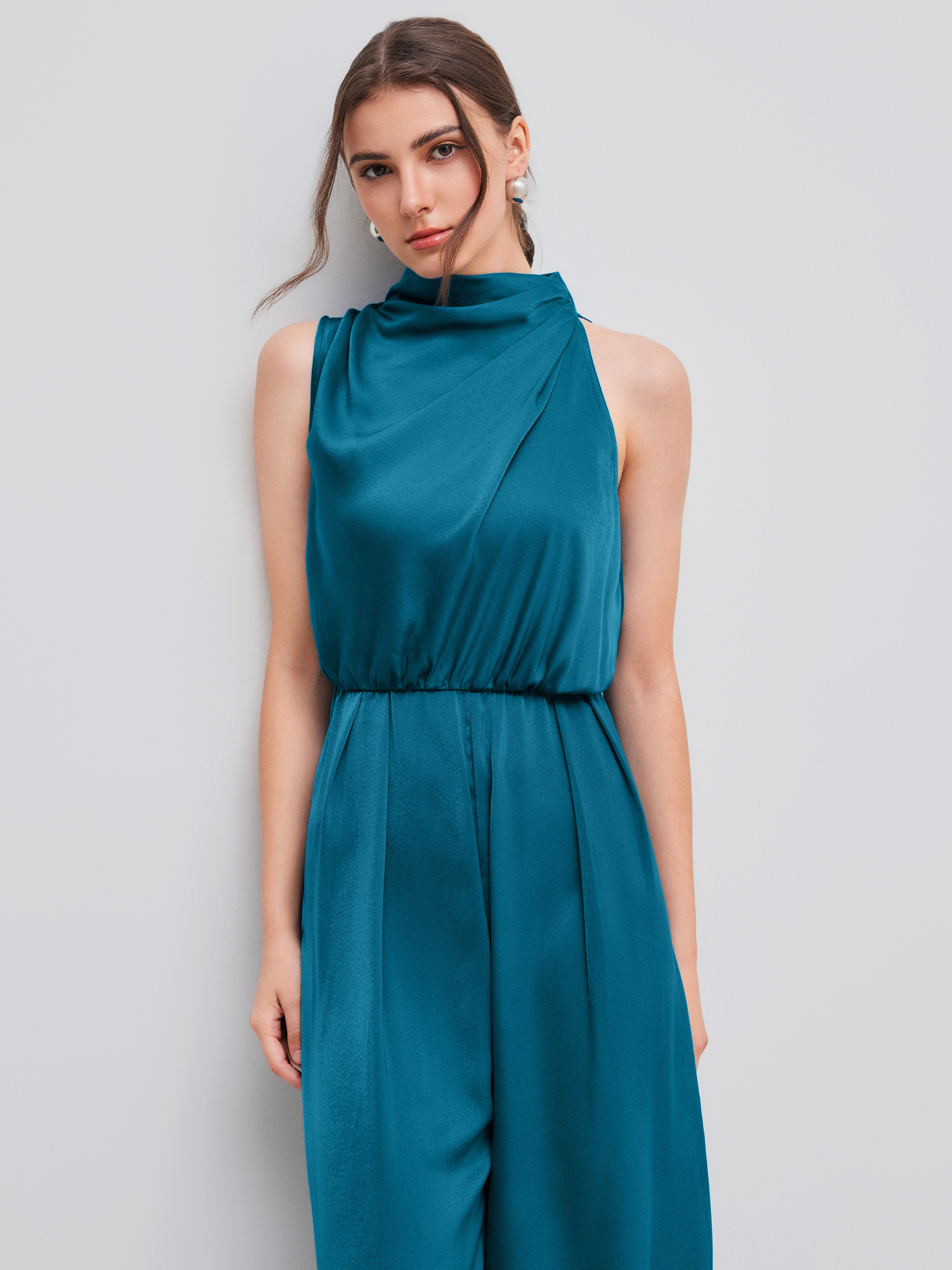 Tuta in raso a collo alto con cerniera solida e gamba larga plissettata
