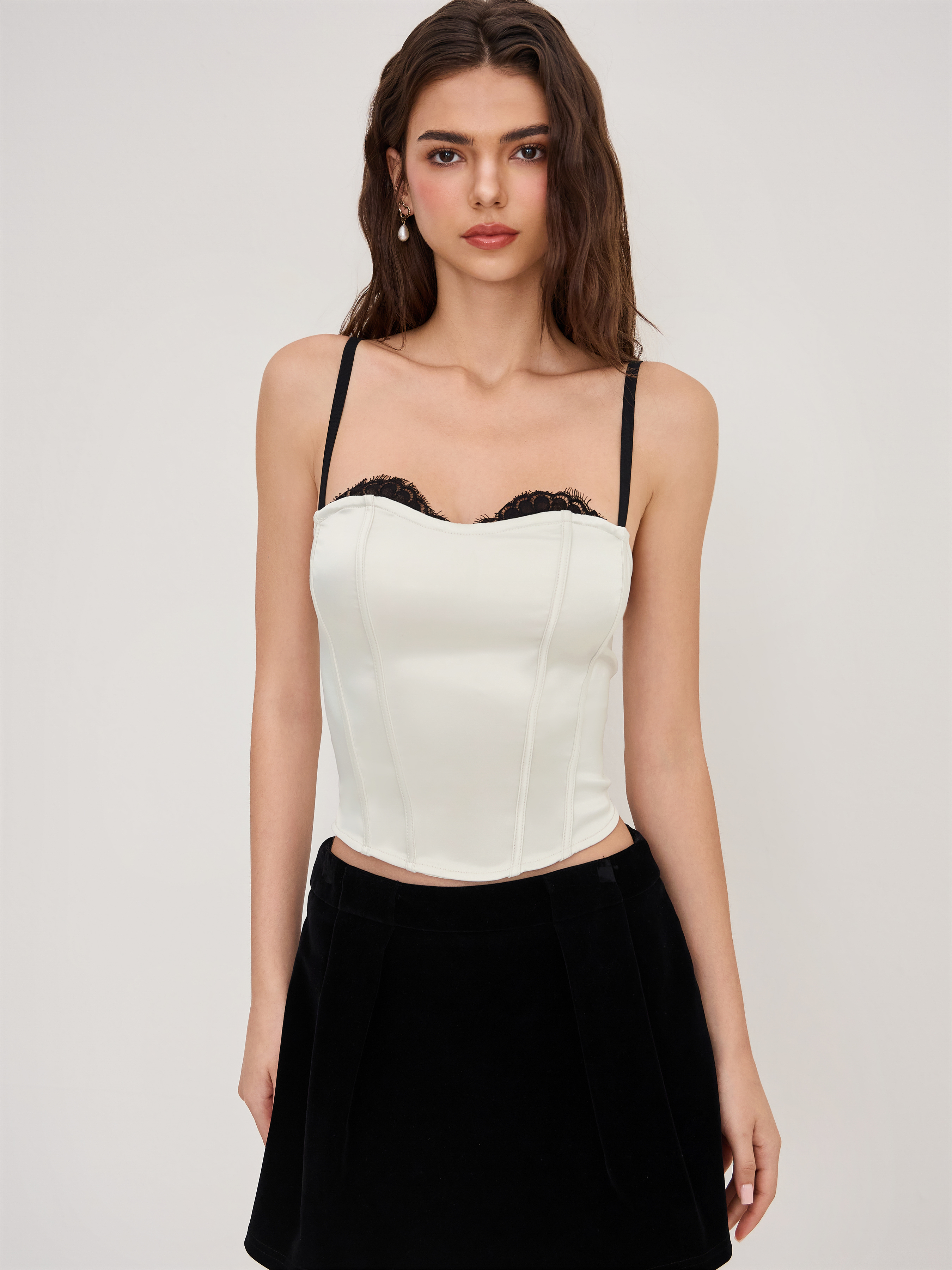 Top cami cropped con pizzo in raso