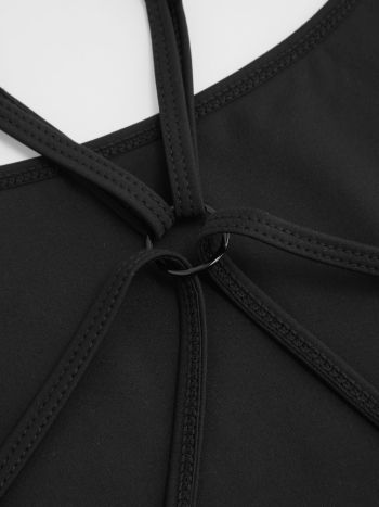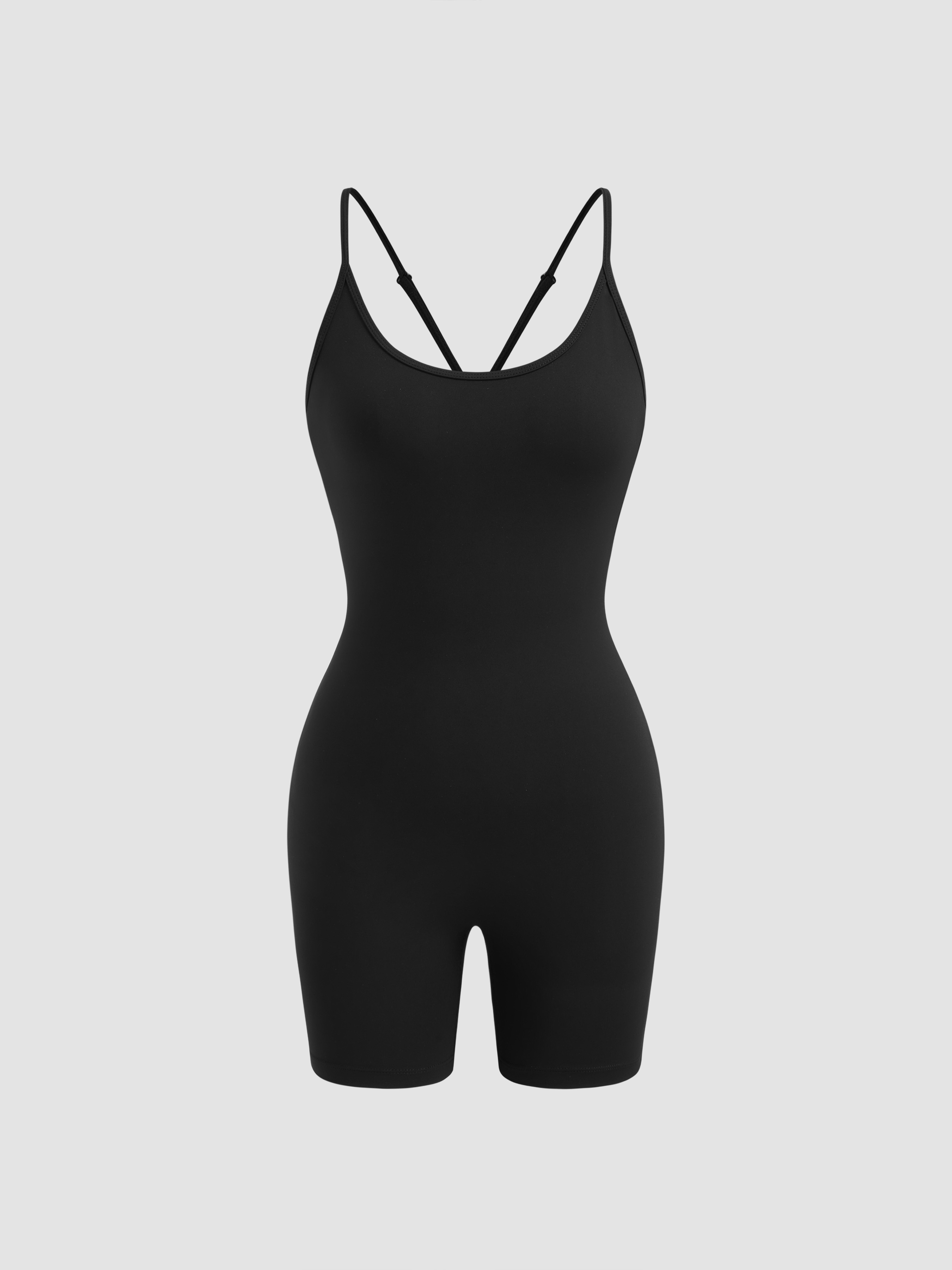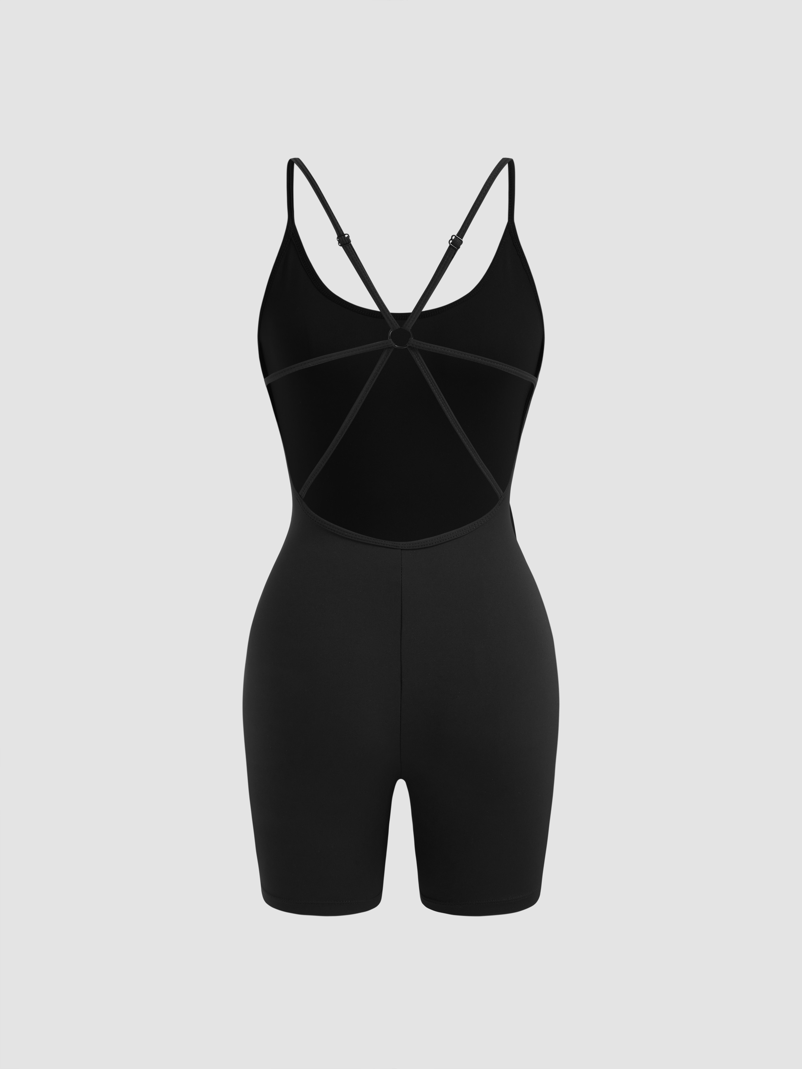 Salopette corta a tinta unita con scollo rotondo incrociata
