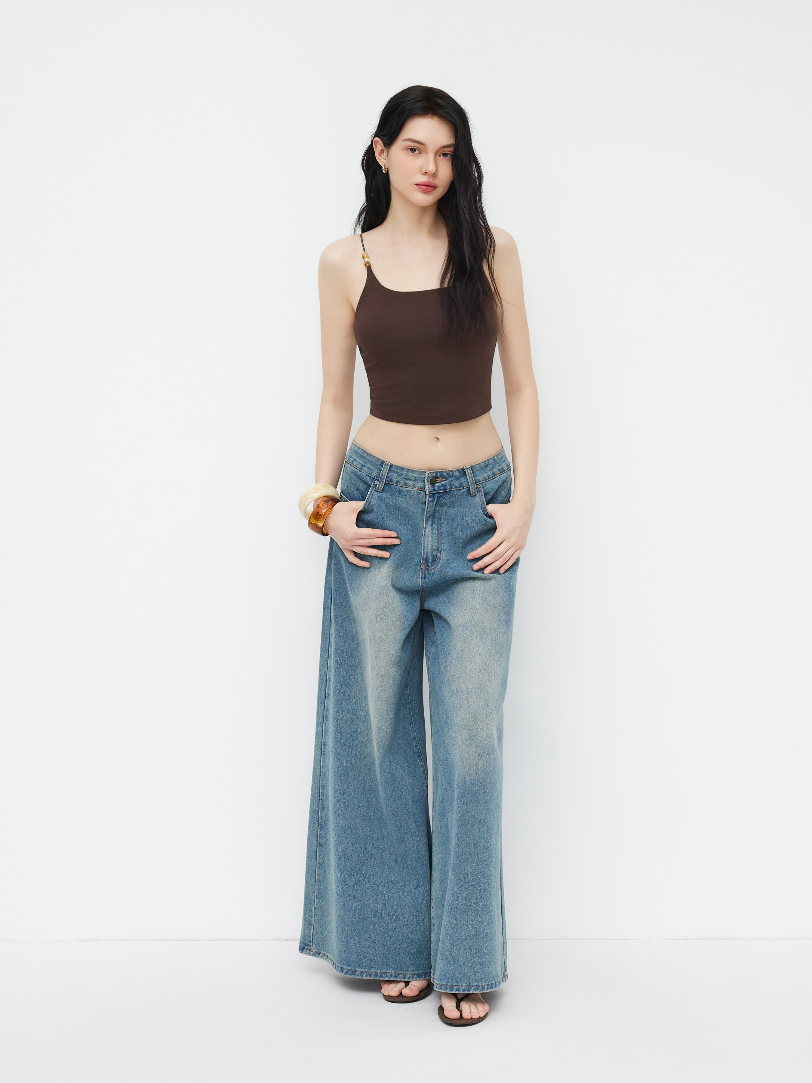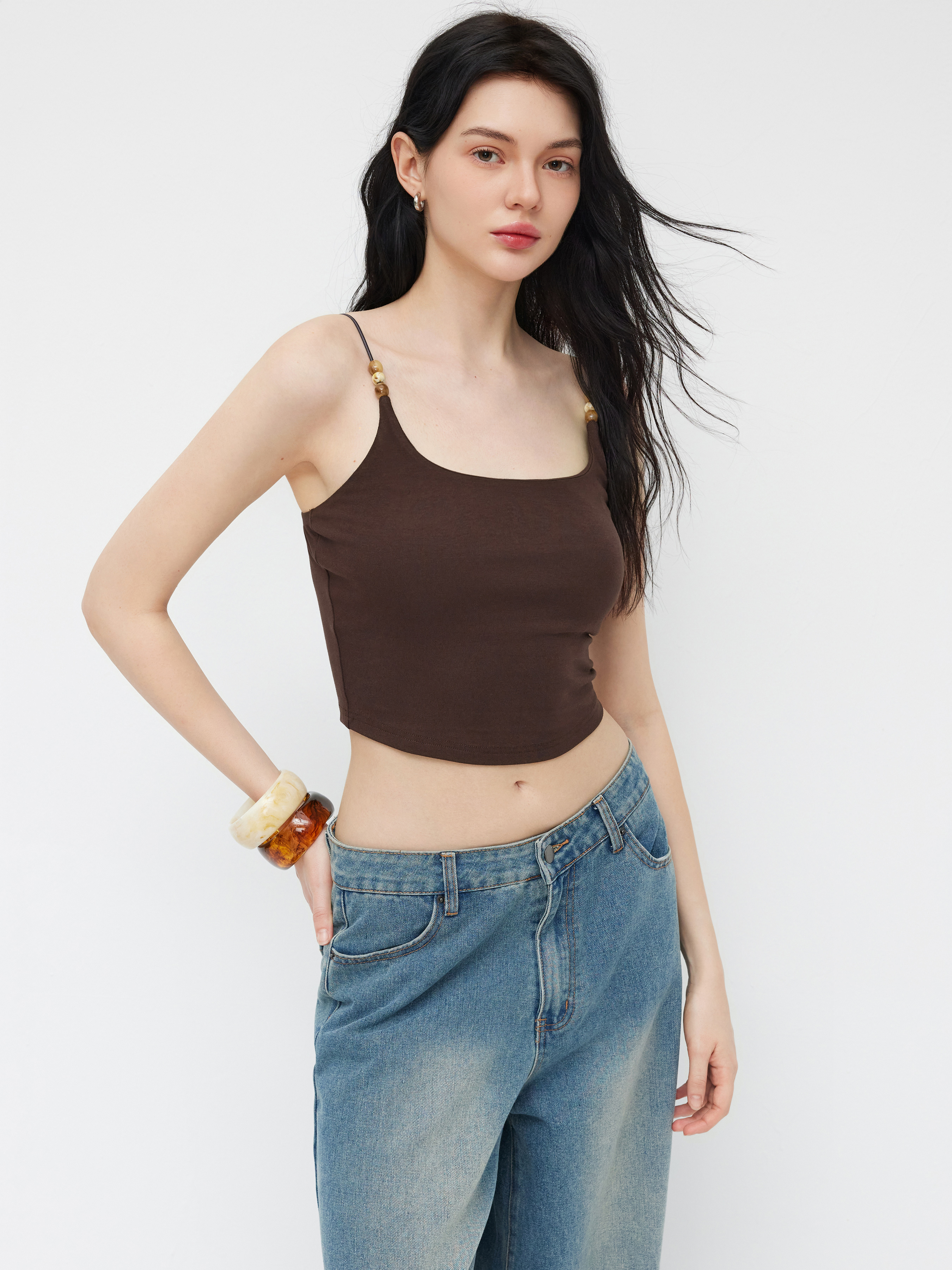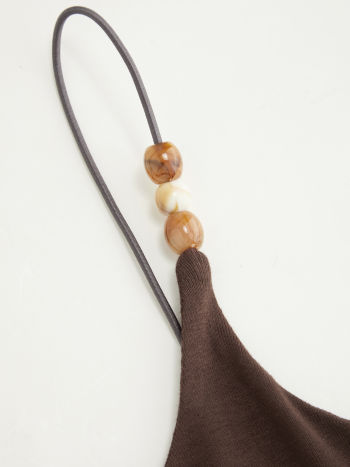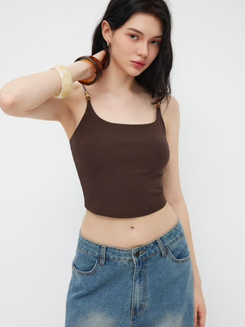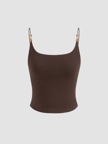Top Cami con Scollo Rotondo e Perline