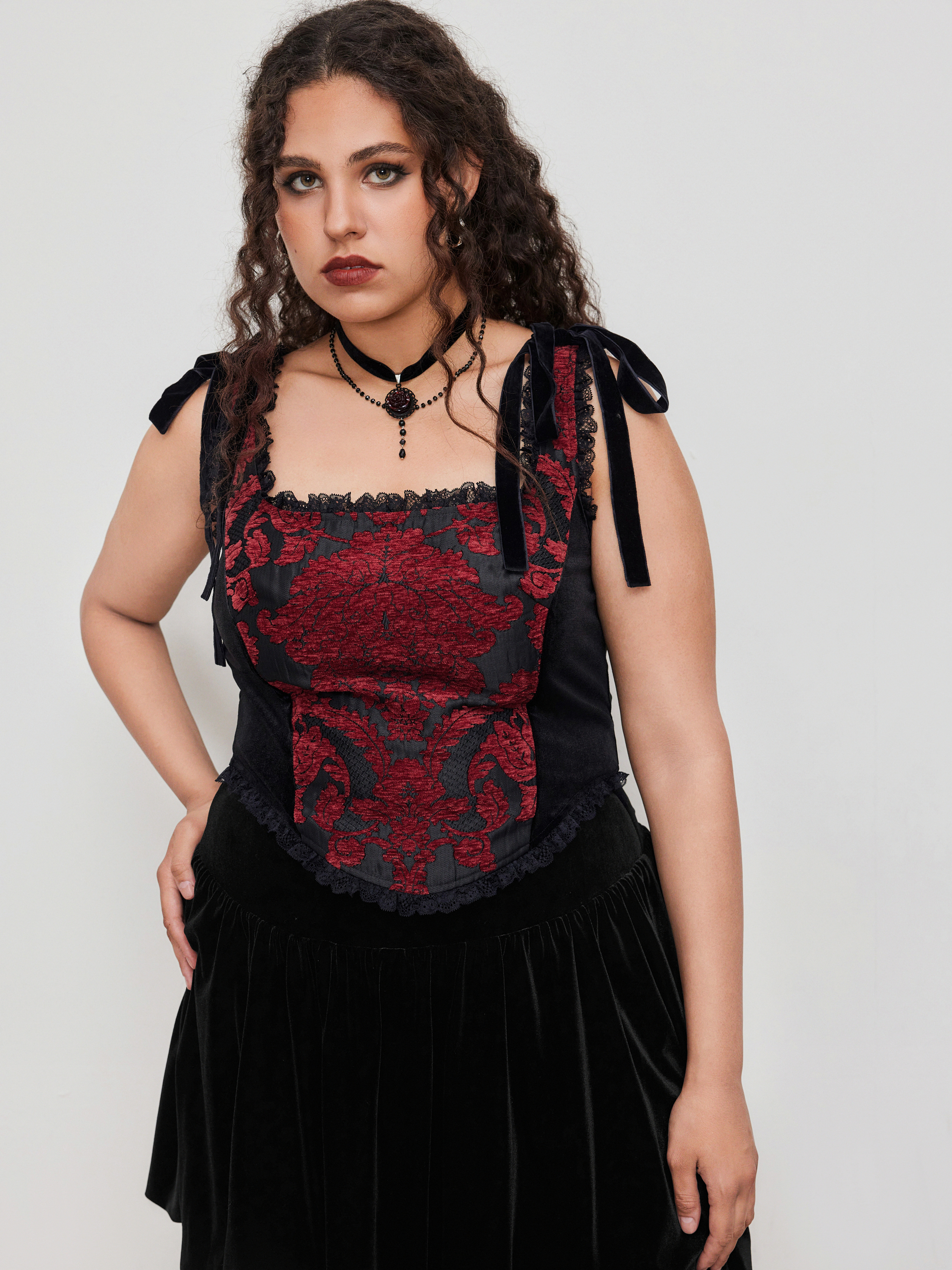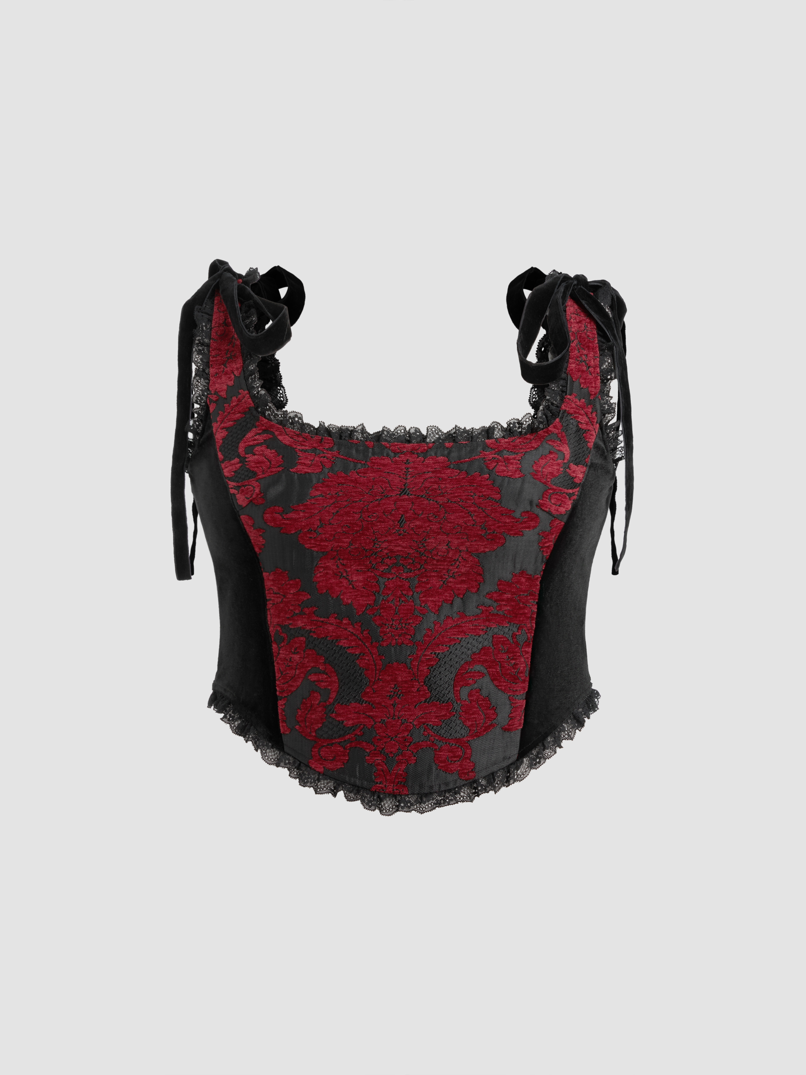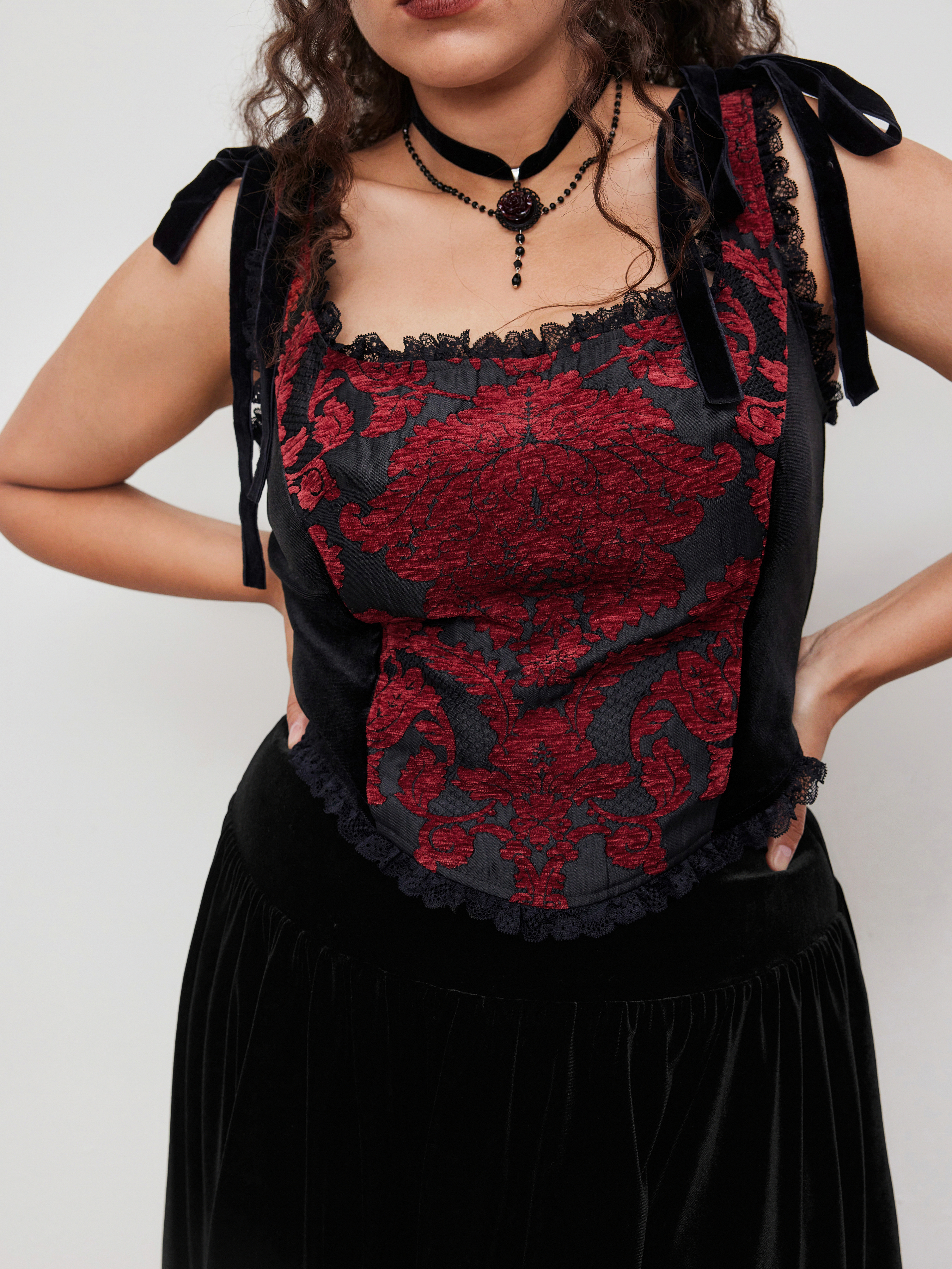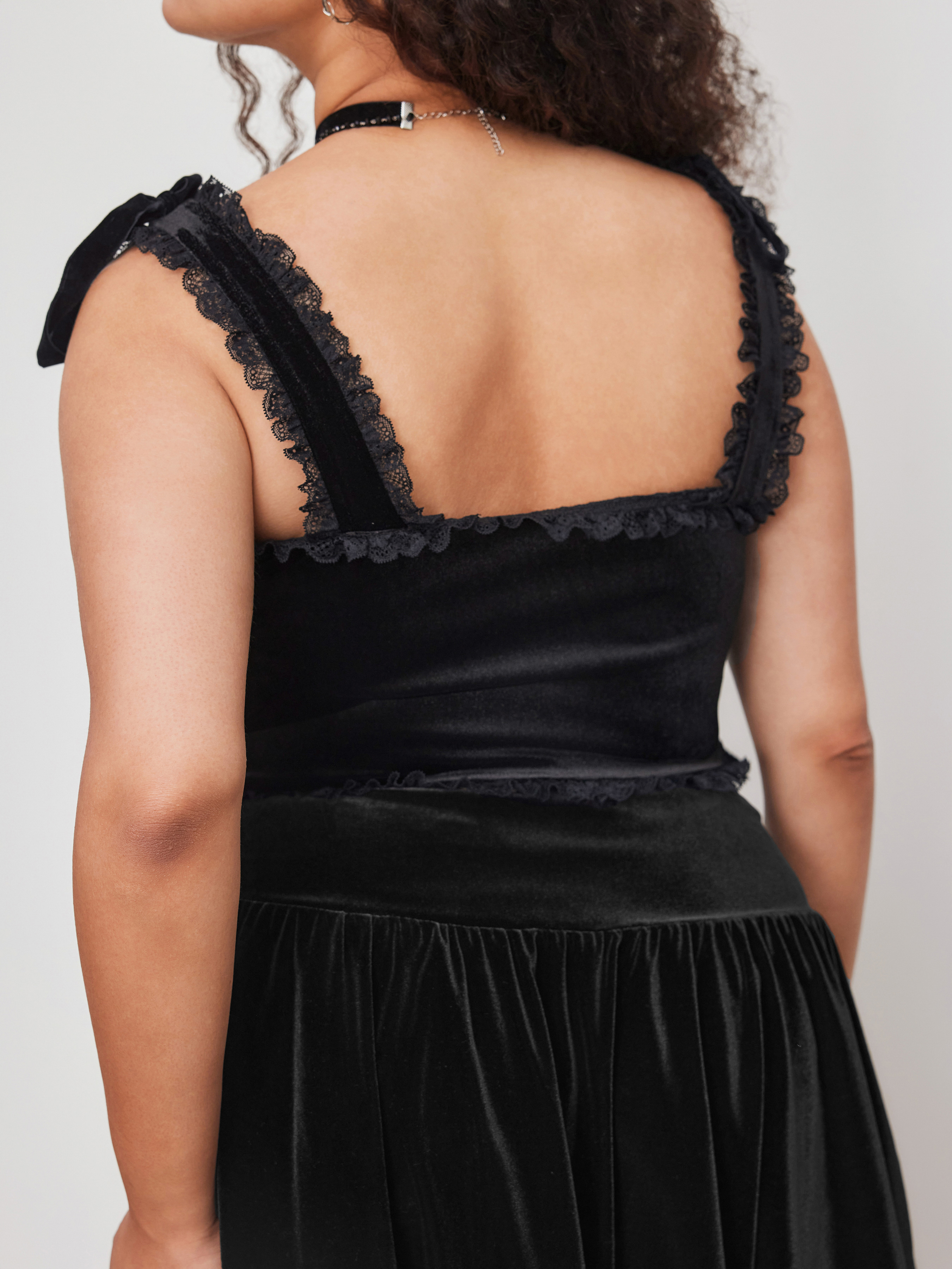 Top Cami con scollo scoop e pizzo floreale annodato Curve & Plus