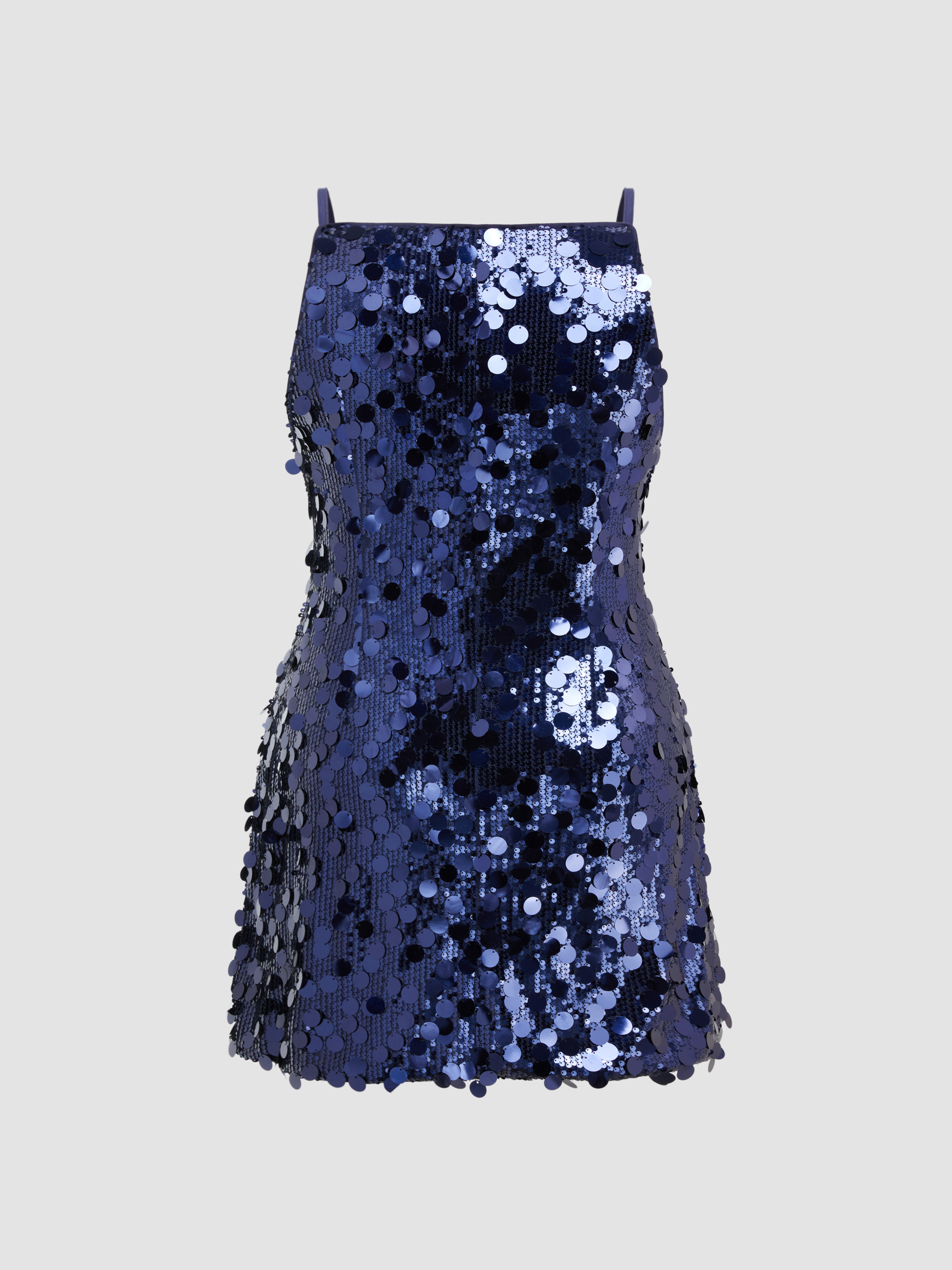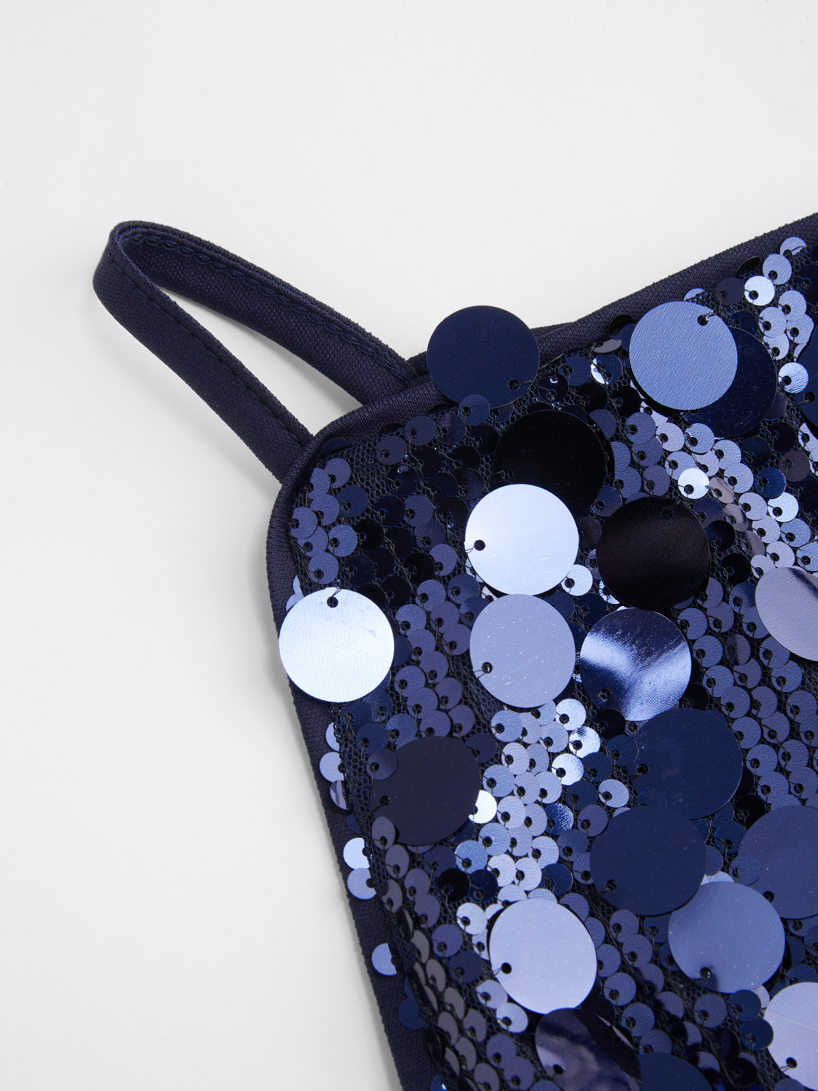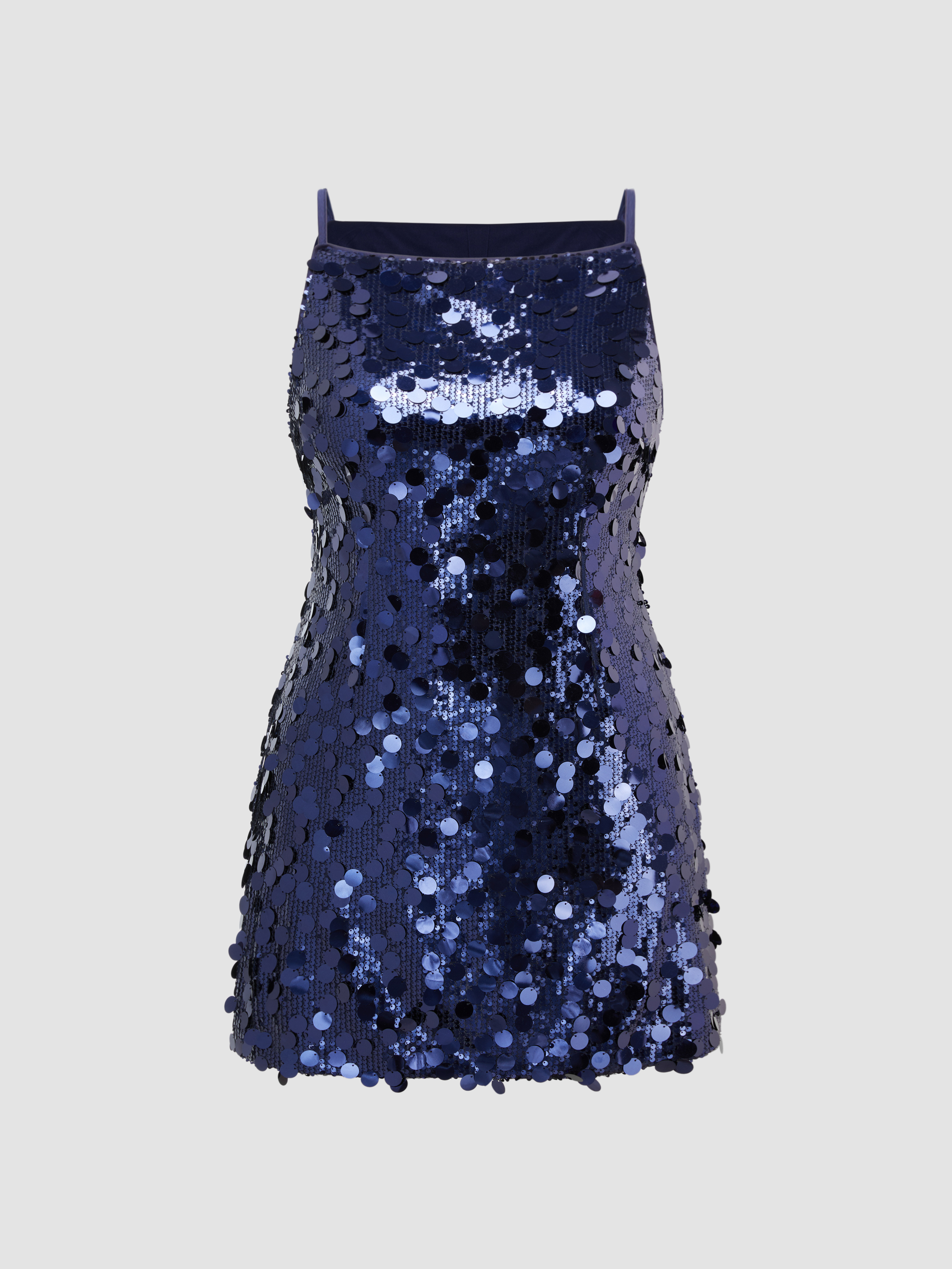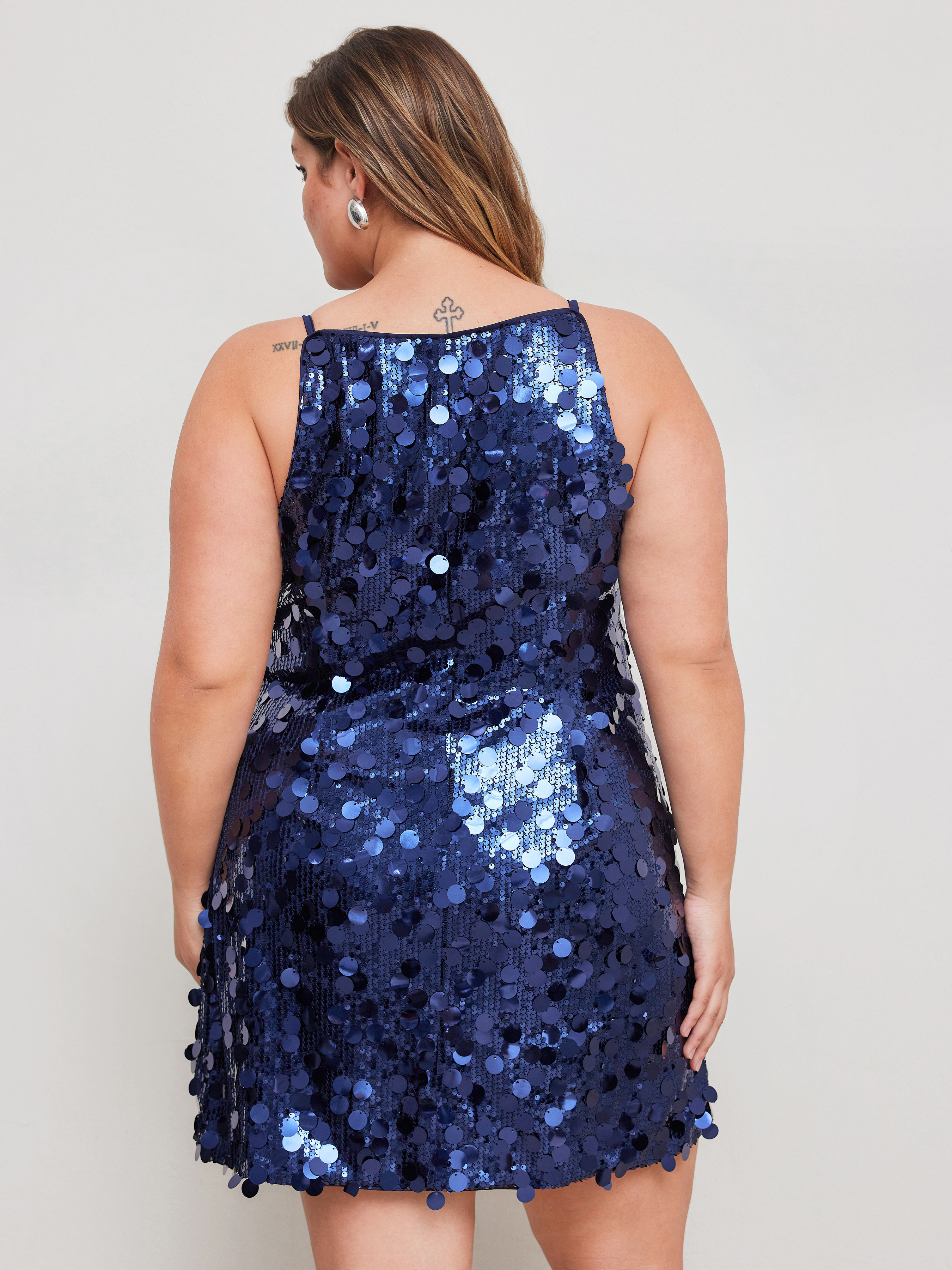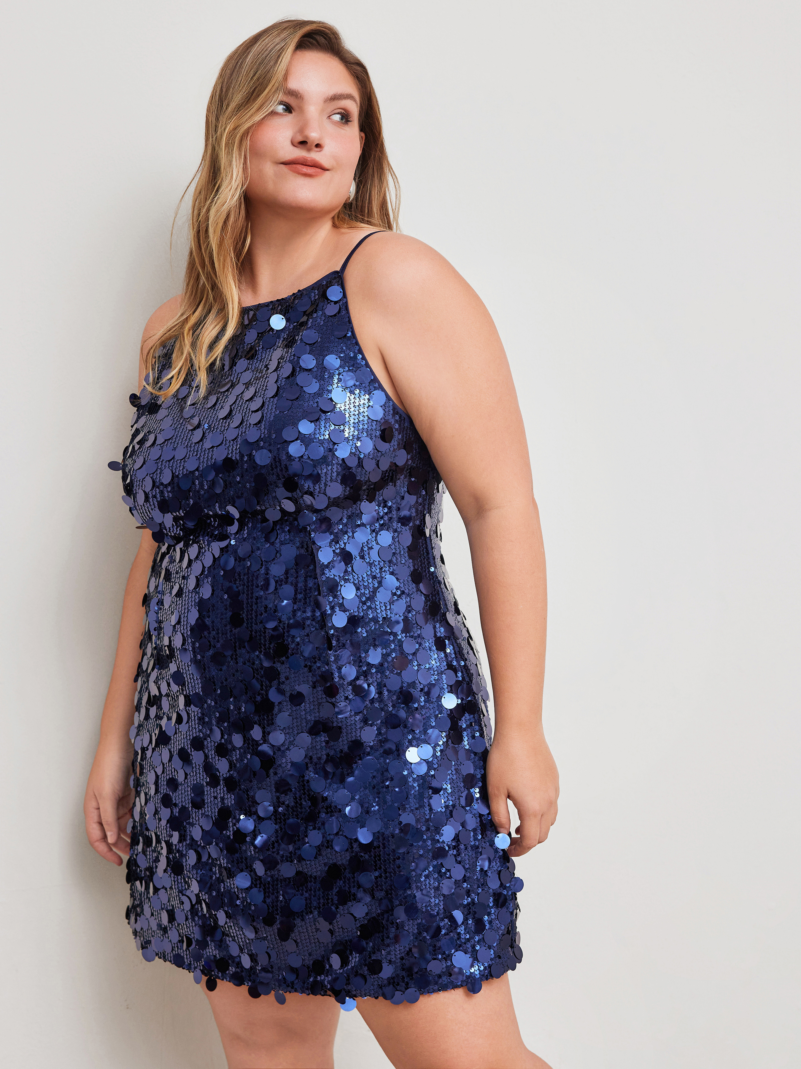 Mini abito solido con scollo a barca in paillettes Curve & Plus
