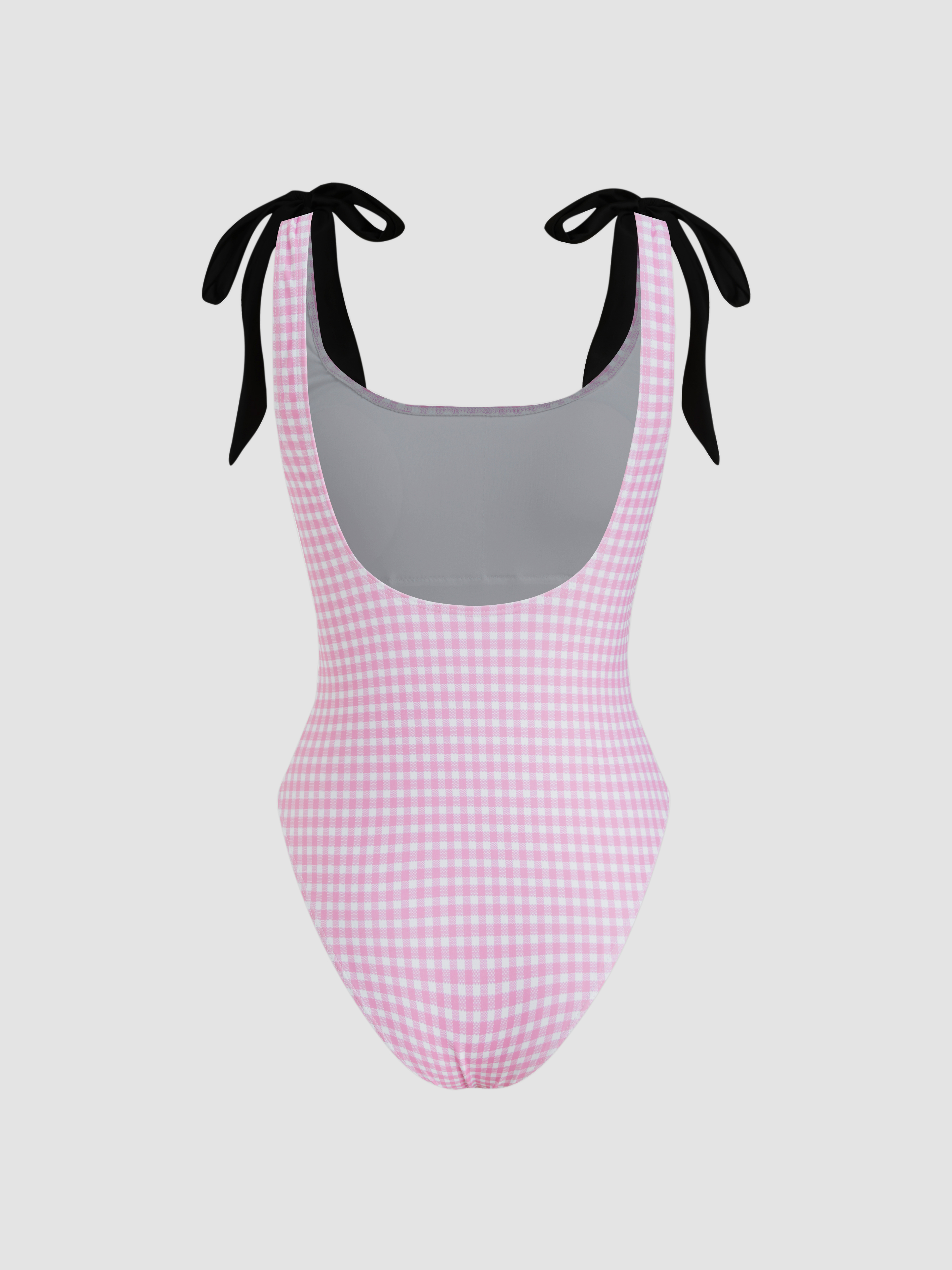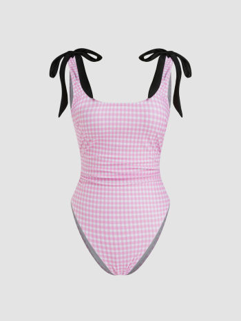 Costume da bagno intero modellante con fiocco in percalle e increspato