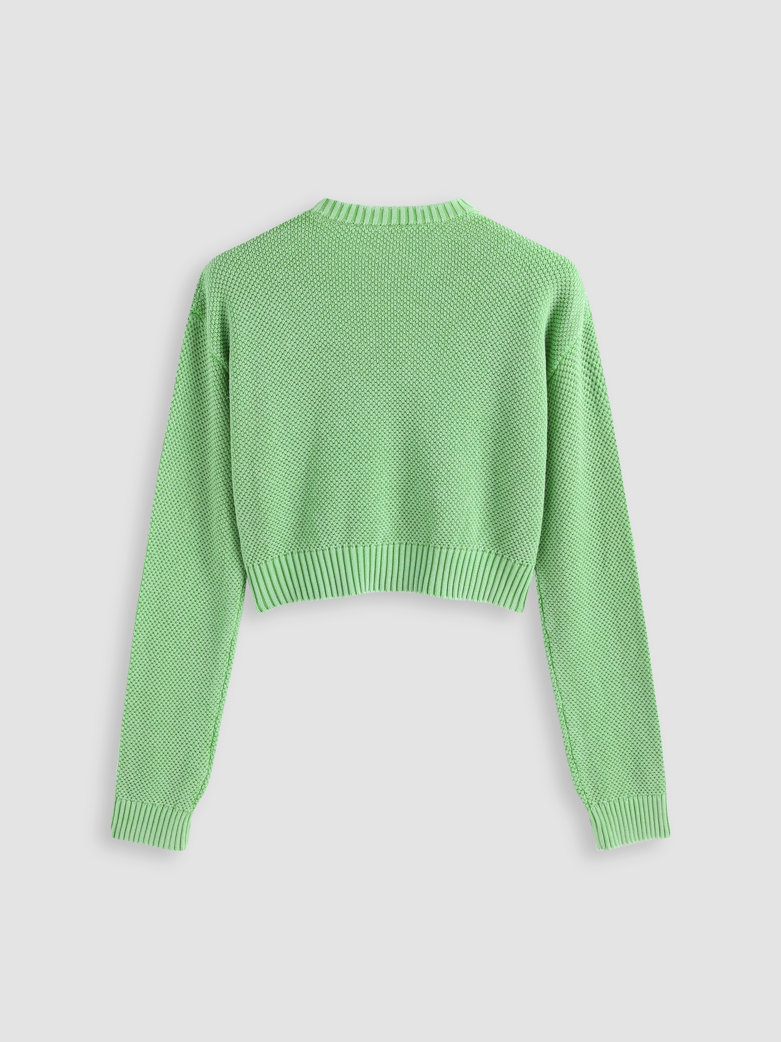 Our Granny Smith Cropped Sweater features a high neck design with a cropped fit and a soft, knitted material. Perfect for adding some color to any wardrobe, this cropped sweater is sweet and playful. Pair with your favorite mini skirt or denim trousers to complete the look.