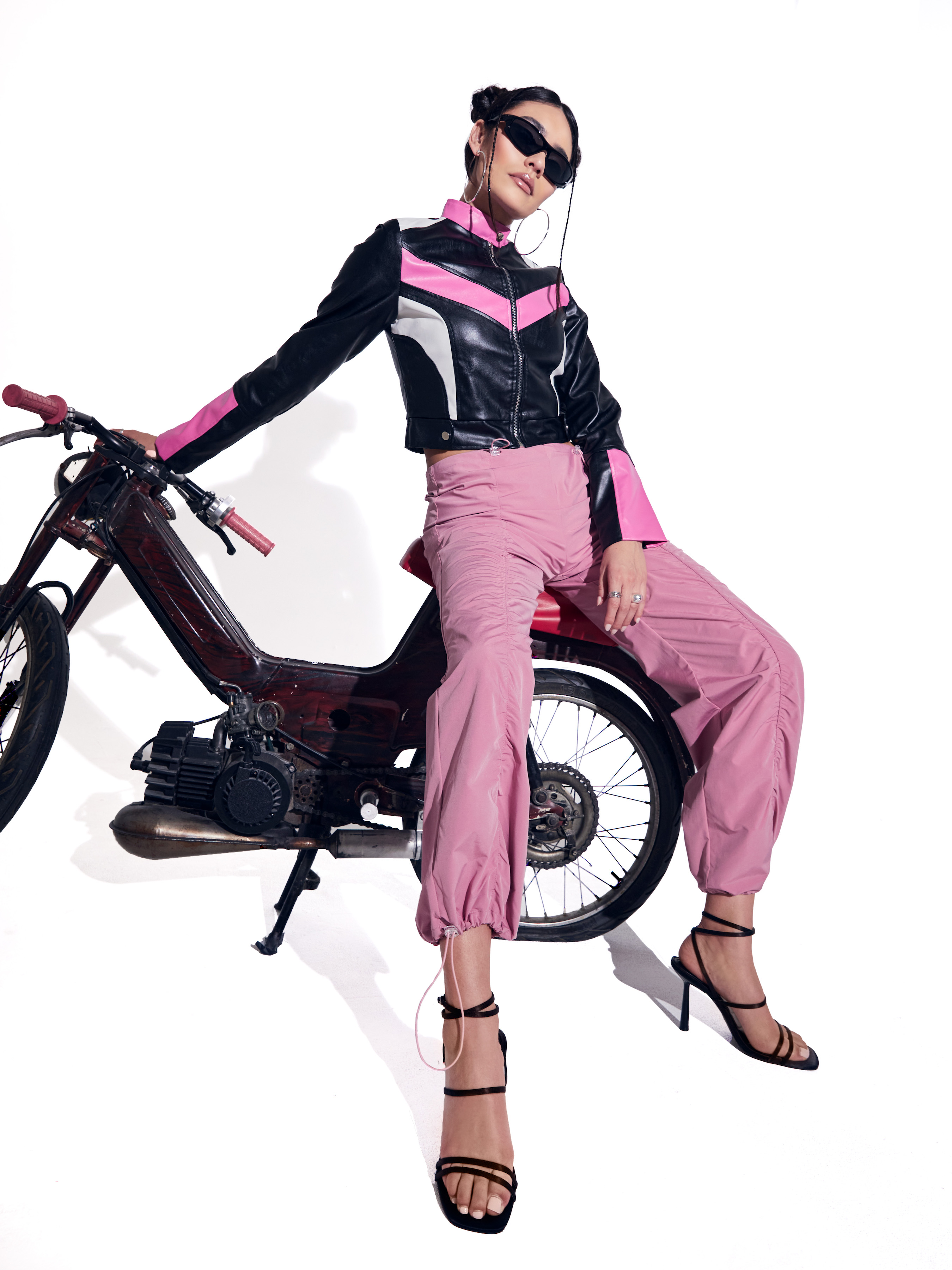 Our Pink Paradise Ruched Parachute Pants feature a high waisted fit with an adjustable wasitline and ruched detailing throughout. With an adjustable drawstring feature on both legs and a bubblegum pink color, these trousers are comfortable and cool. Pair with your favorite racer jacket and strappy heels to complete the look.