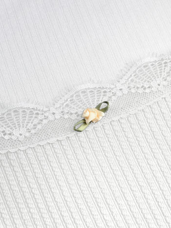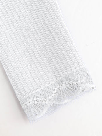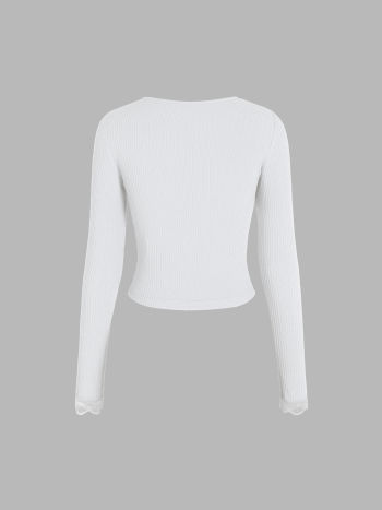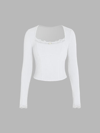 T-shirt lavorata a maglia con collo quadrato e finiture in pizzo