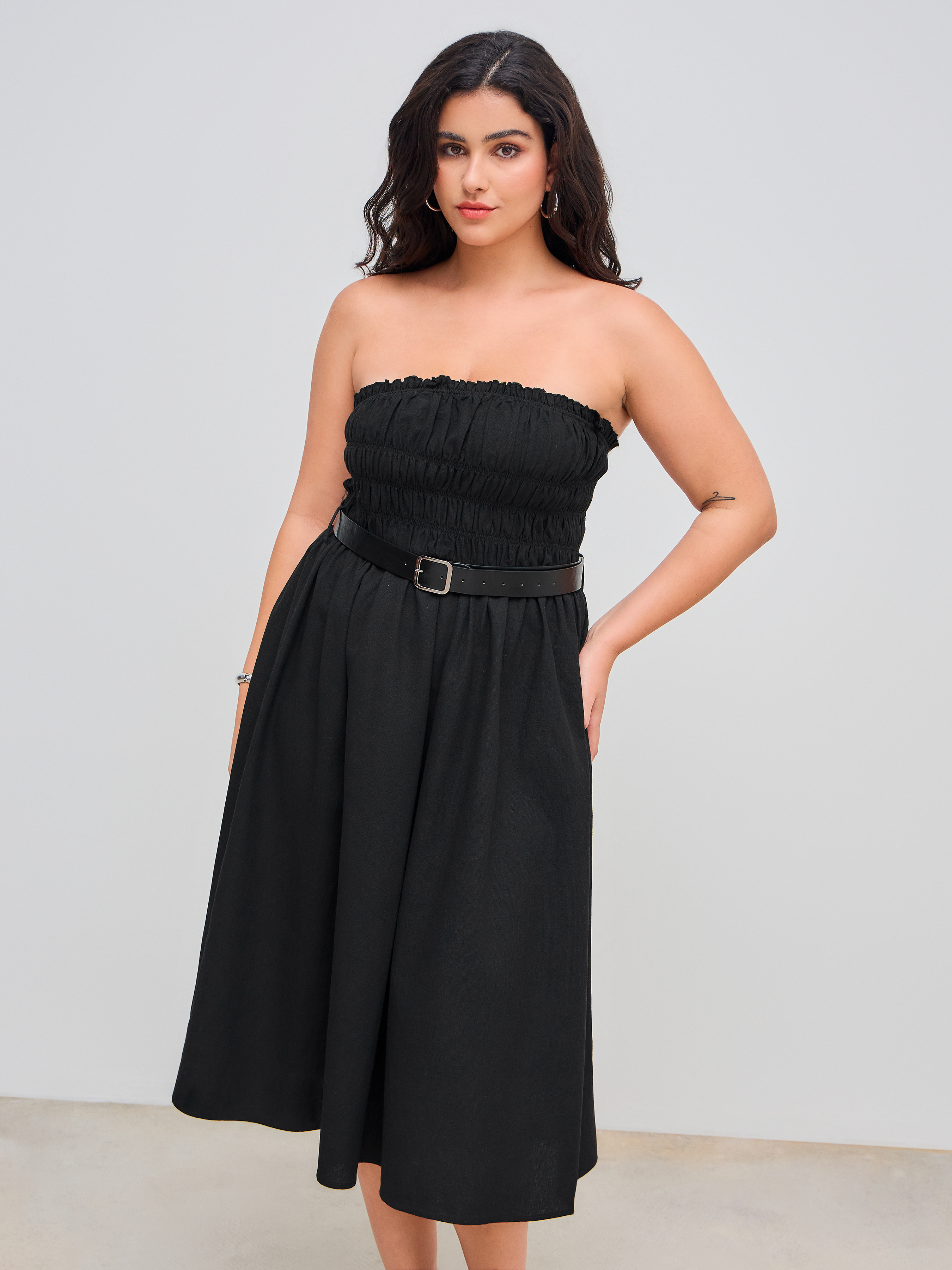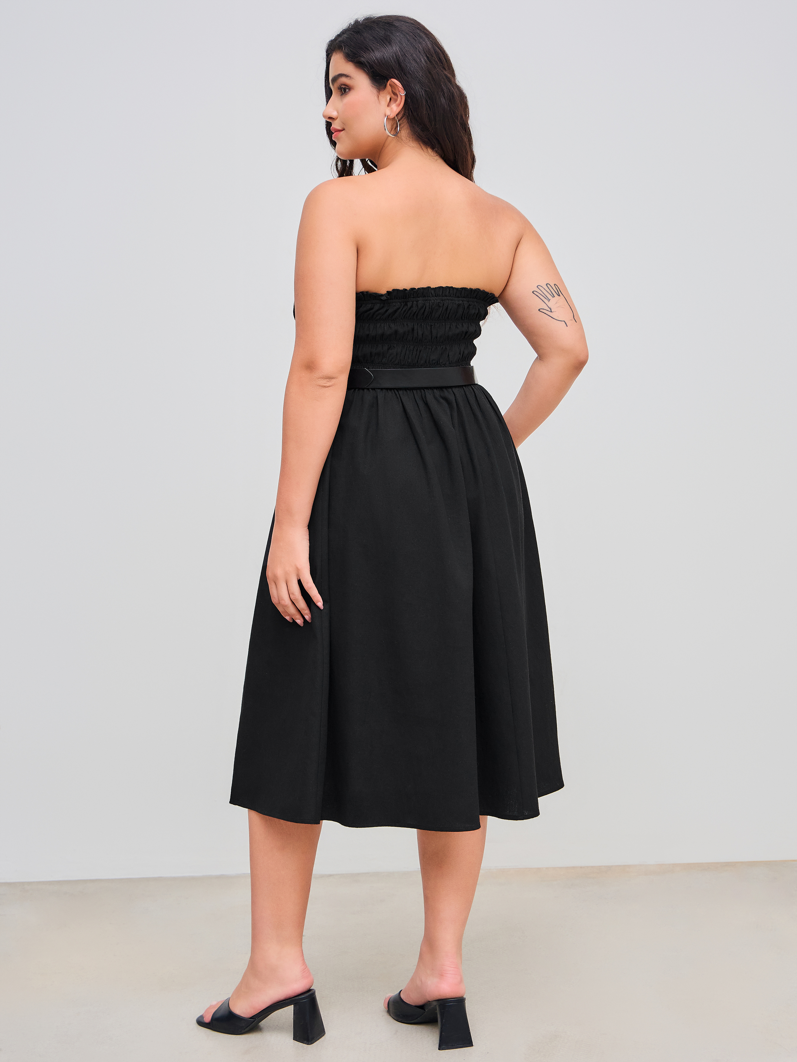Abito midi a tubo con cintura Curve & Plus con bordi in lattuga e volant