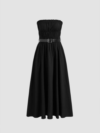 Solido abito midi a tubo con volant e finiture in lattuga con cintura