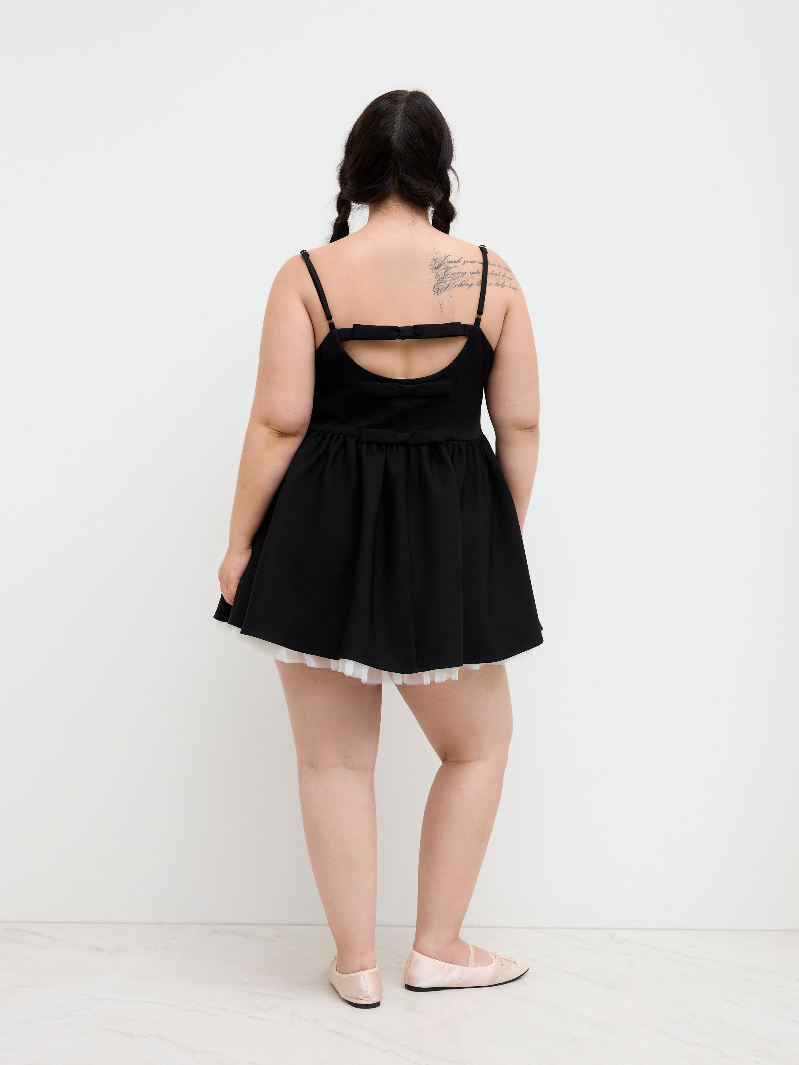 Mini abito con collo quadrato e fiocco con volant a strati