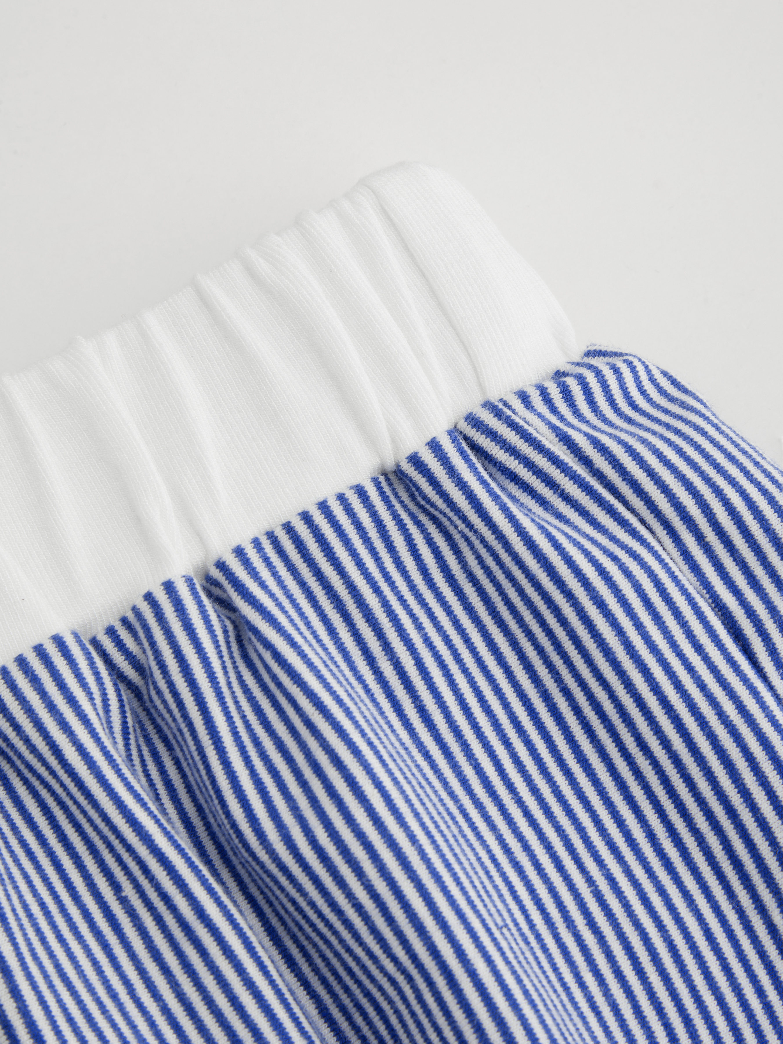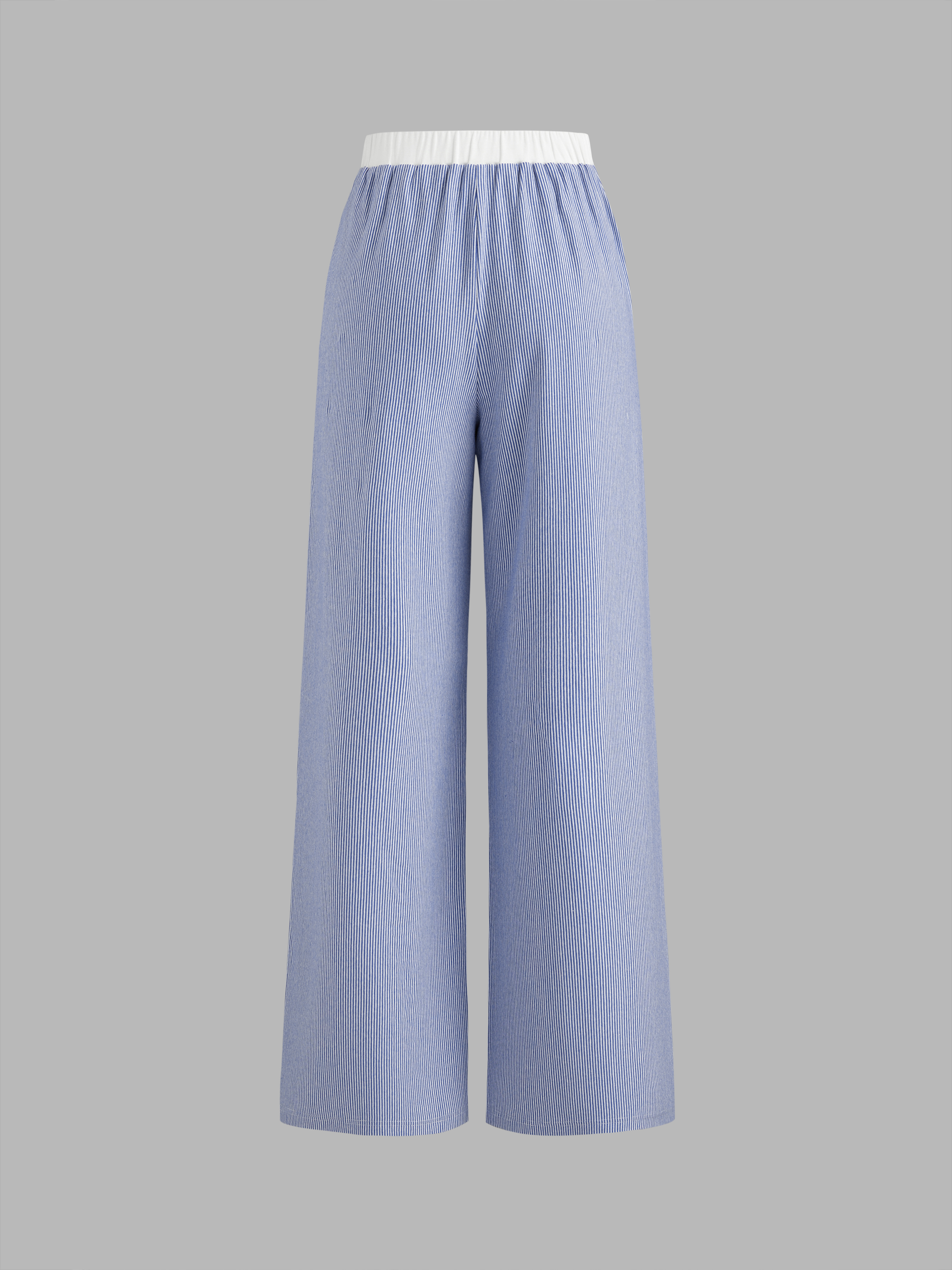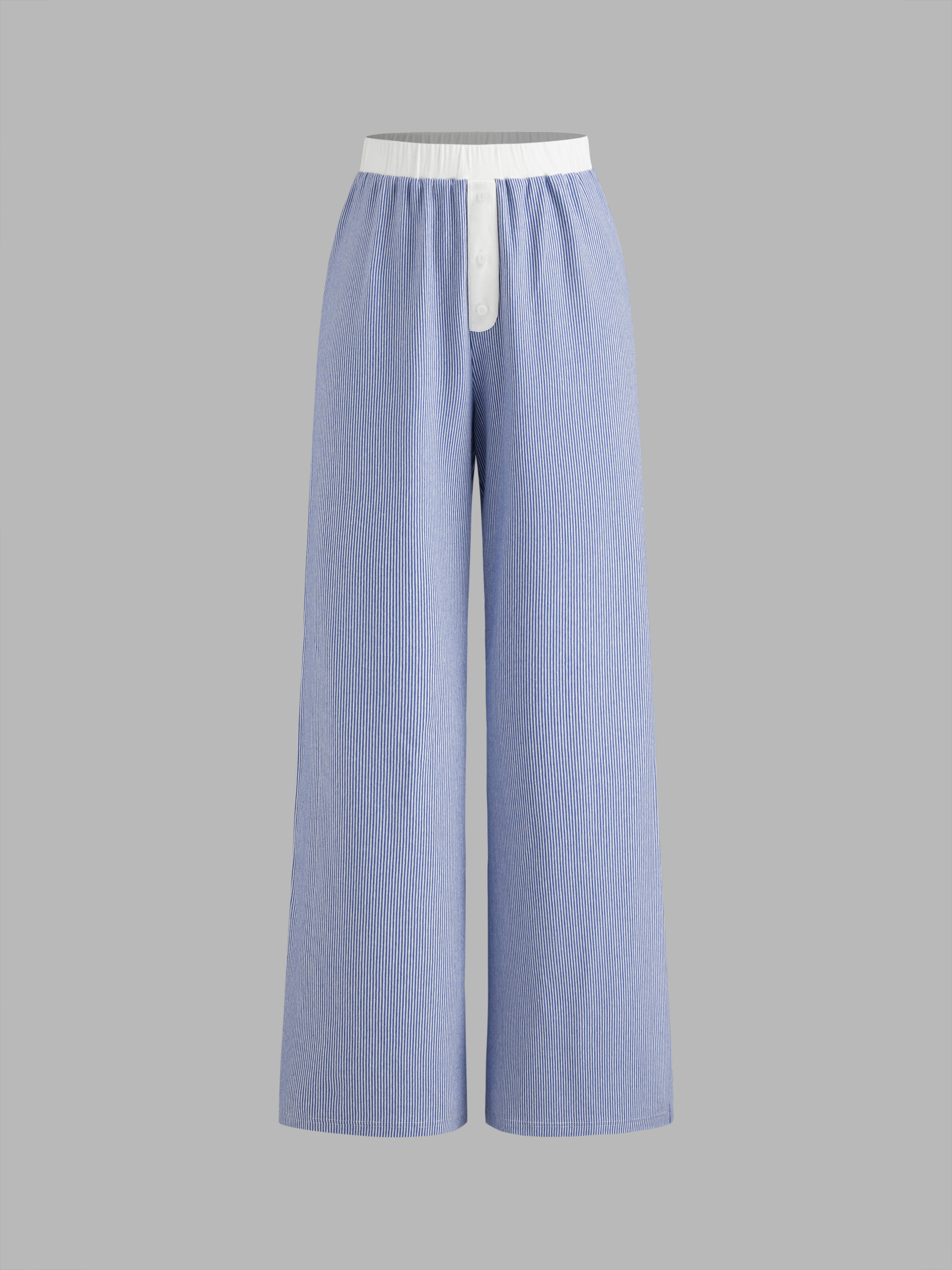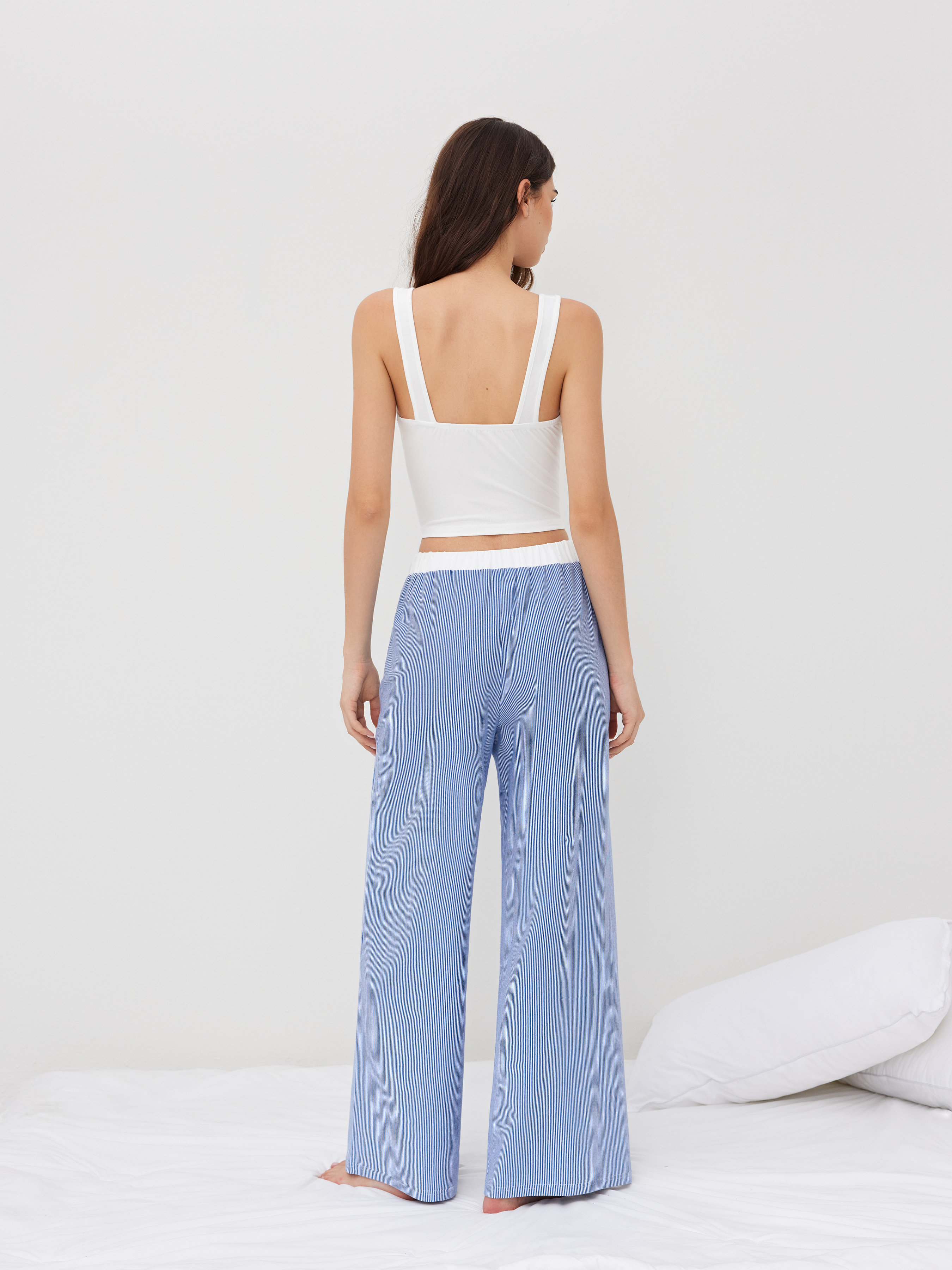 Set loungewear con top corto a spalle scoperte e pantaloni a gamba larga a vita media con bordi a contrasto a righe