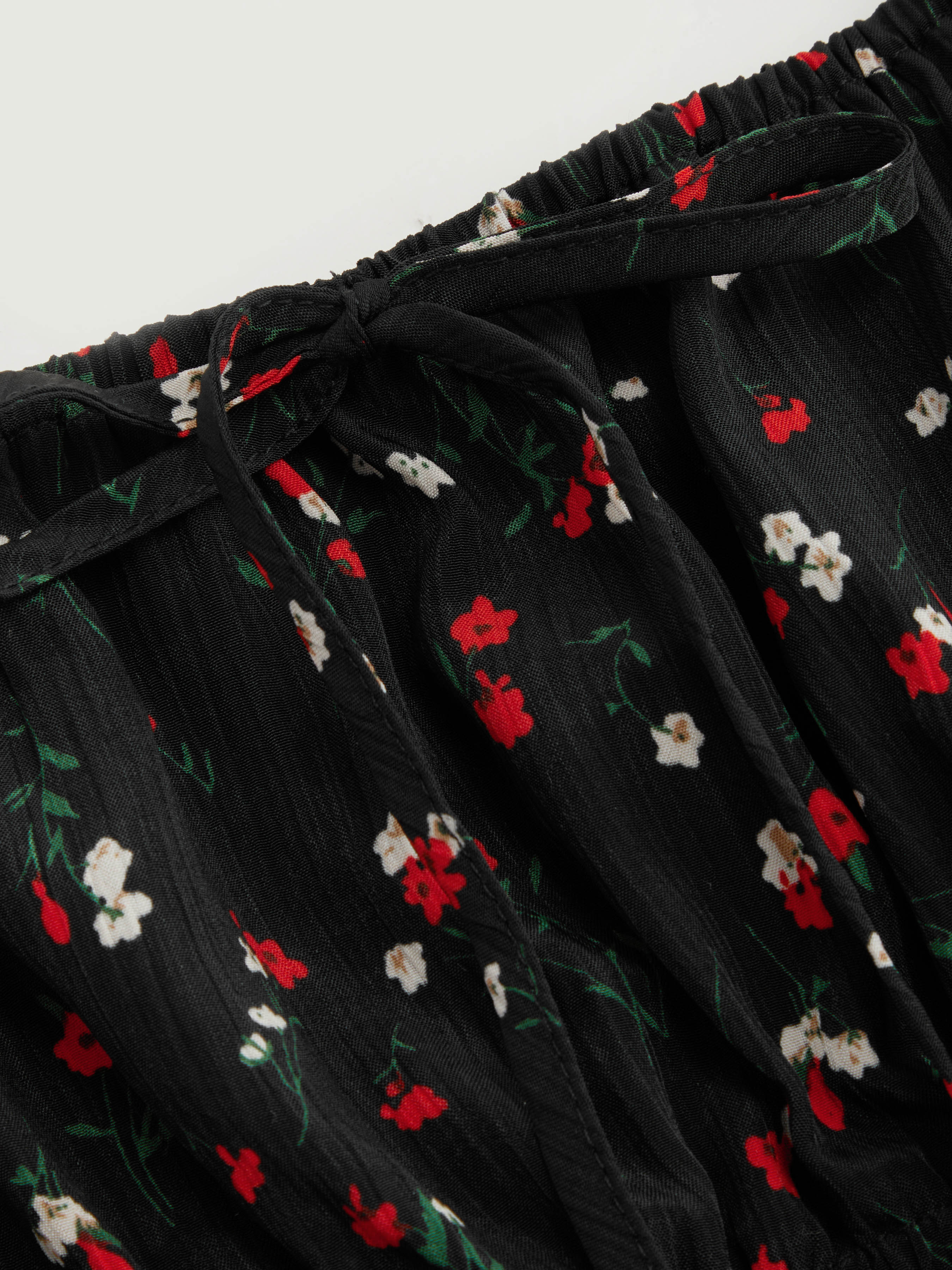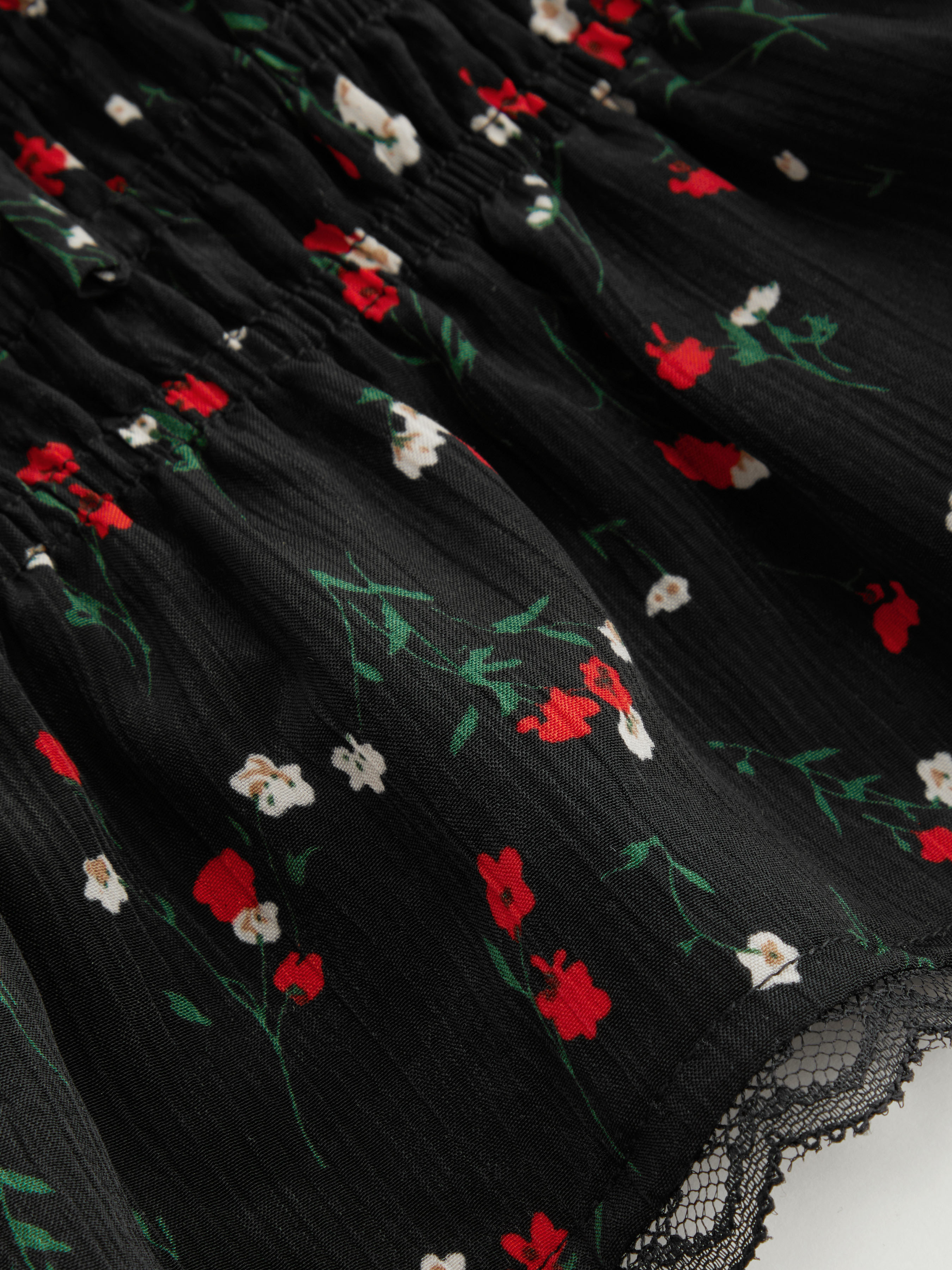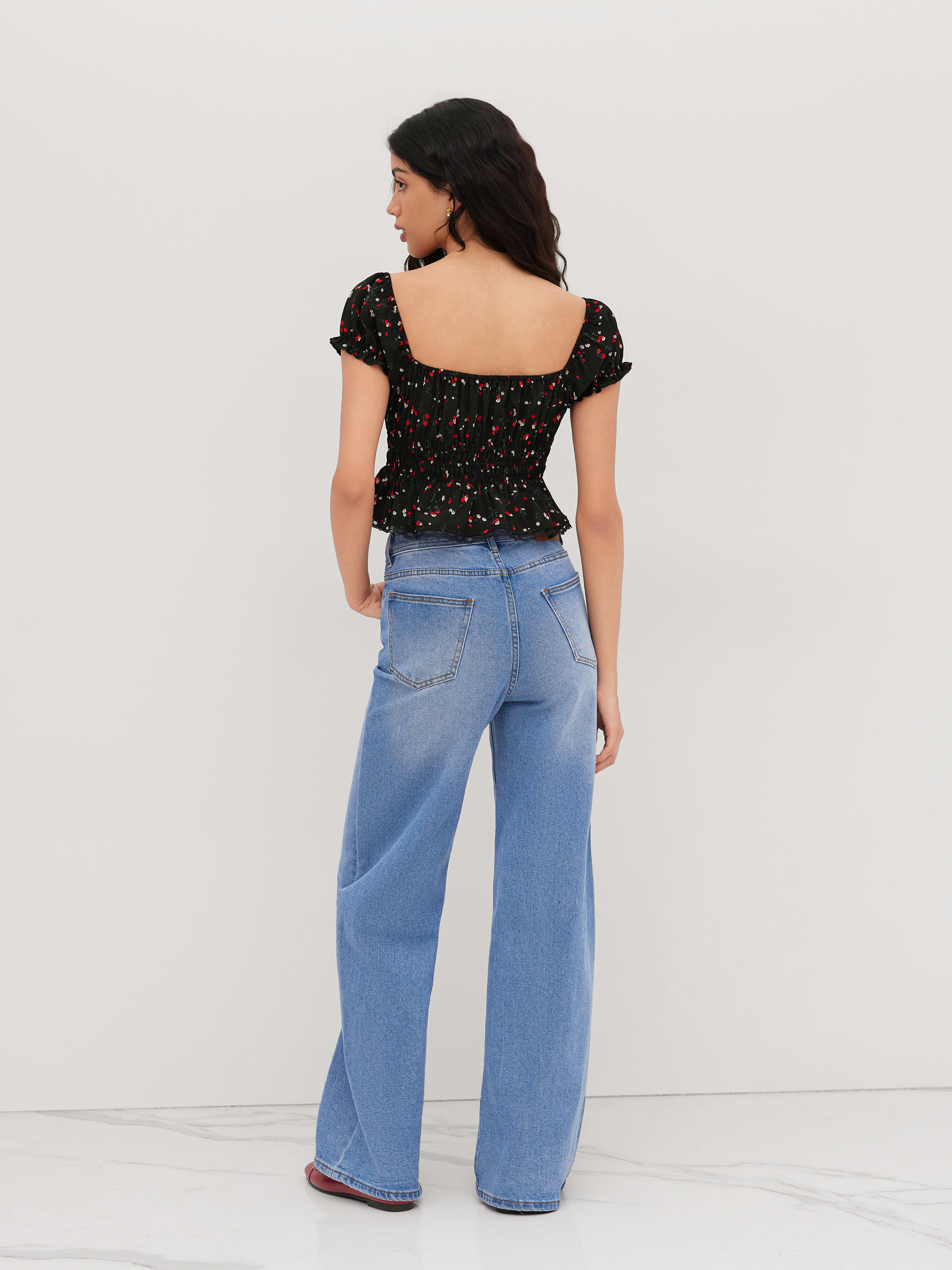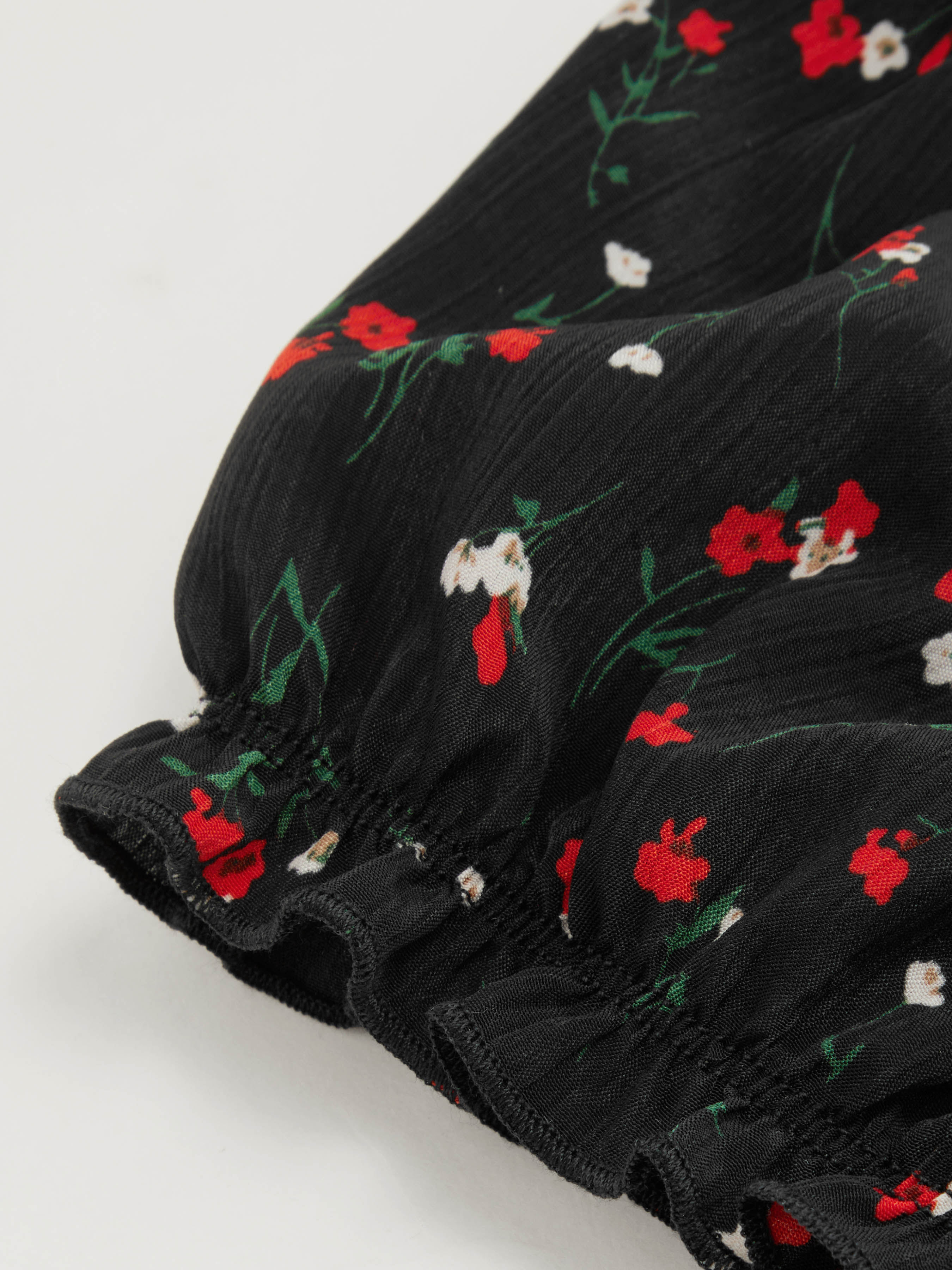 Top con Scollo Quadrato con Stampa Floreale e Bordo Lattuga