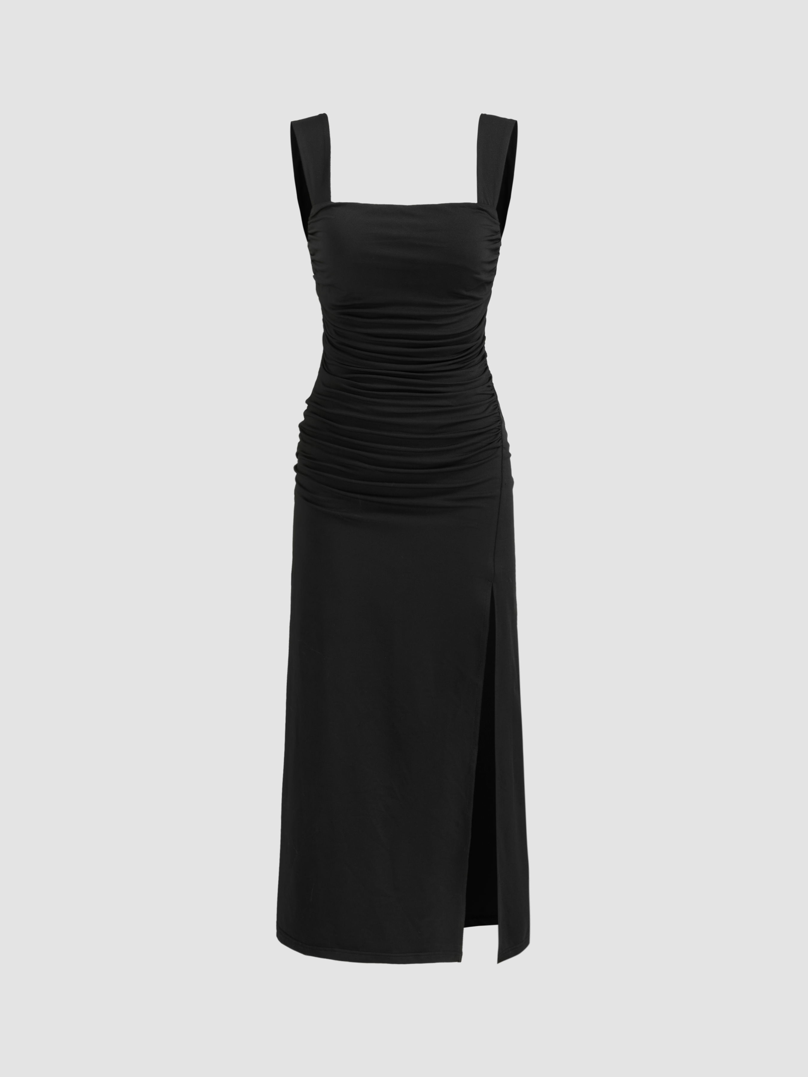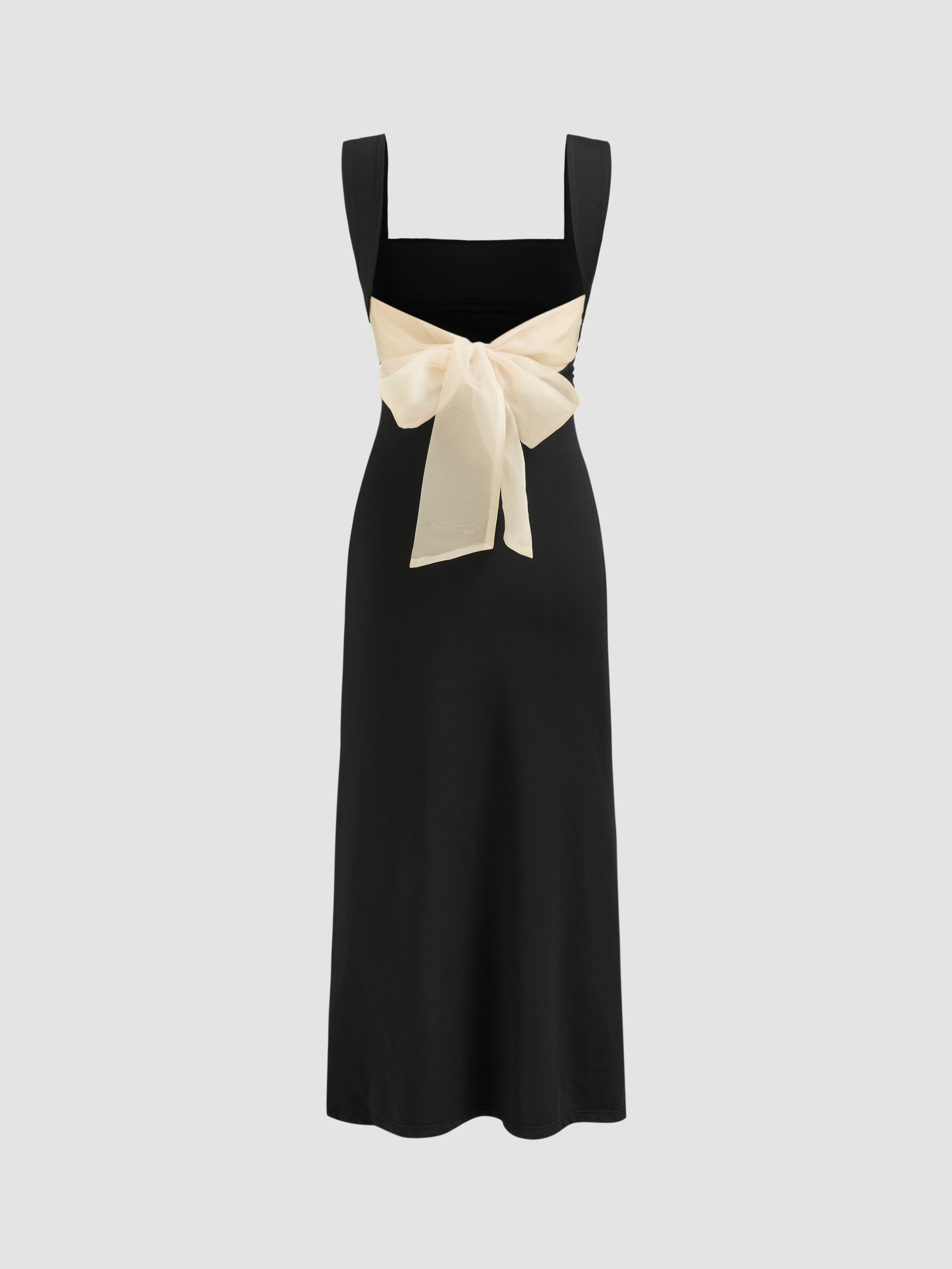 Maxi abito con scollo quadrato, increspato e con nodo a fiocco