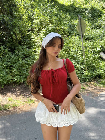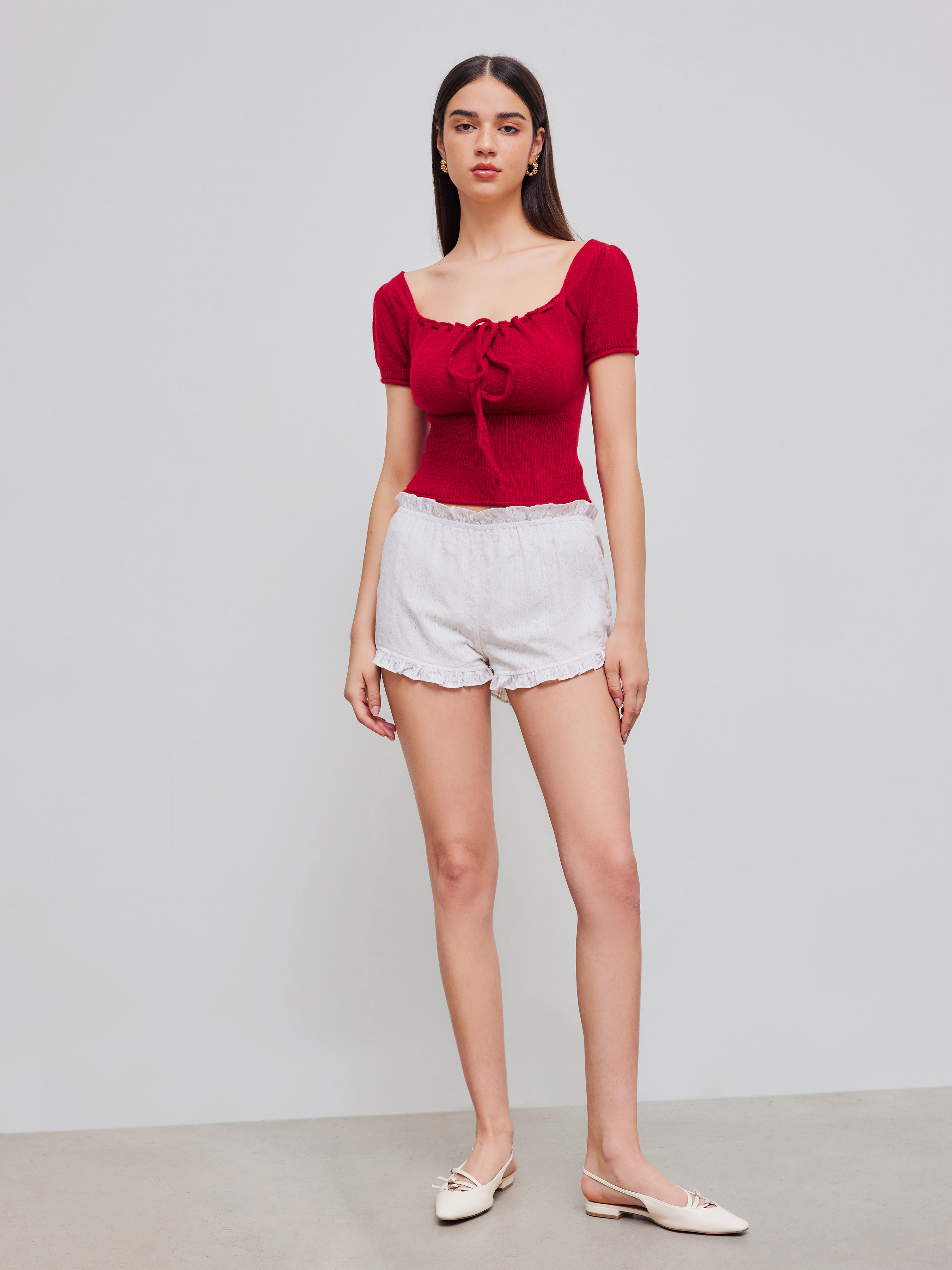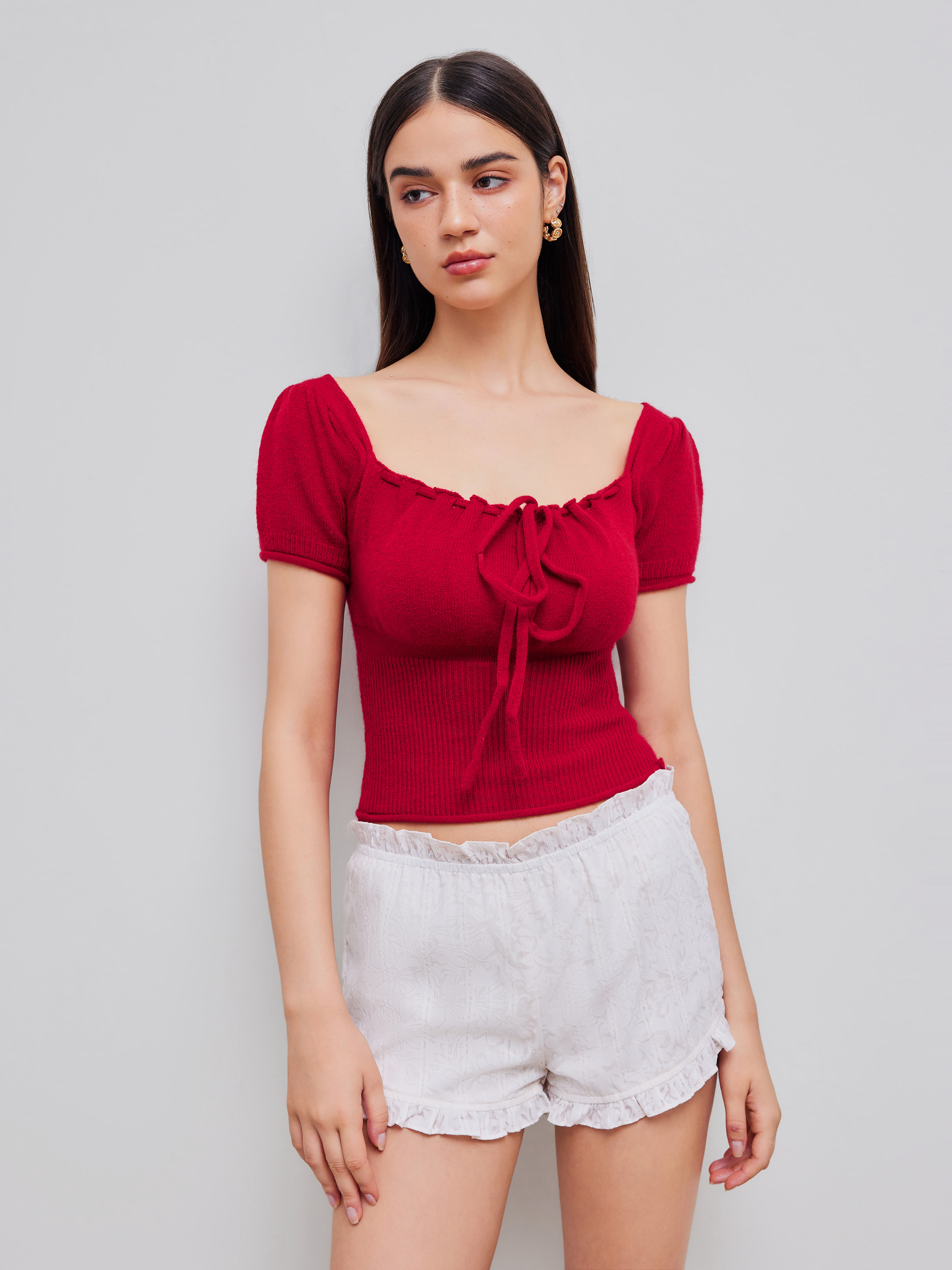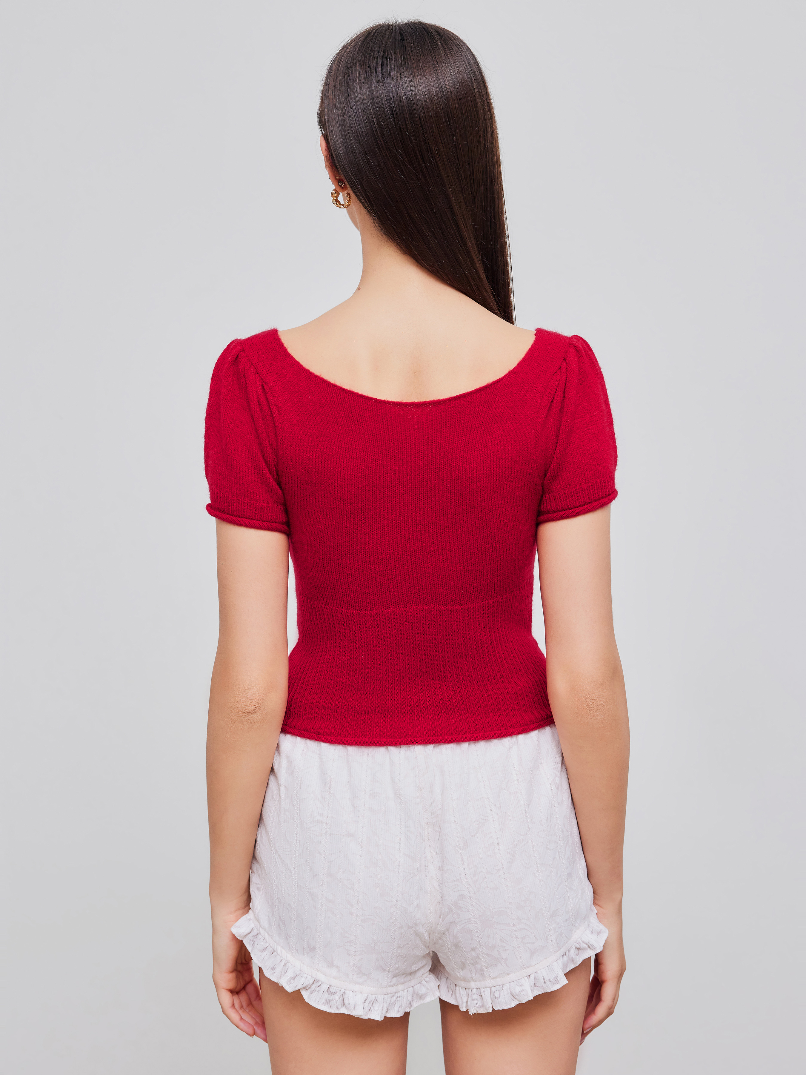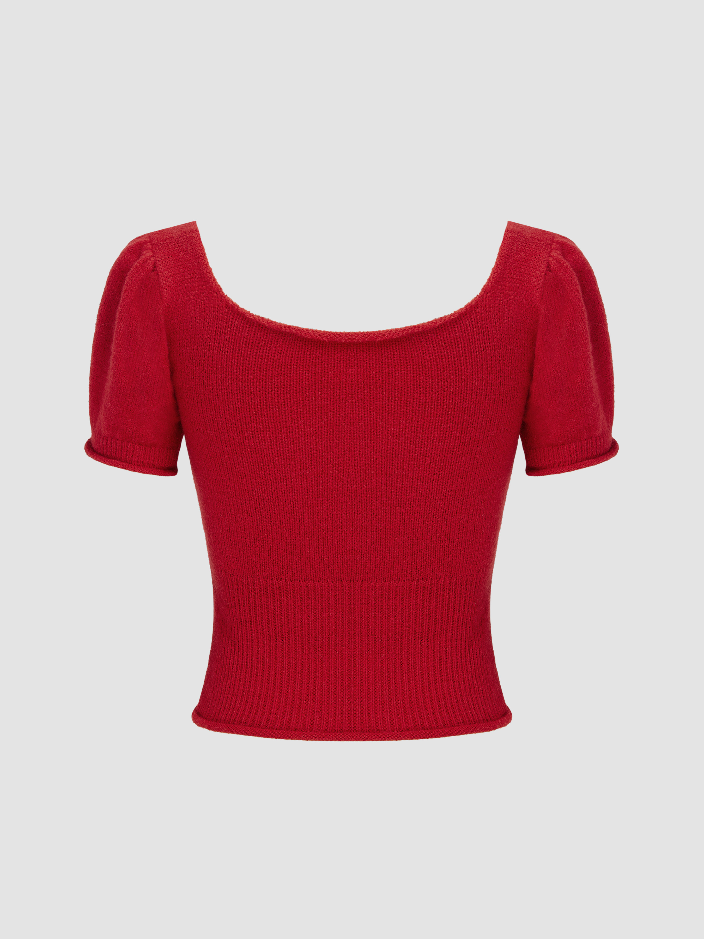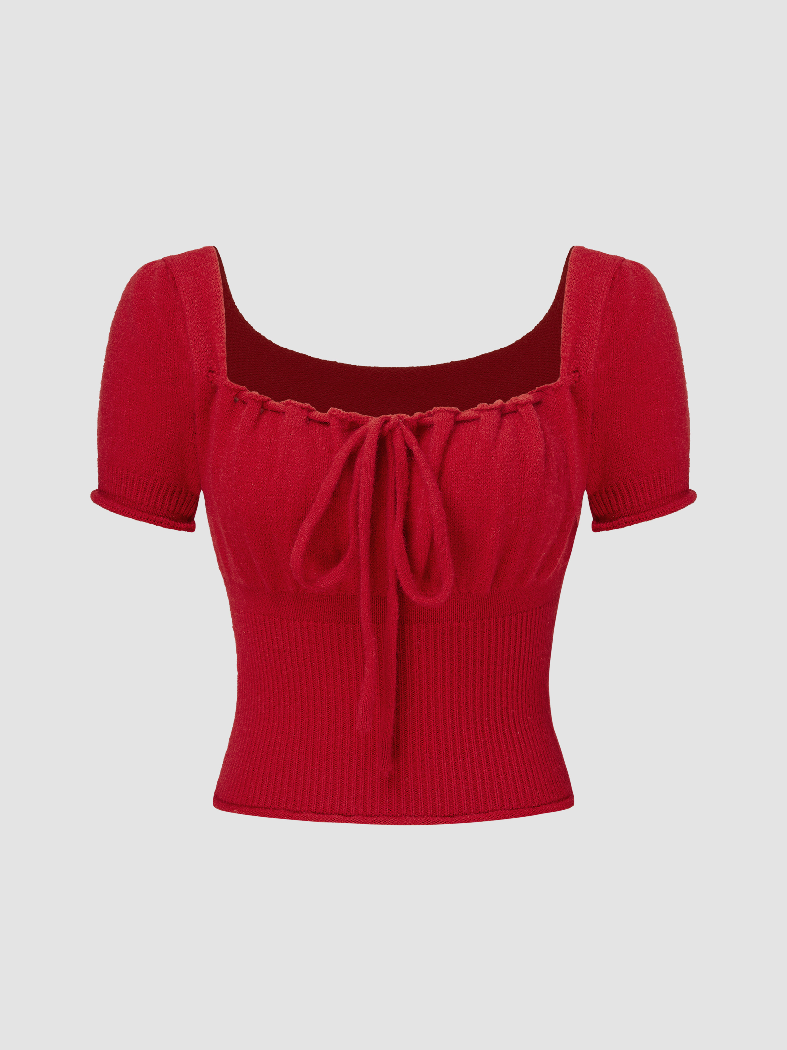 Top a maniche corte con scollo quadrato e lavorazione a maglia solida