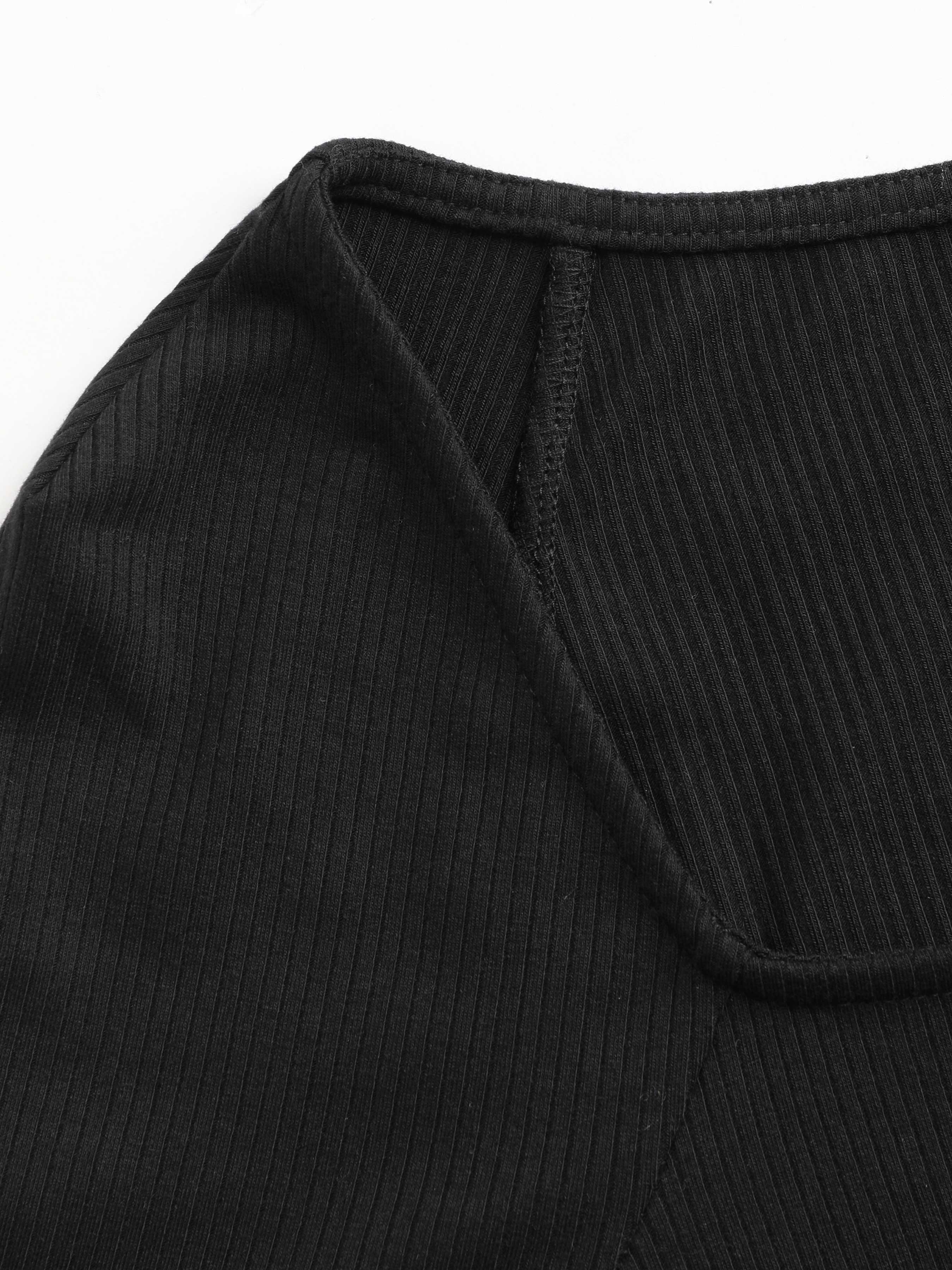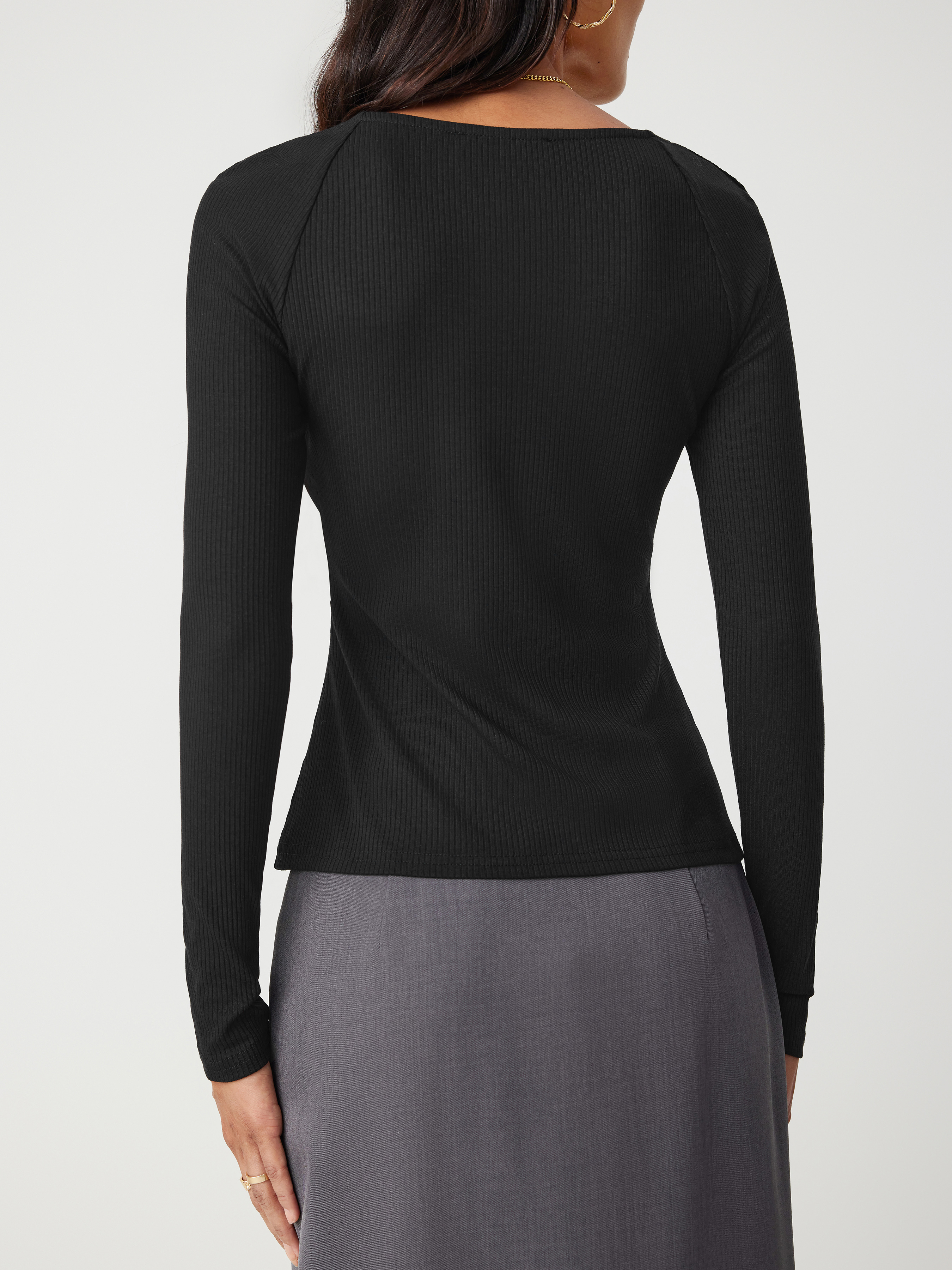 Maglietta a maniche lunghe tinta unita con collo quadrato
