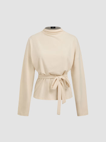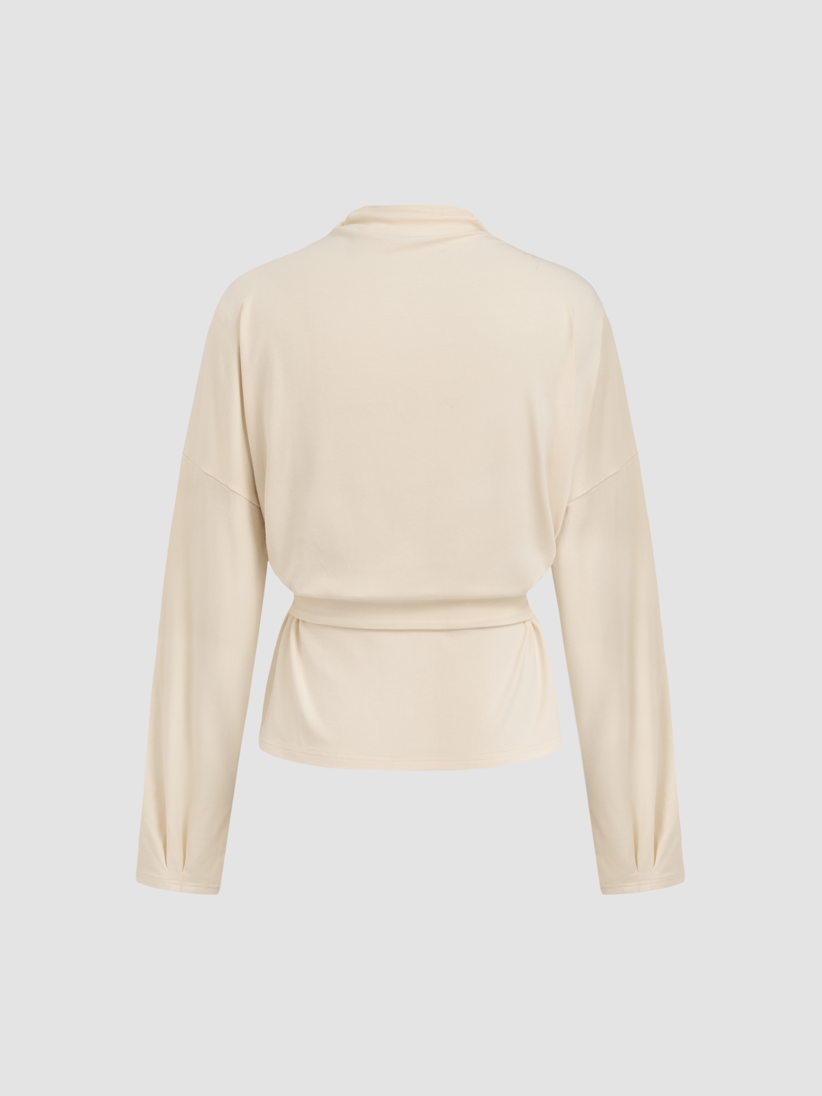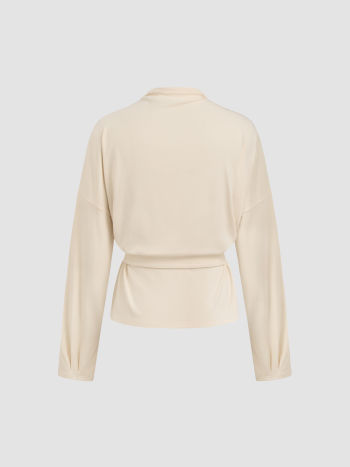 Top a maniche lunghe con colletto rialzato e annodato arricciato