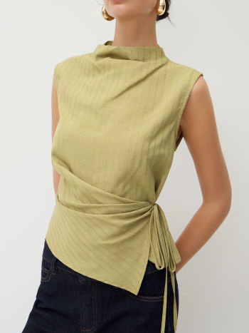 Canotta testurizzata arricciata e annodata con collo alla coreana