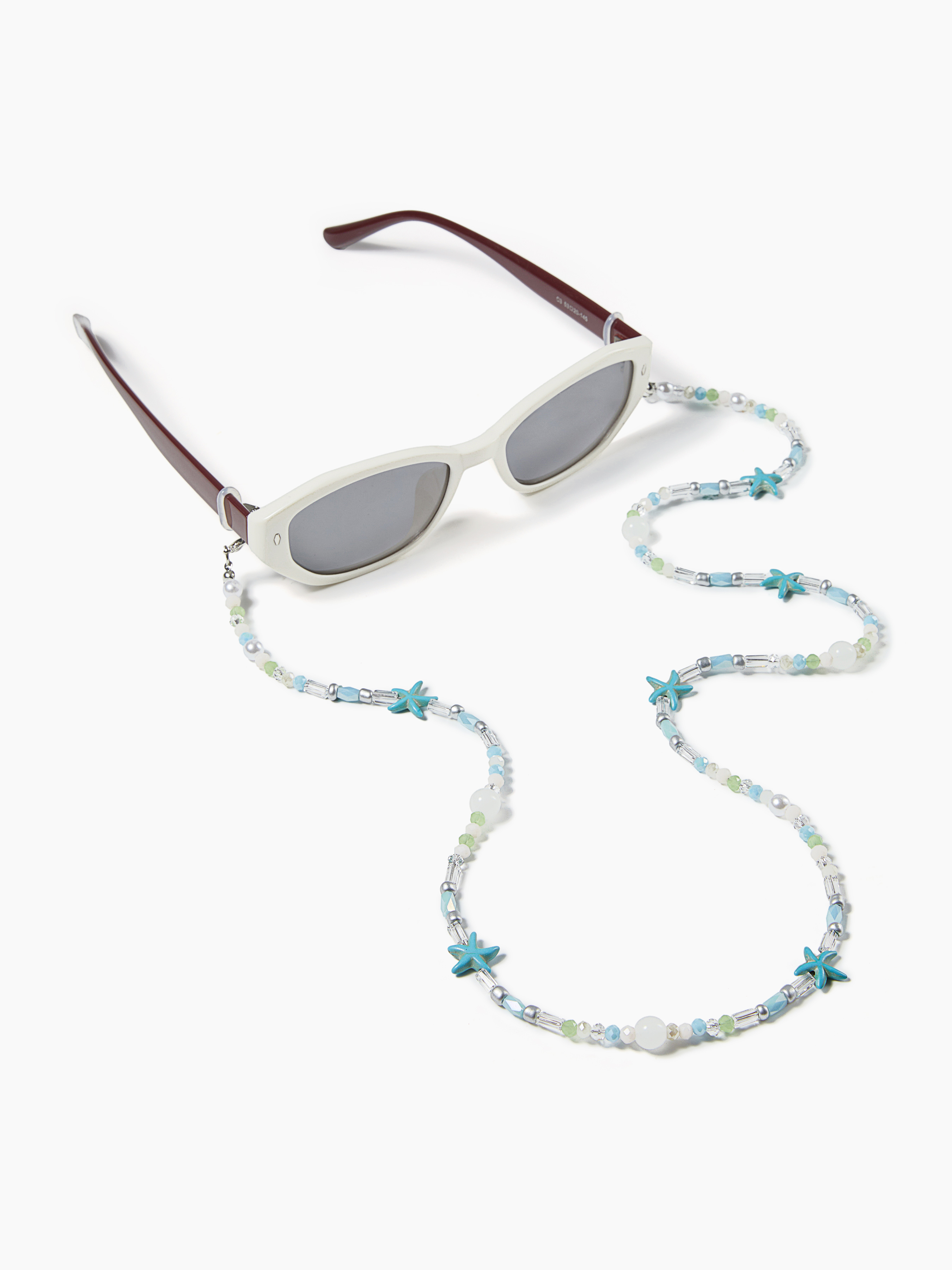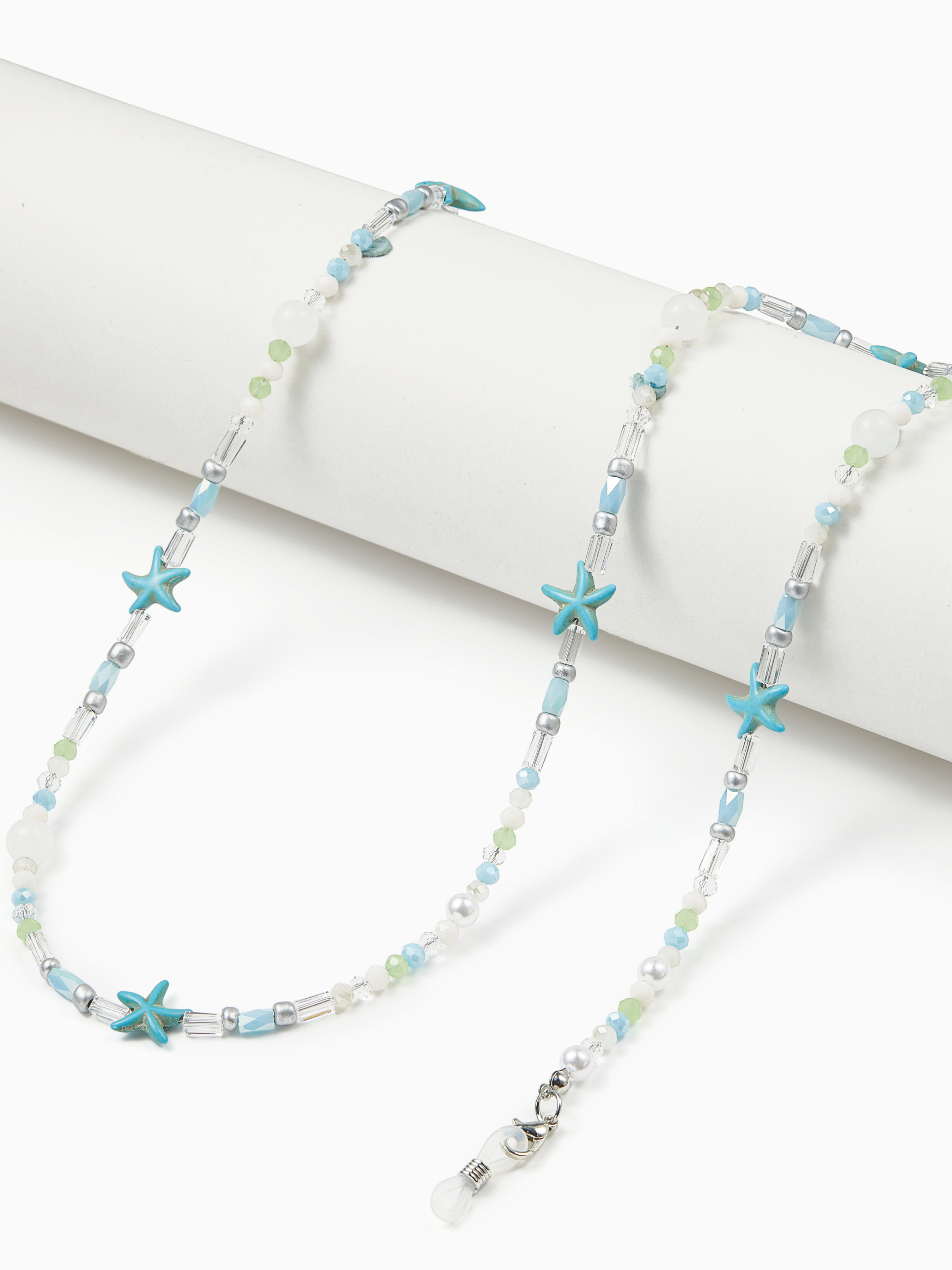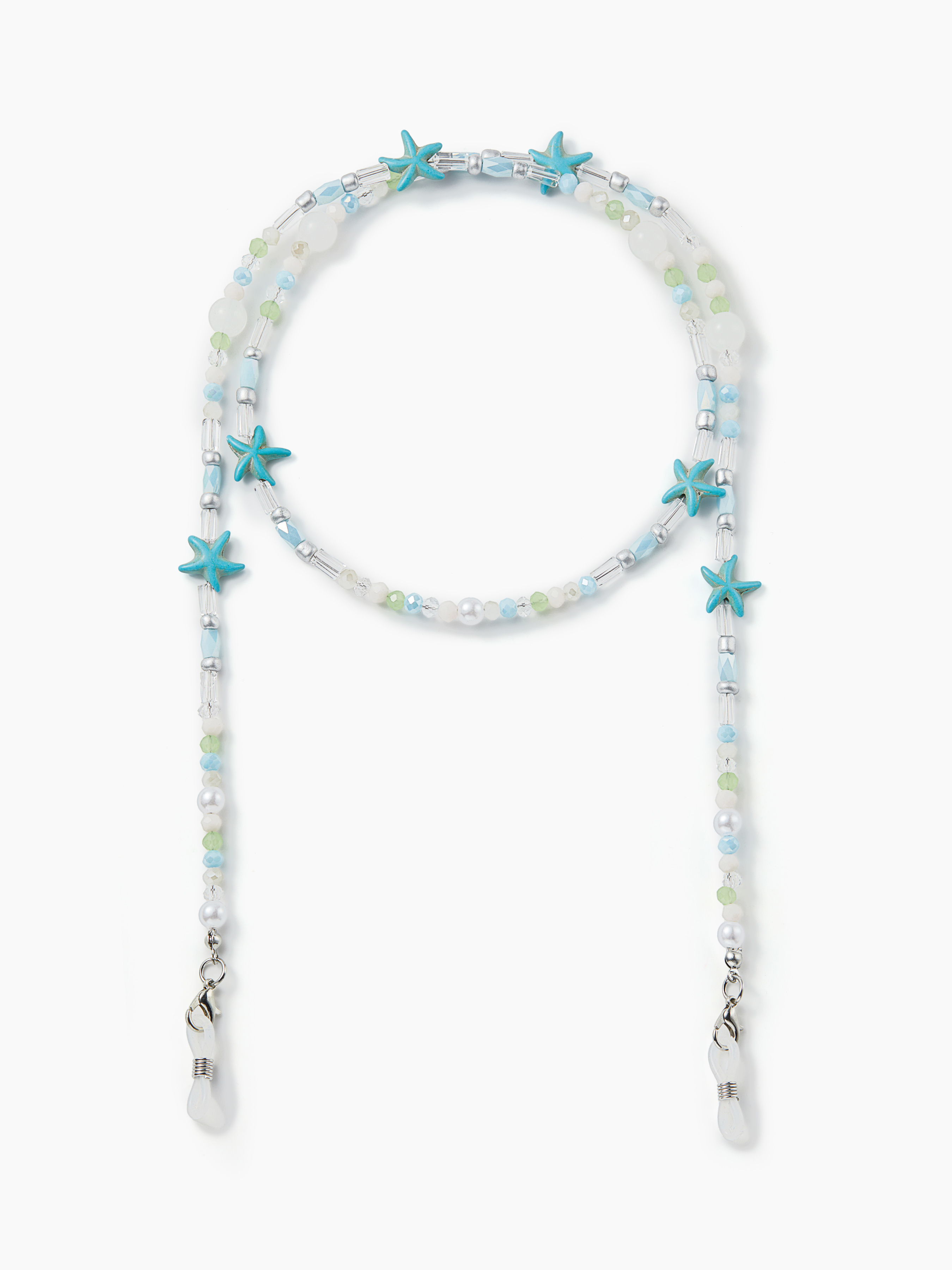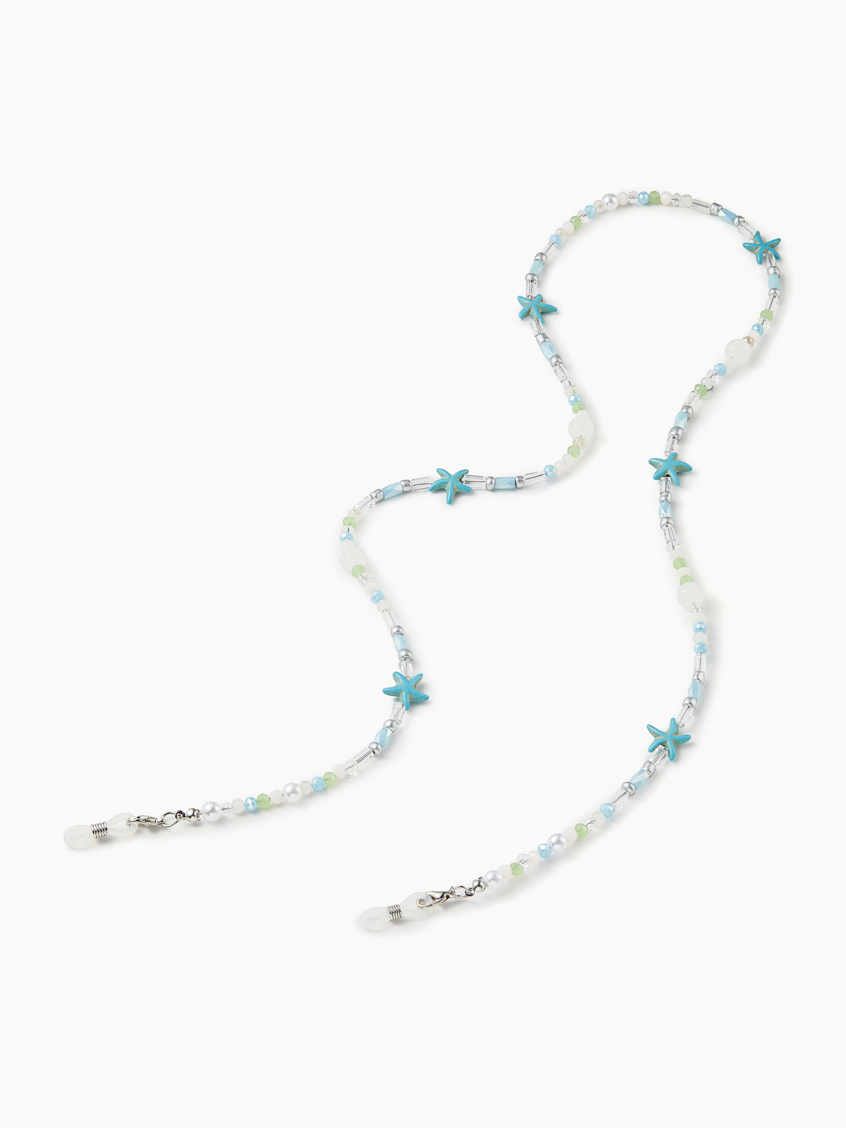 CATENE PER OCCHIALI CON STELLA MARINA, PERLA SIMULATA E PERLINE COLORATE