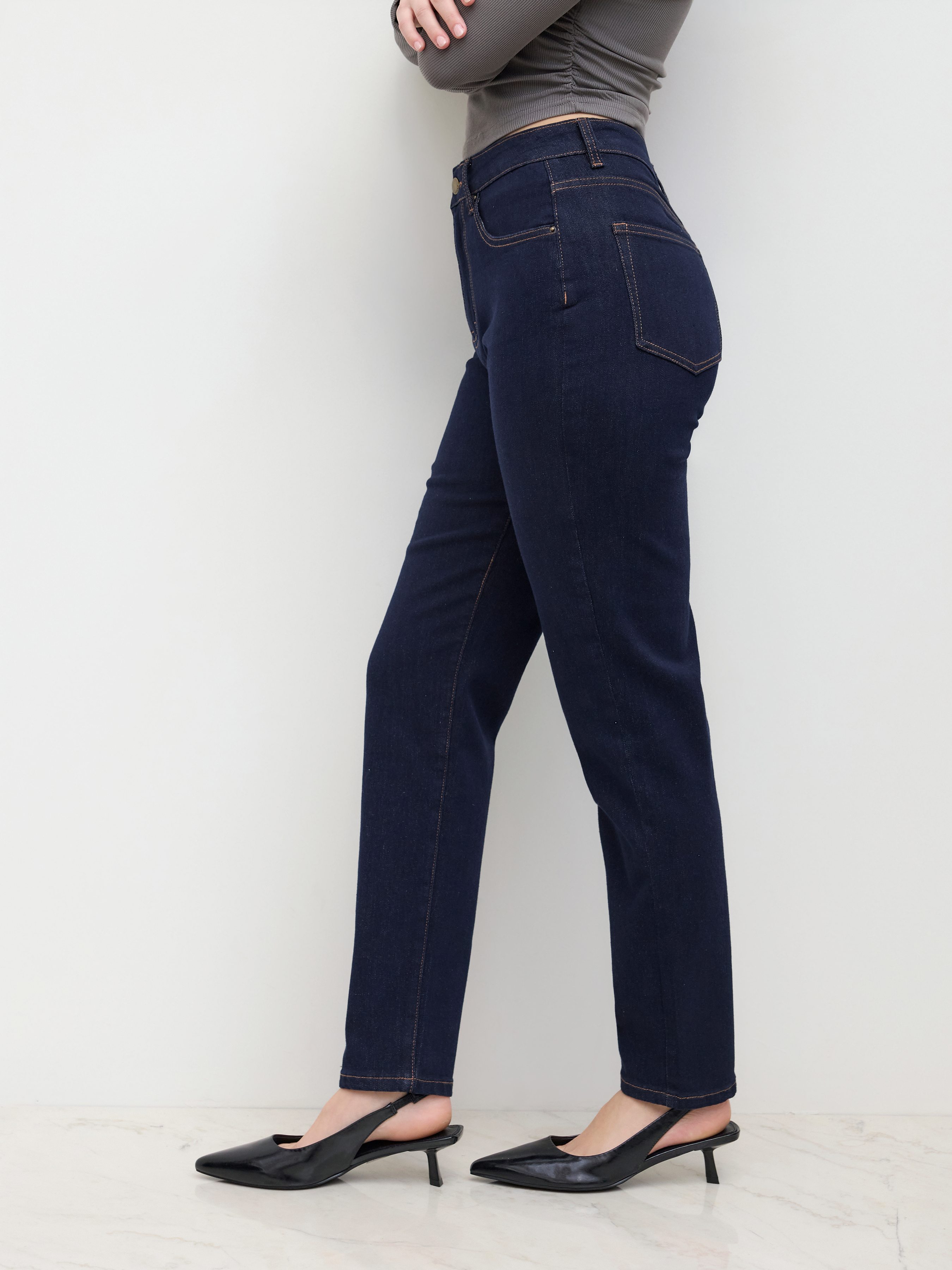 And for our next trick: tapered jeans. A mid-rise waist, all-over stretch, and ankle-length tailored leg flattering every body? Must be magic.