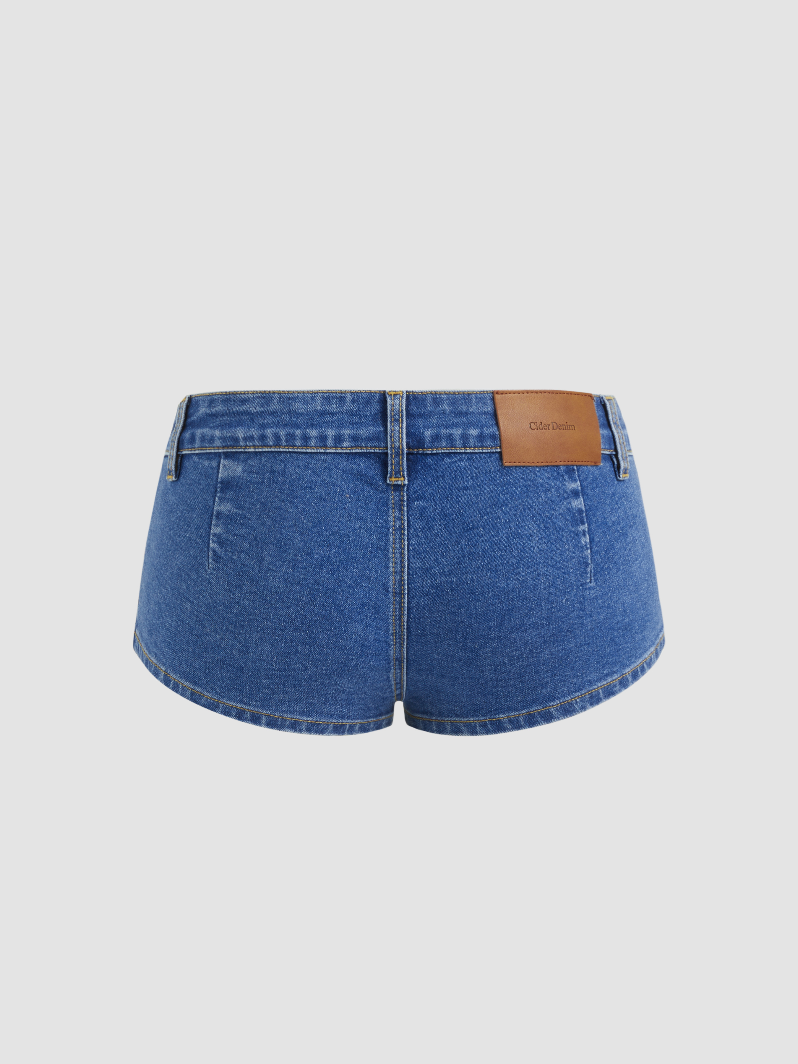 Micro shorts elasticizzati in denim color sidro a vita bassa