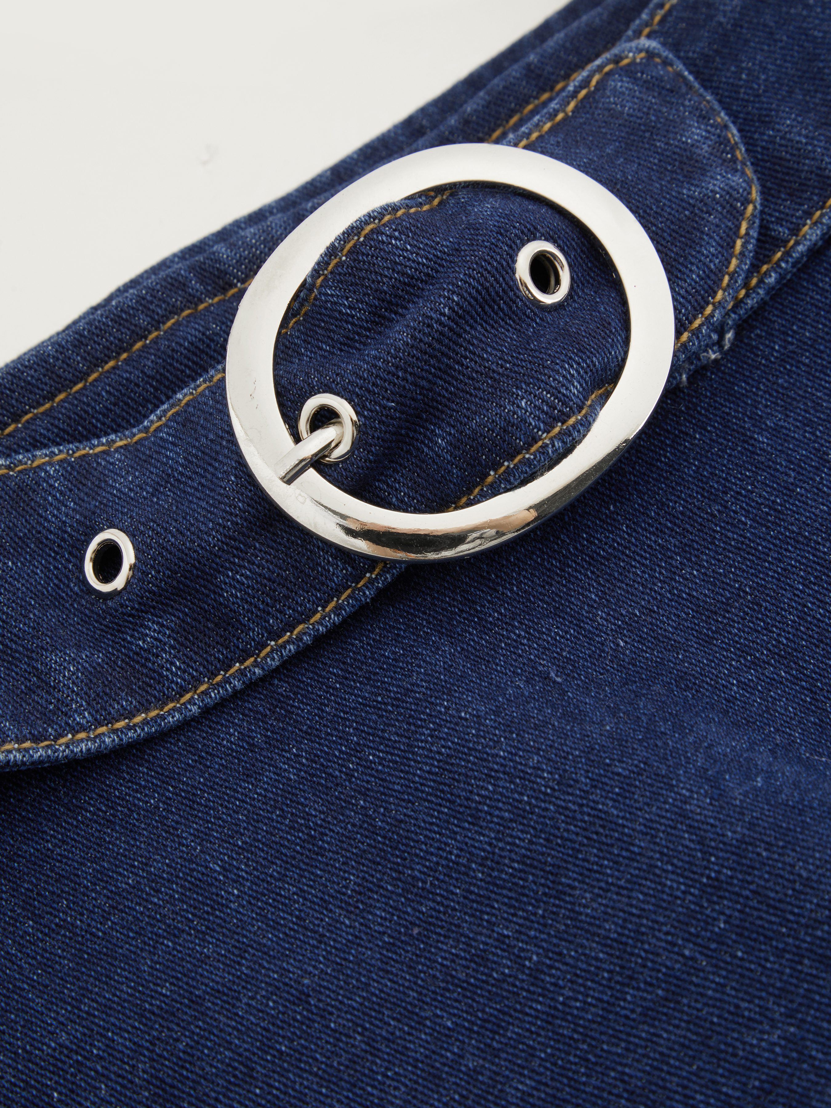 Stretch Denim Low Rise Wrap Belted Micro Mini Skort