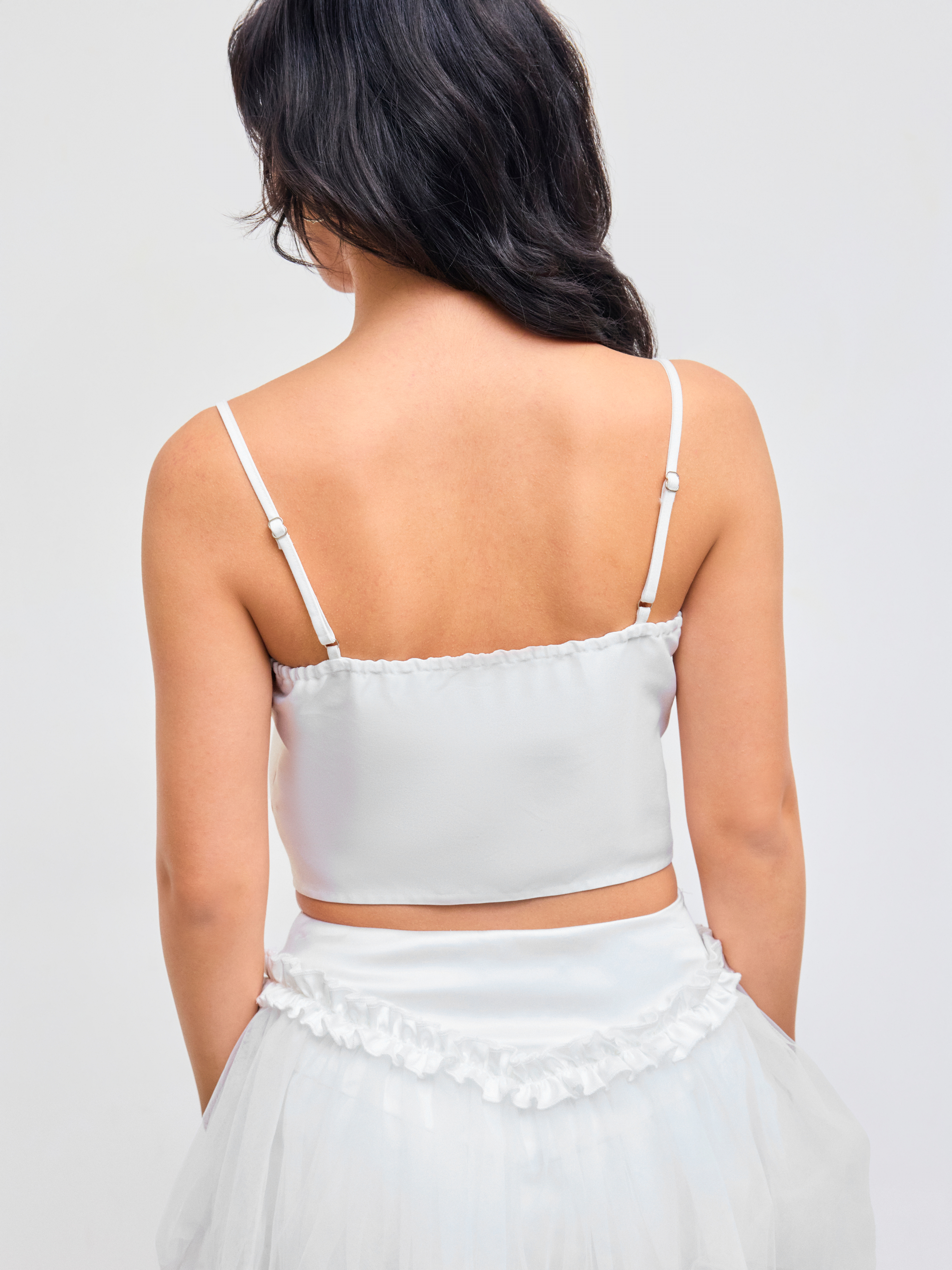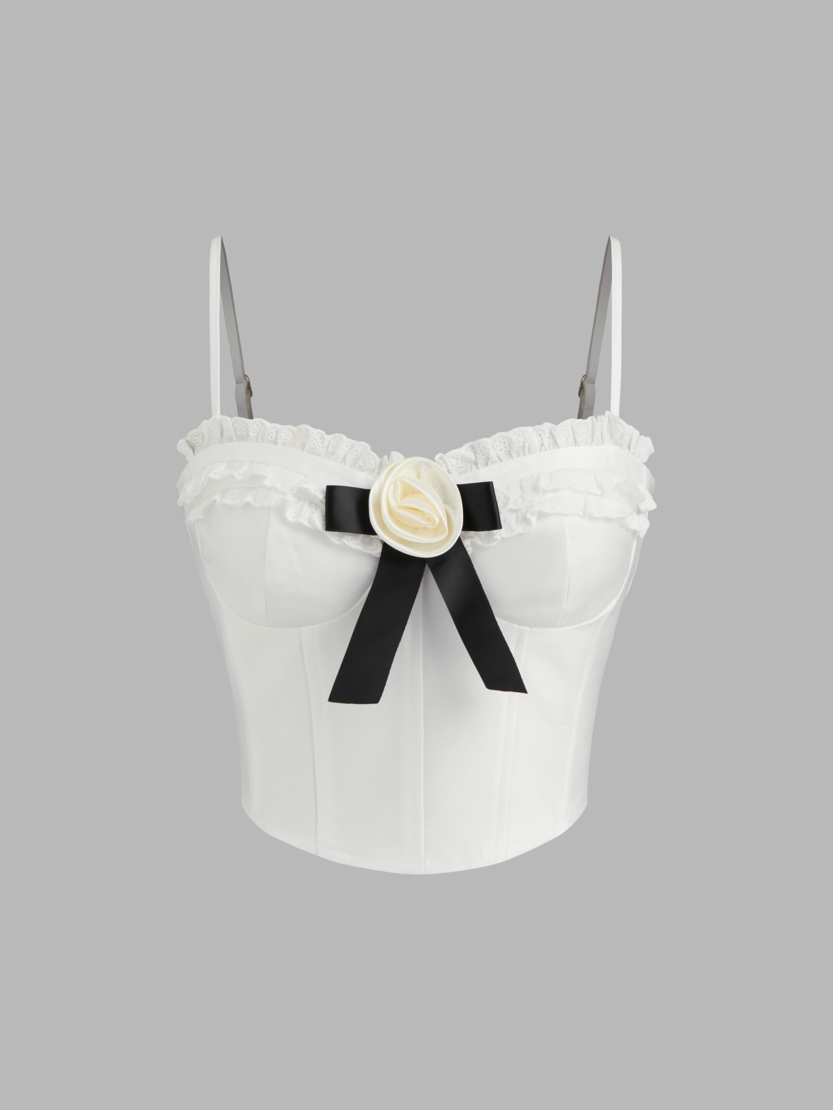 Top Cami a cuore con fiocco e cerniera con bordo in lattuga