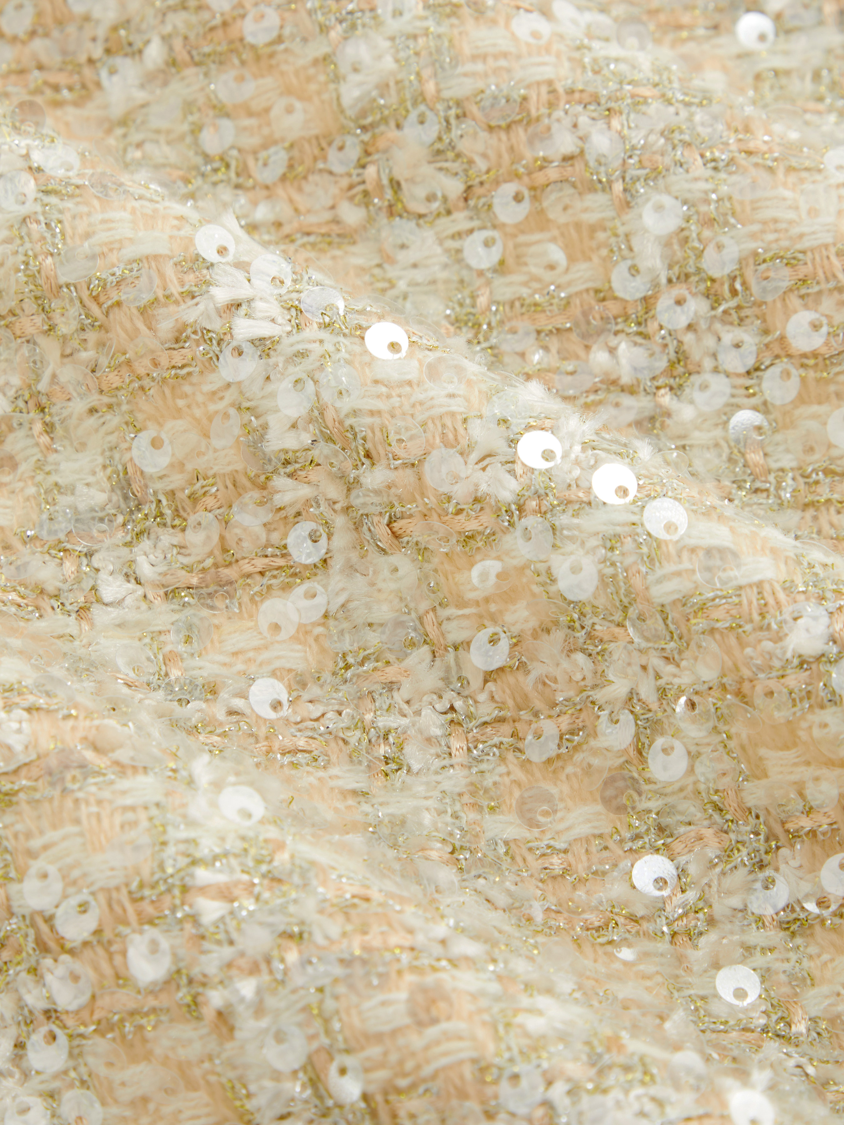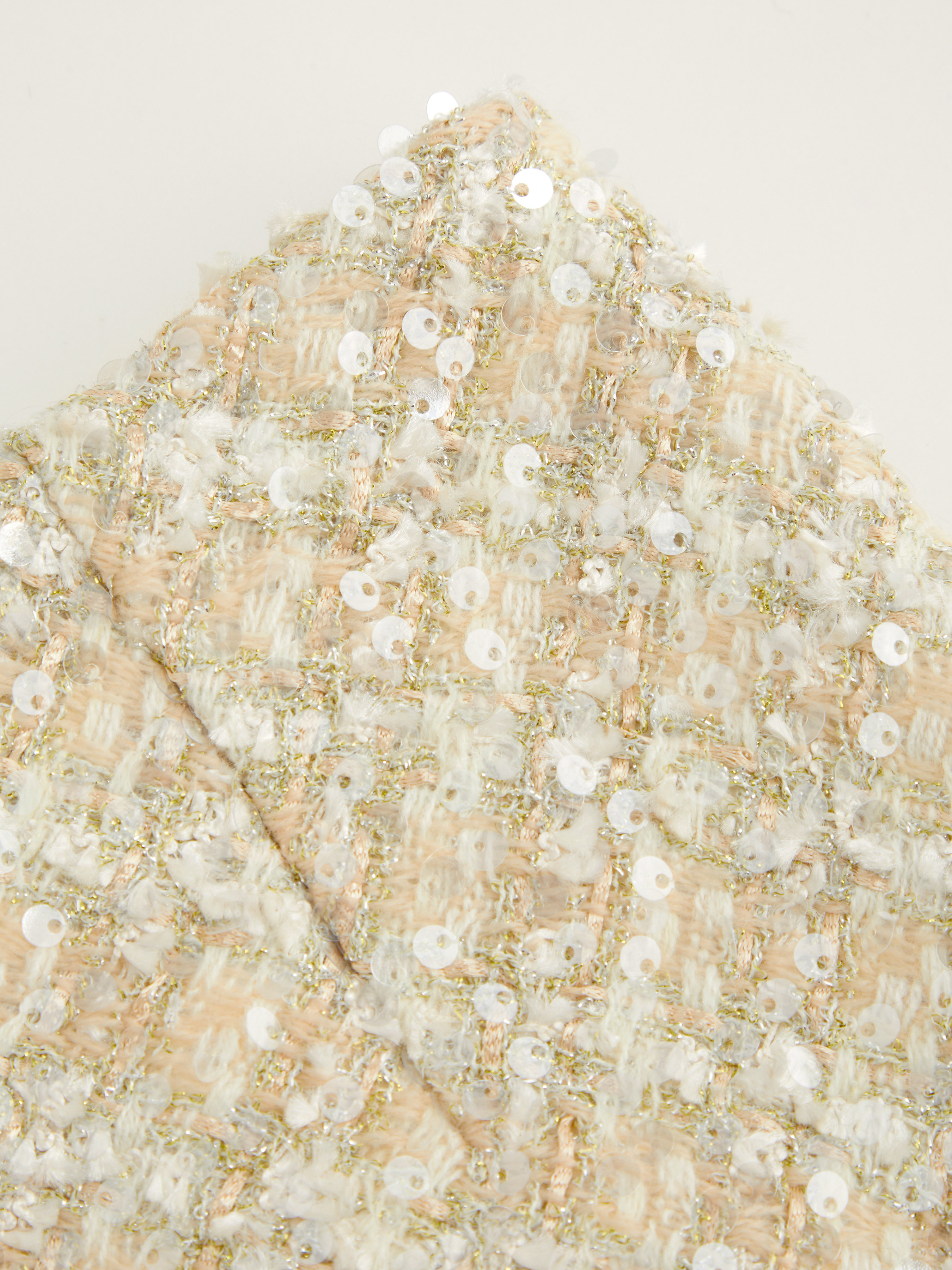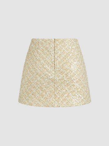 Minigonna tweed con paillettes a vita alta e tinta unita