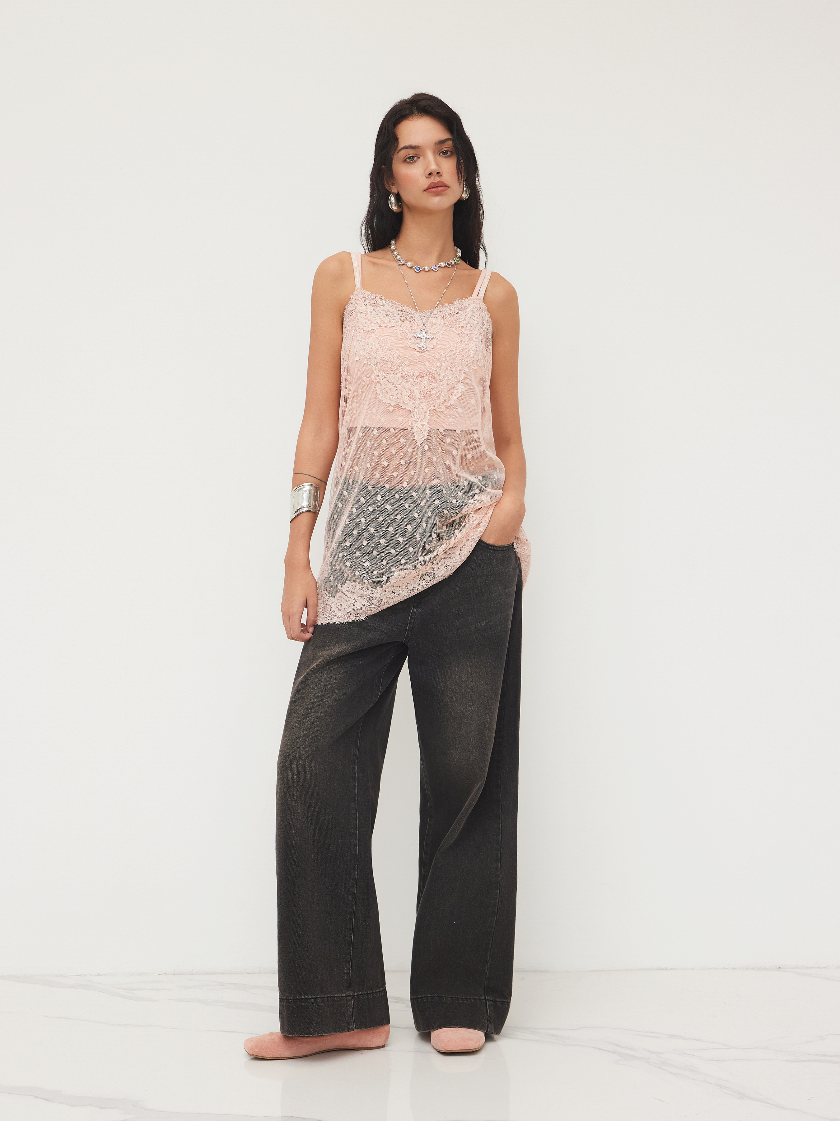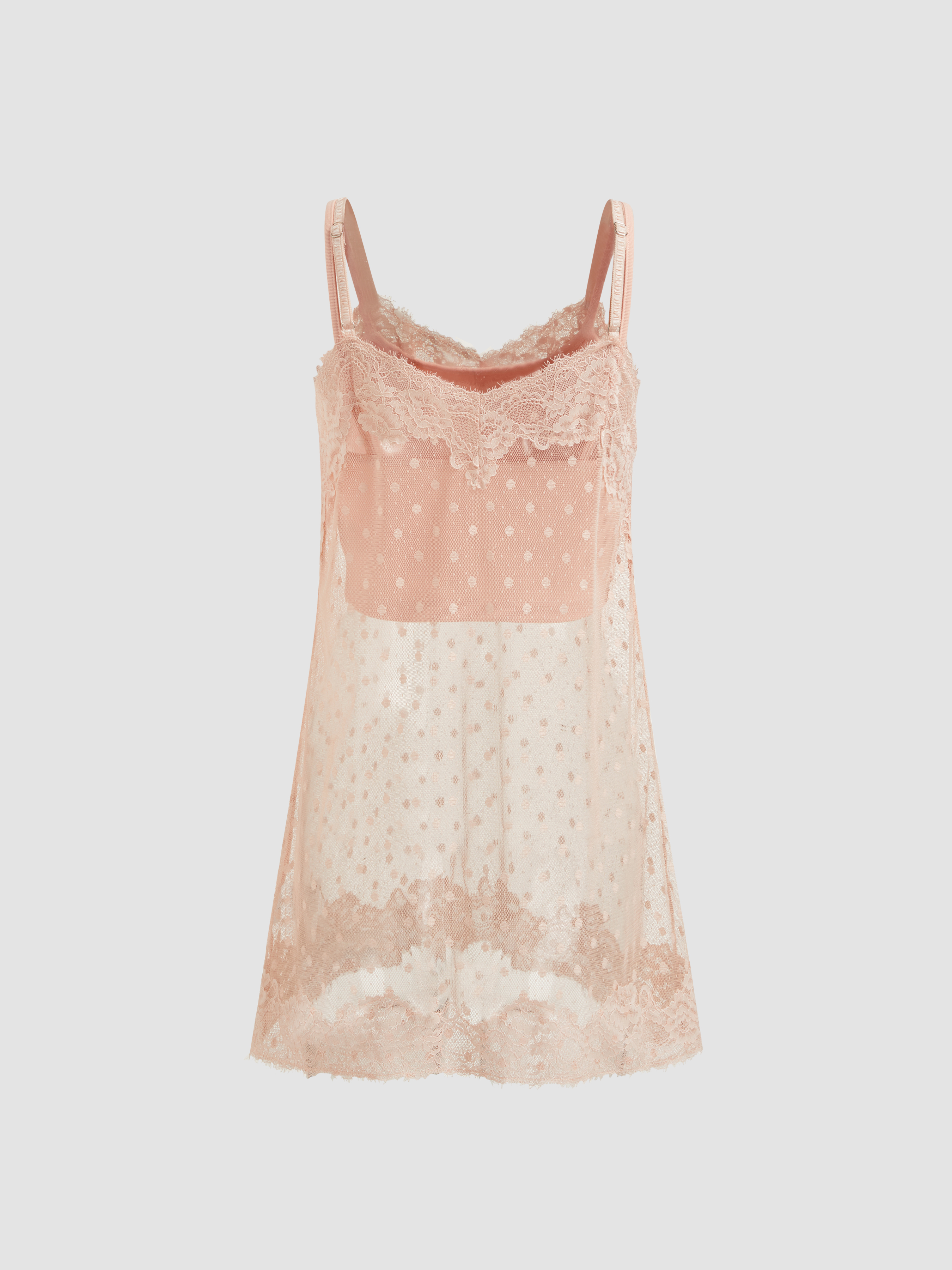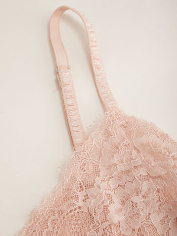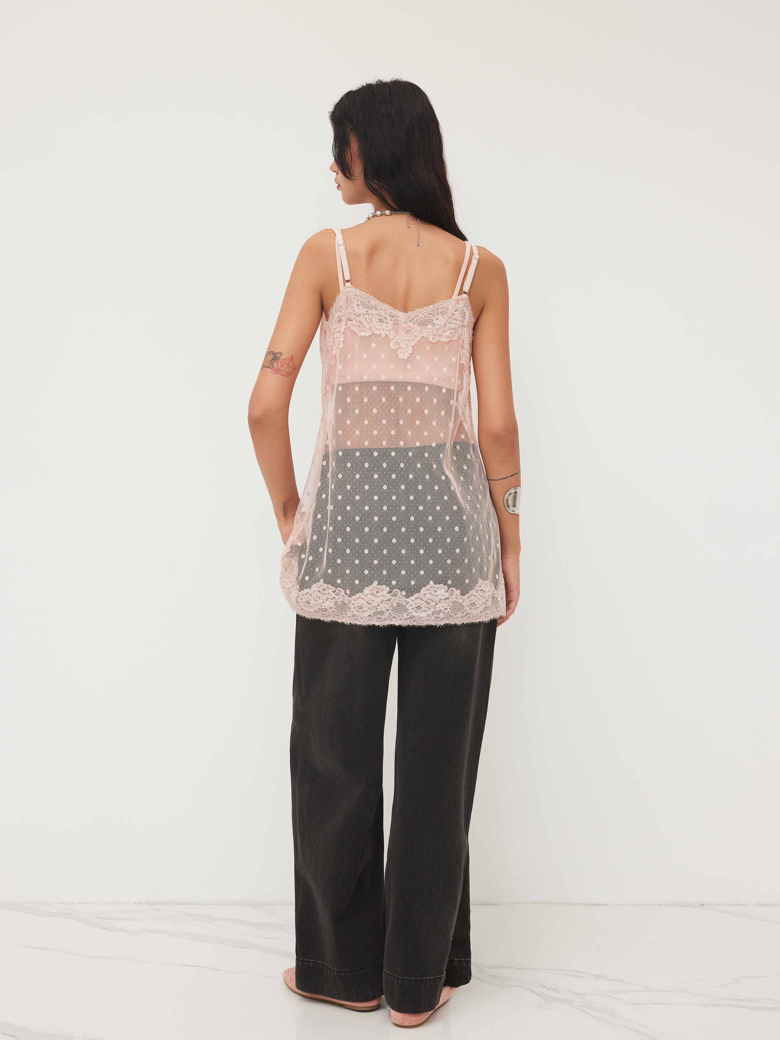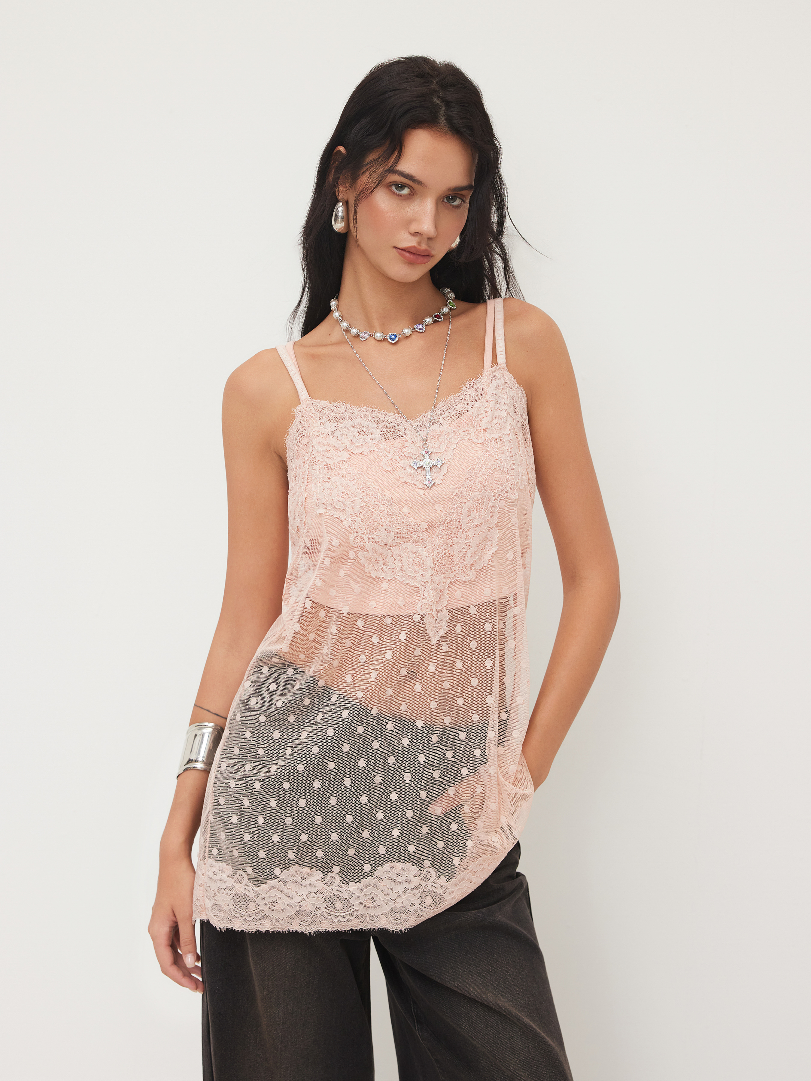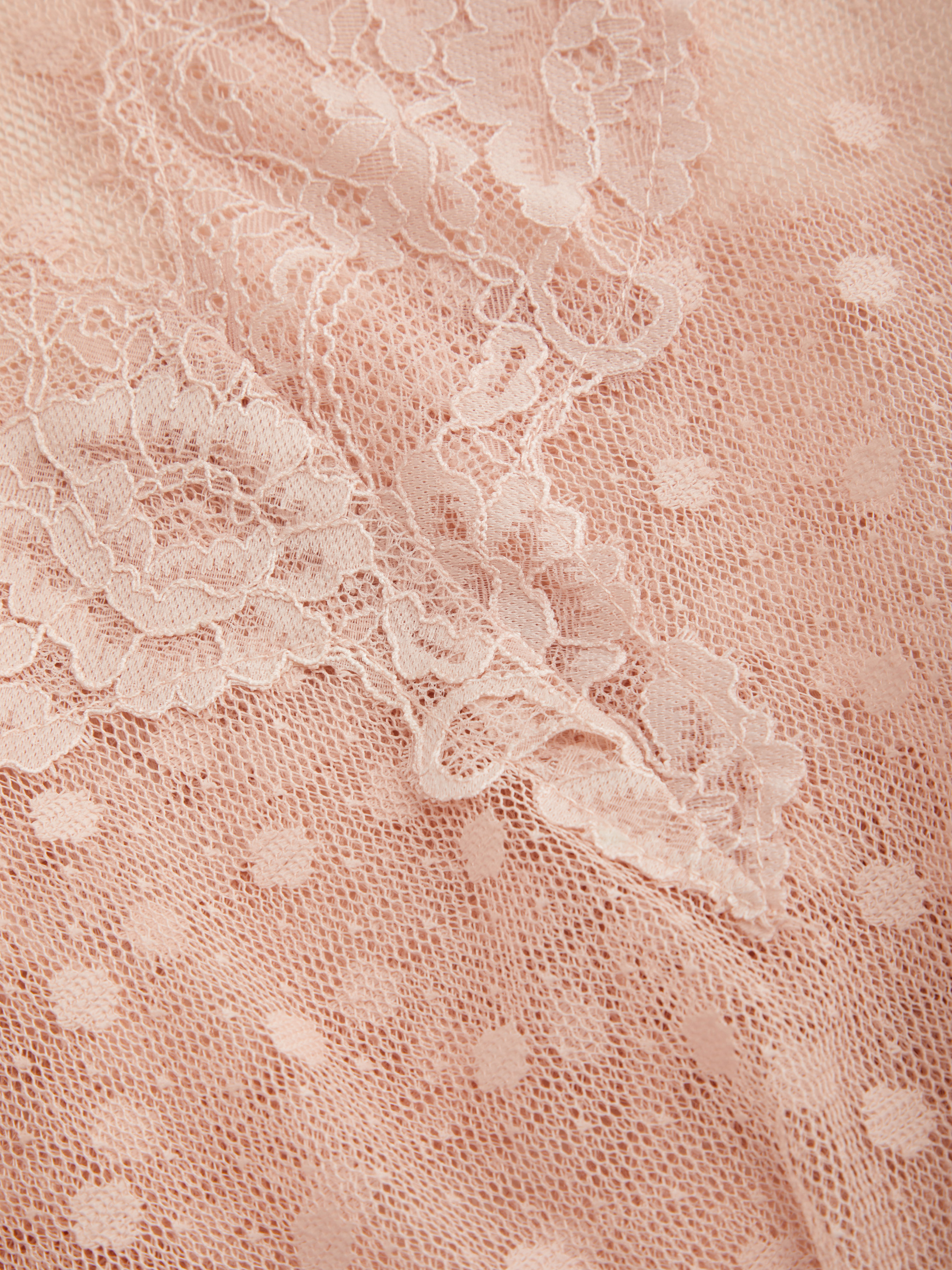 Set di due pezzi con top in pizzo con scollo a V in rete e top corto a tinta unita con spalline