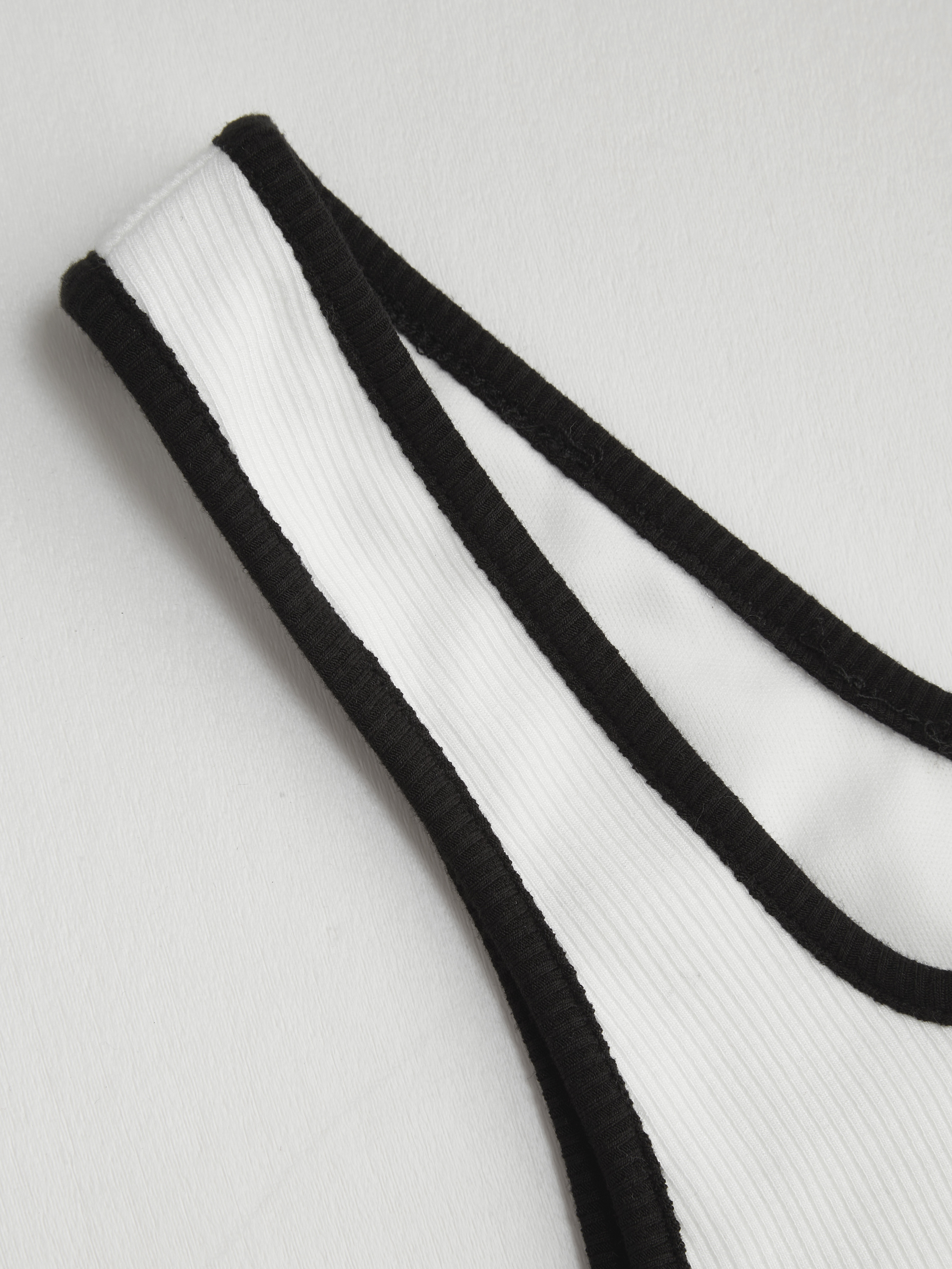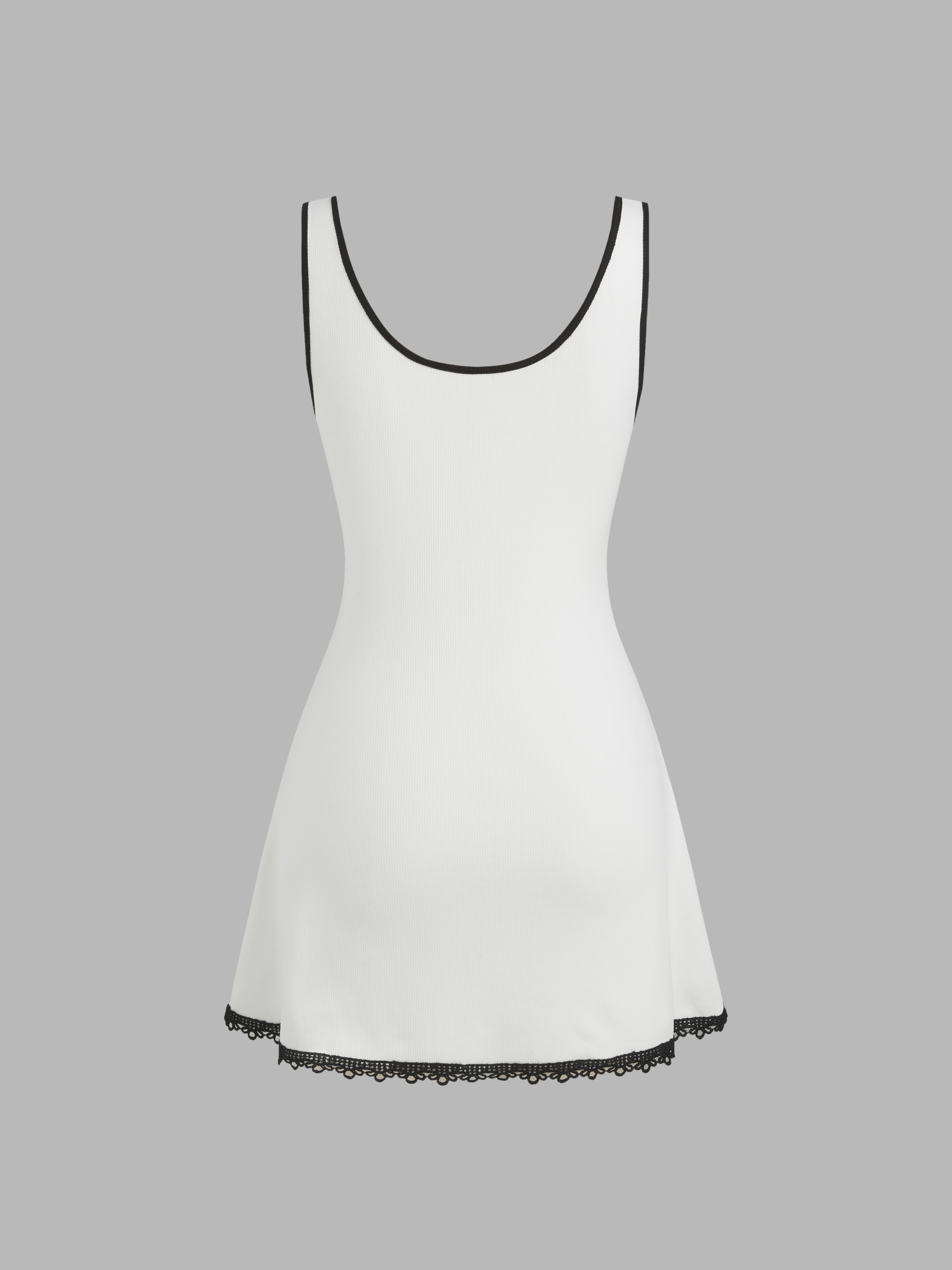 Mini abito con scollo a U, fiocco e bordi a contrasto