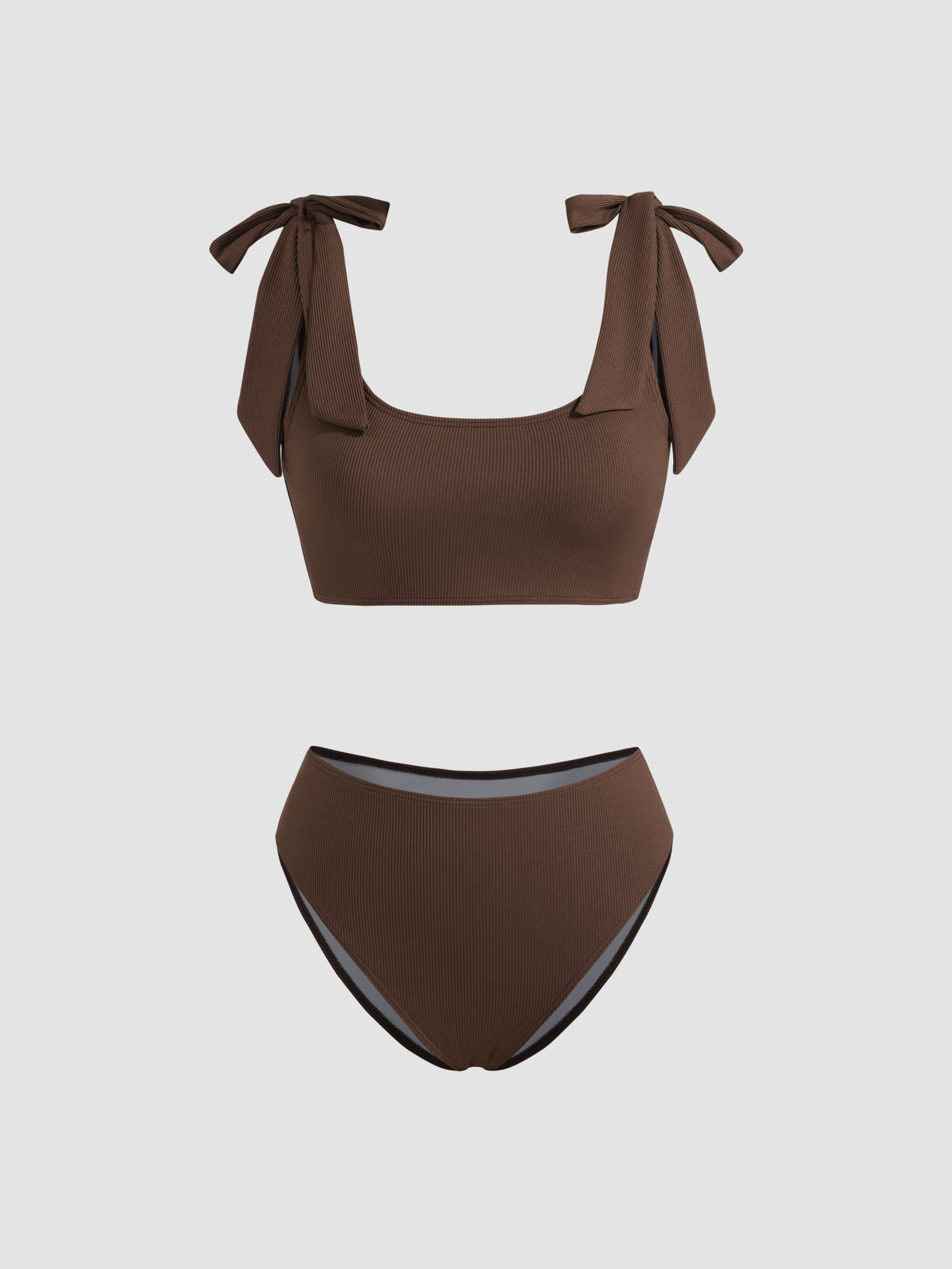 Set bikini sfacciato con scollo a U e nodo a fiocco