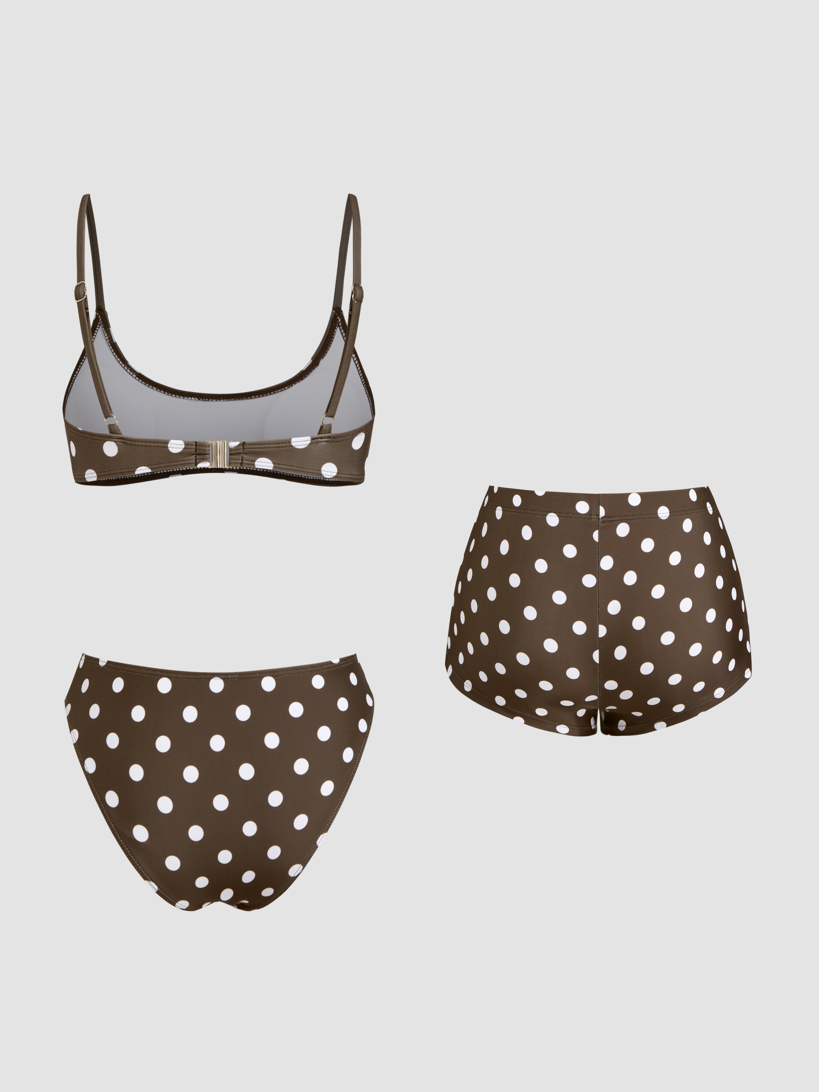 Set Bikini Sfacciato con Bracciale a Pois e Scollo a U con Shorts Coprenti