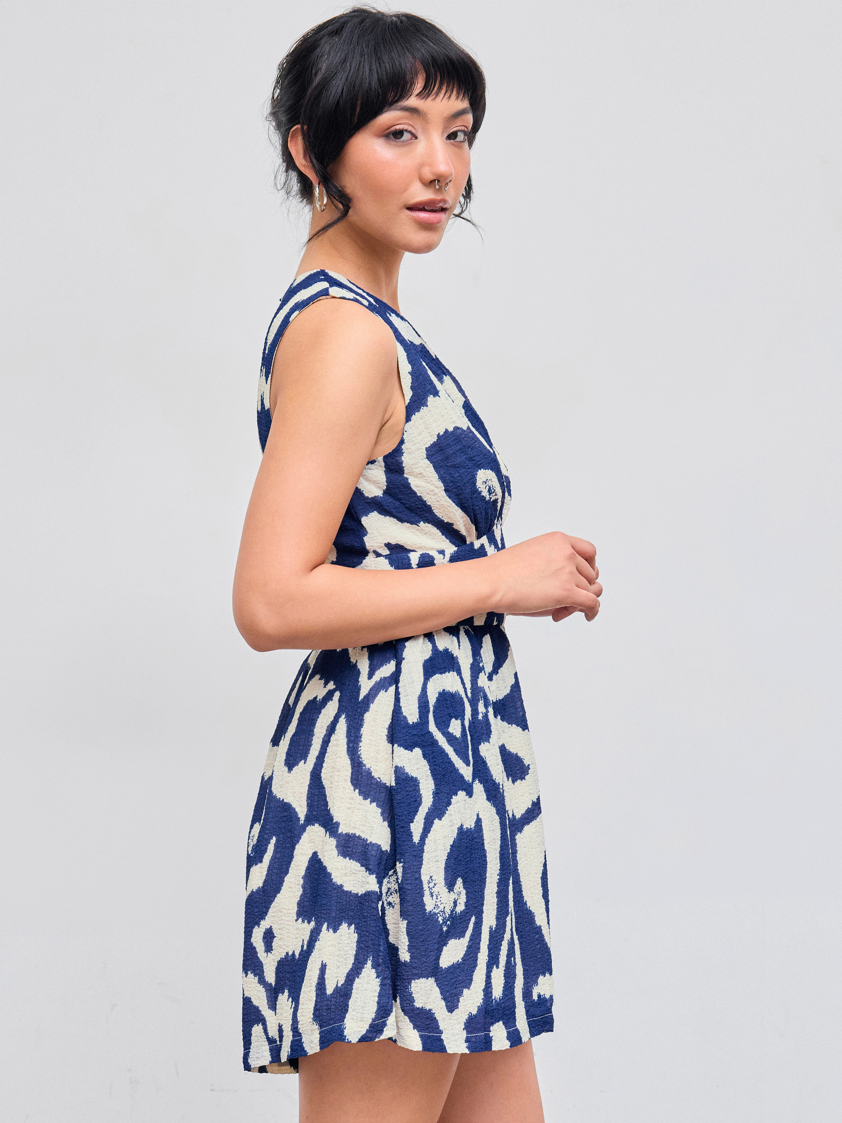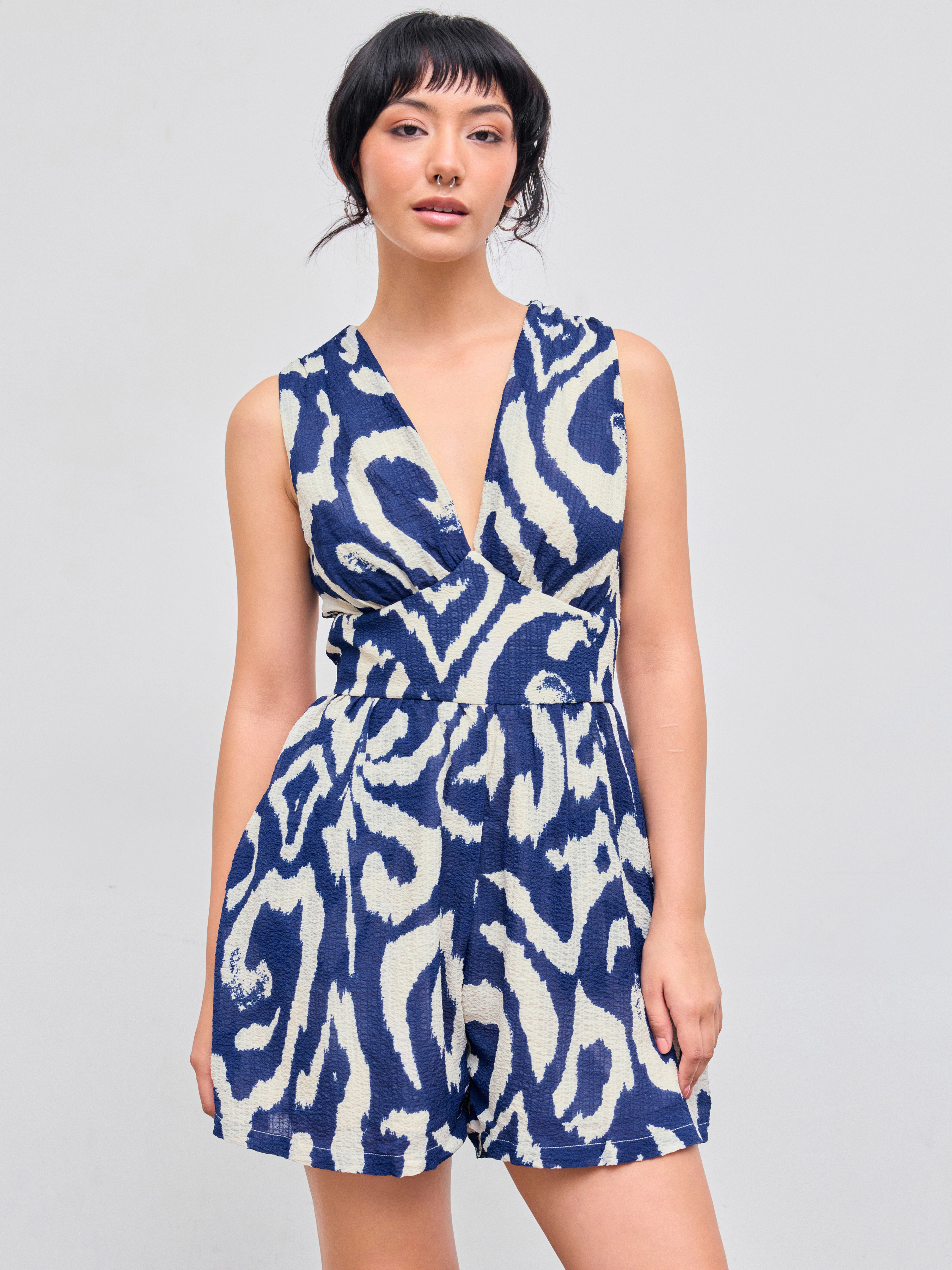 Romper con scollo a V e cerniera con tasca astratta
