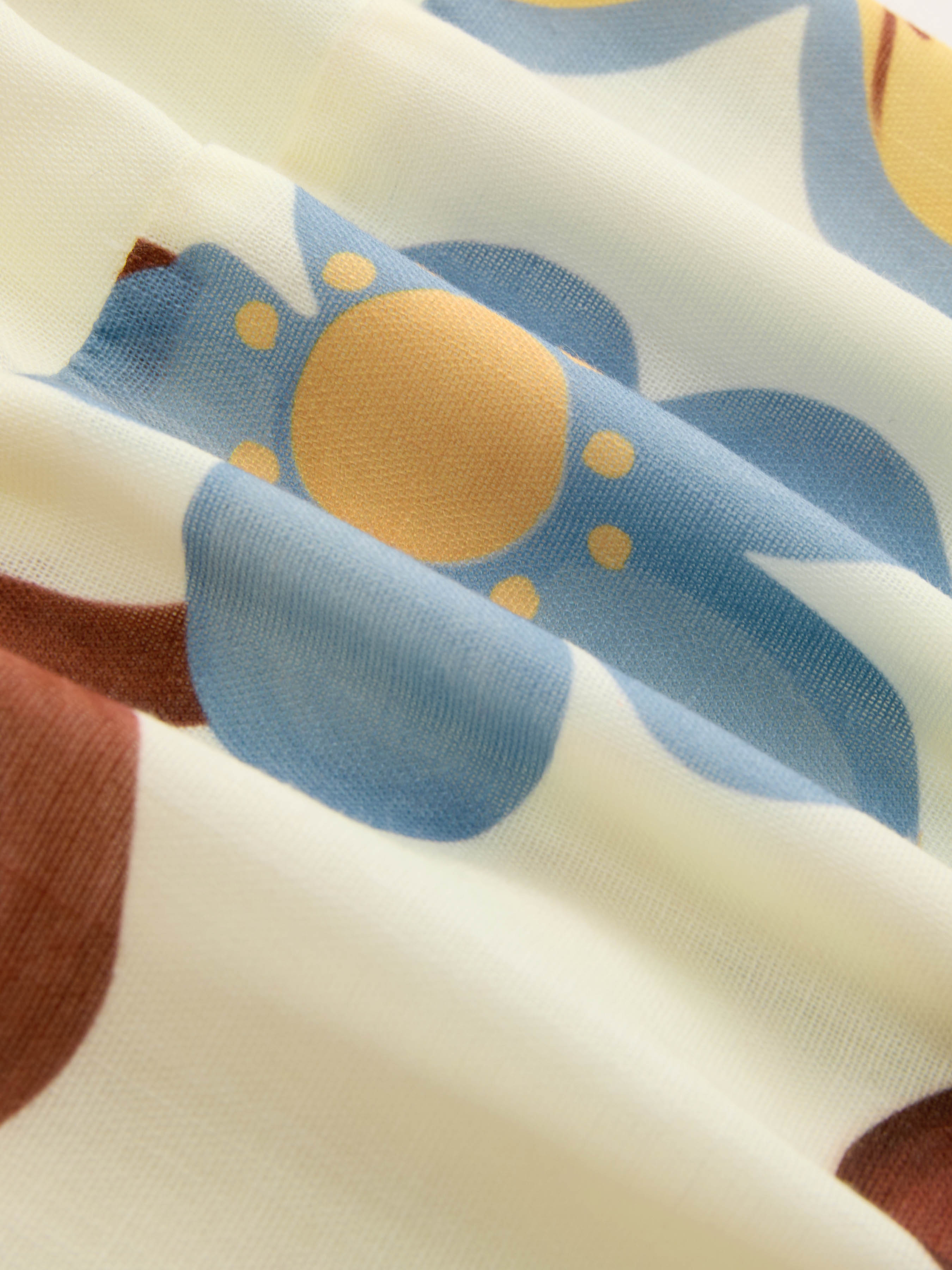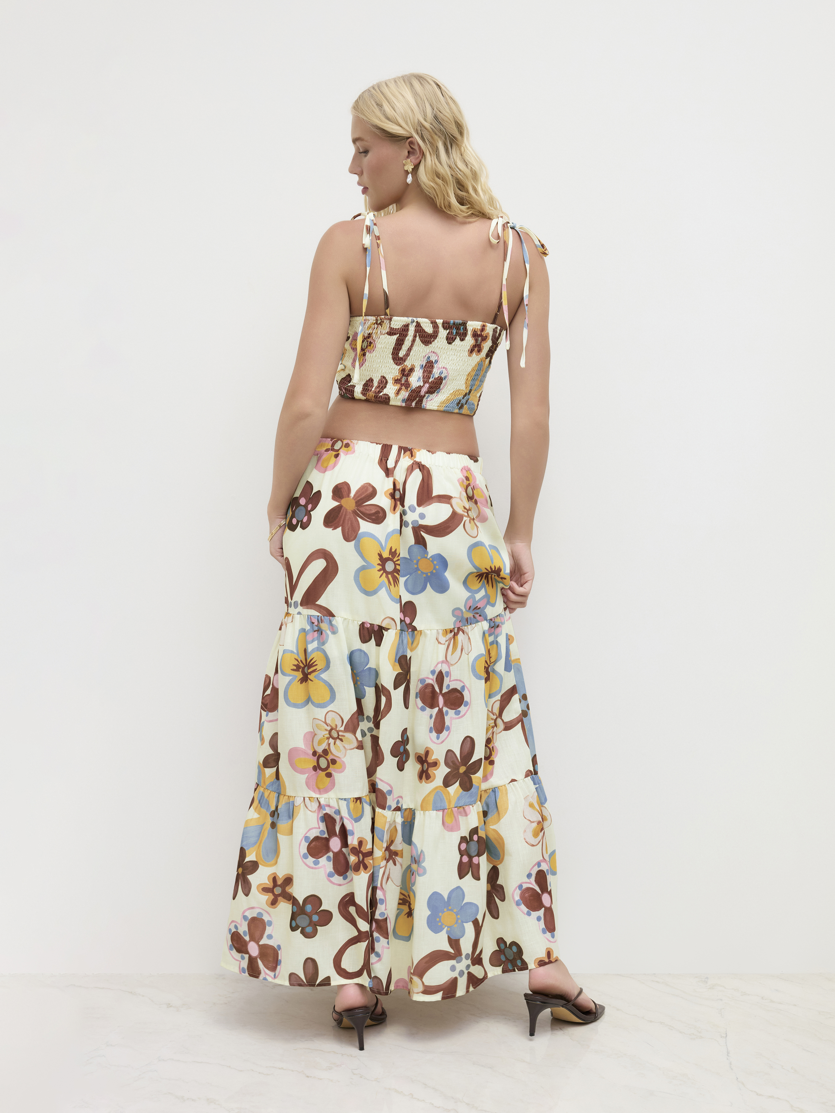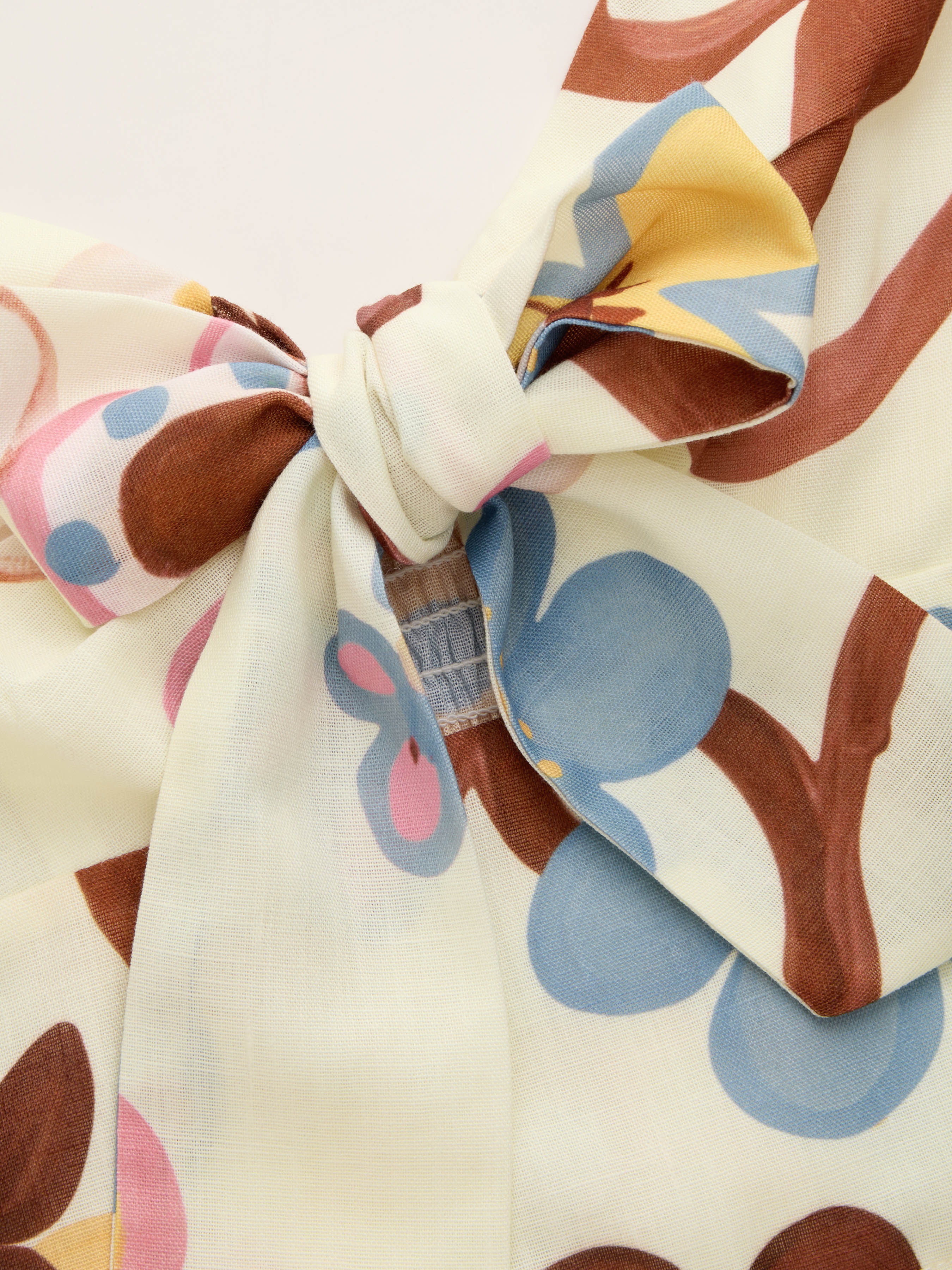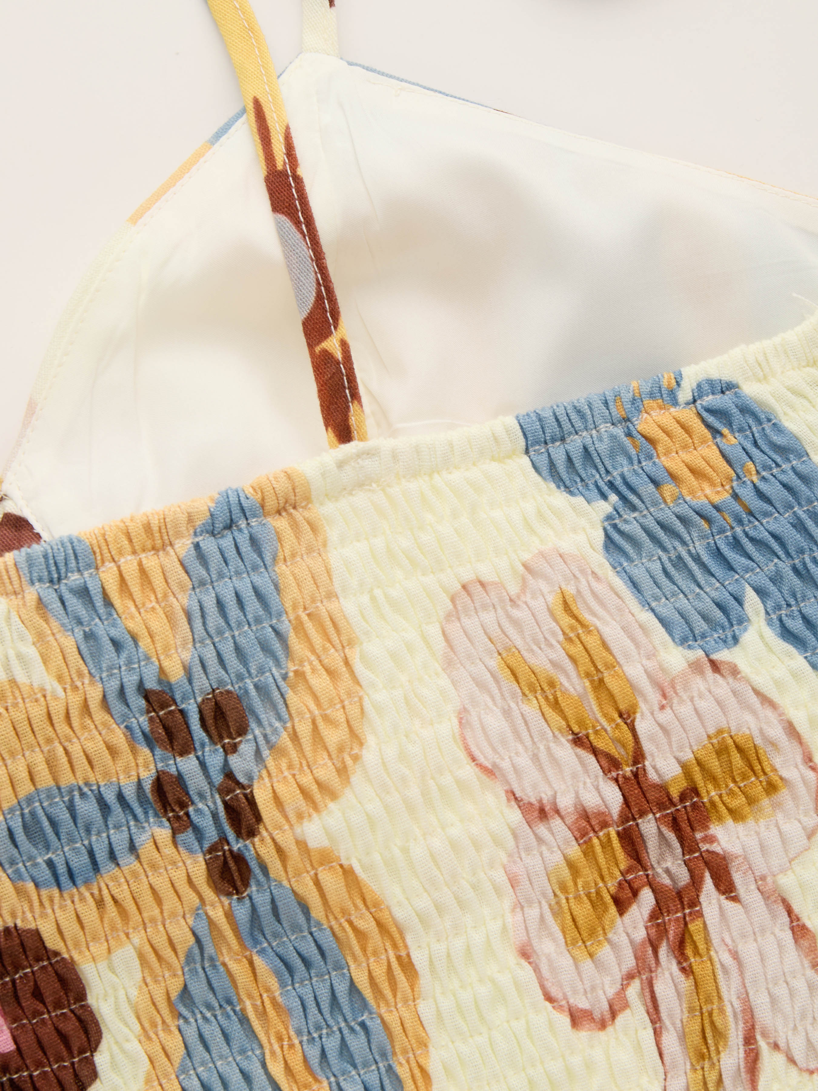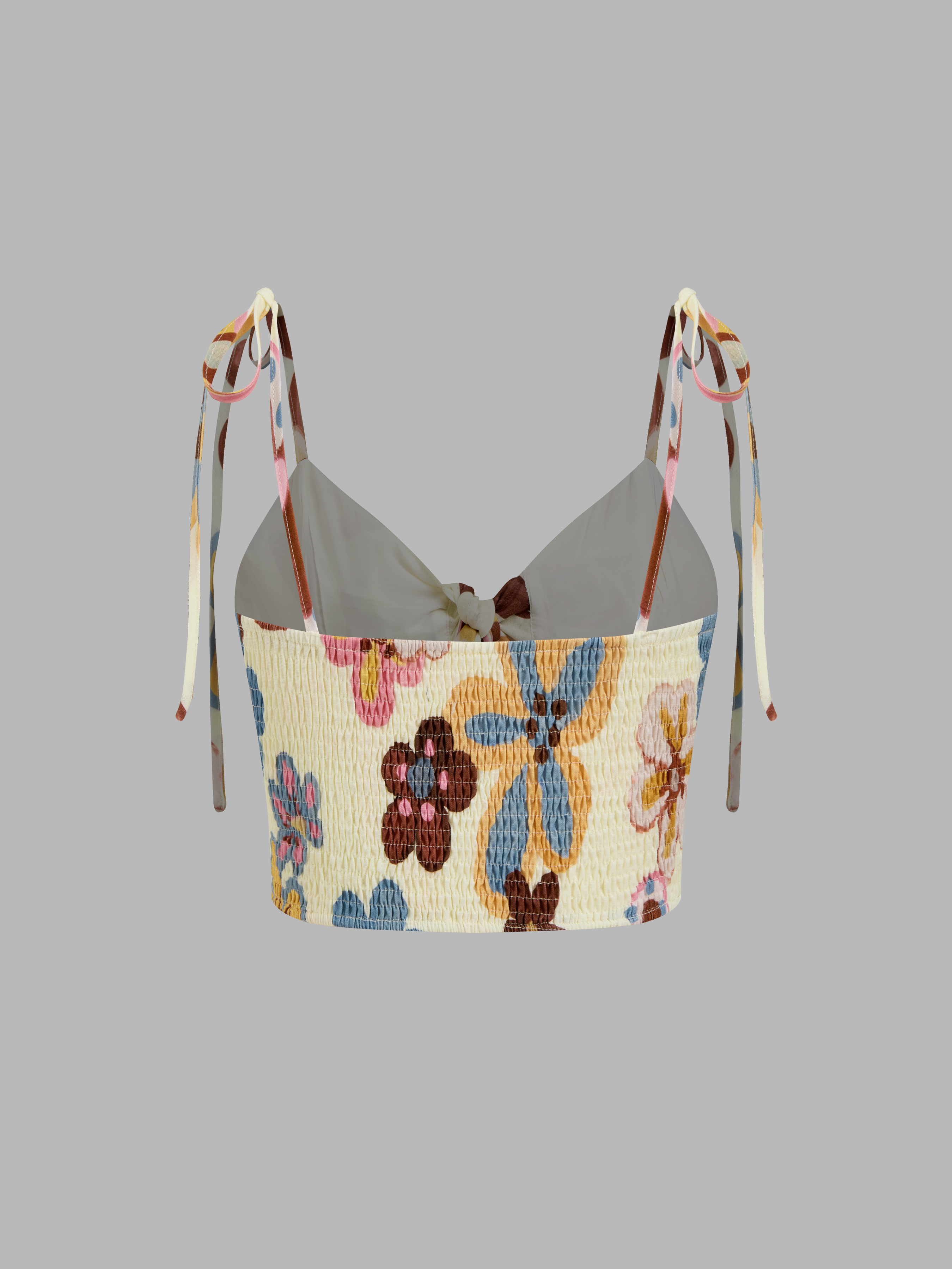 Top Cami Corto con Scollo a V, Volant con Fiocco e Stampa Floreale