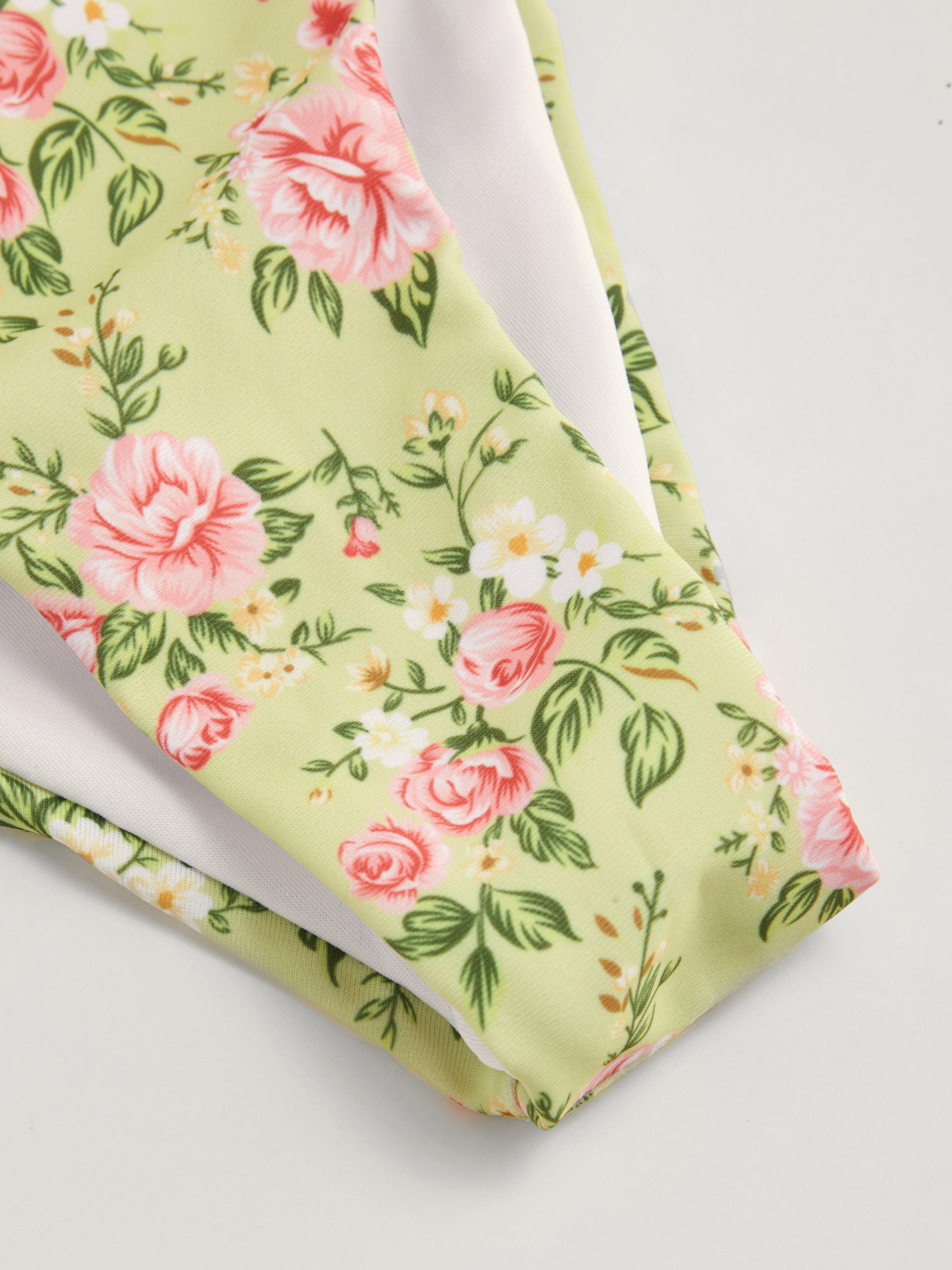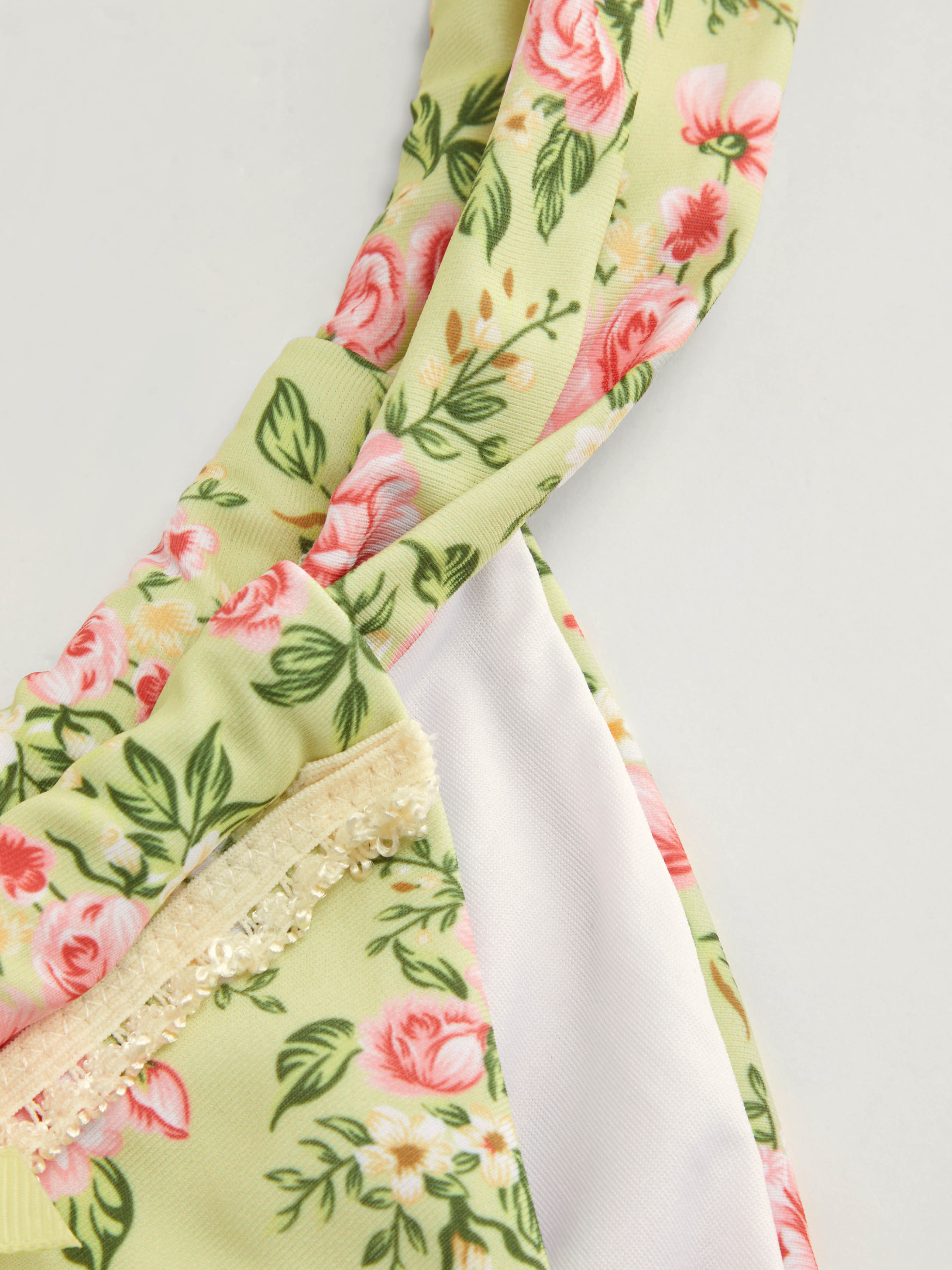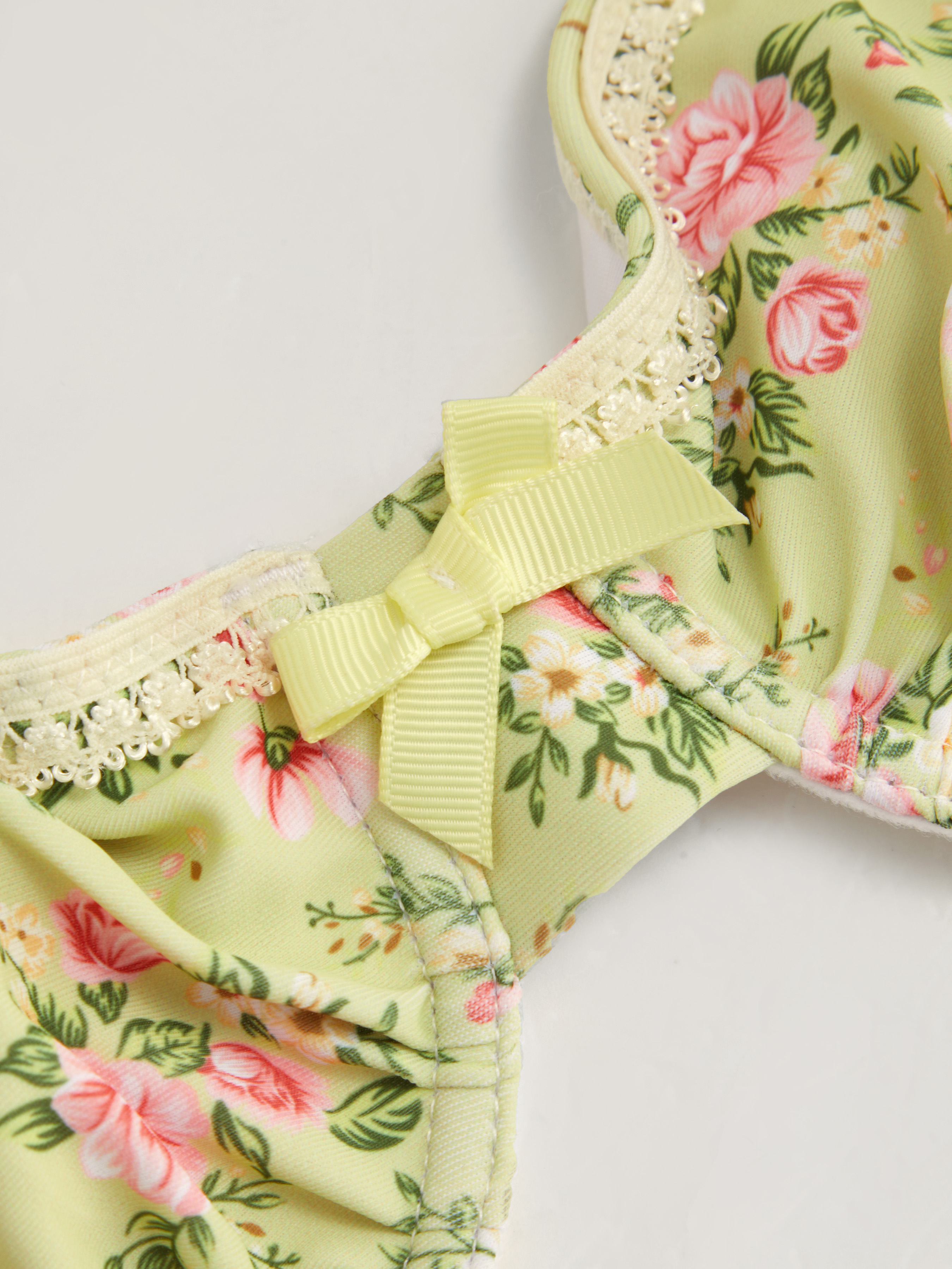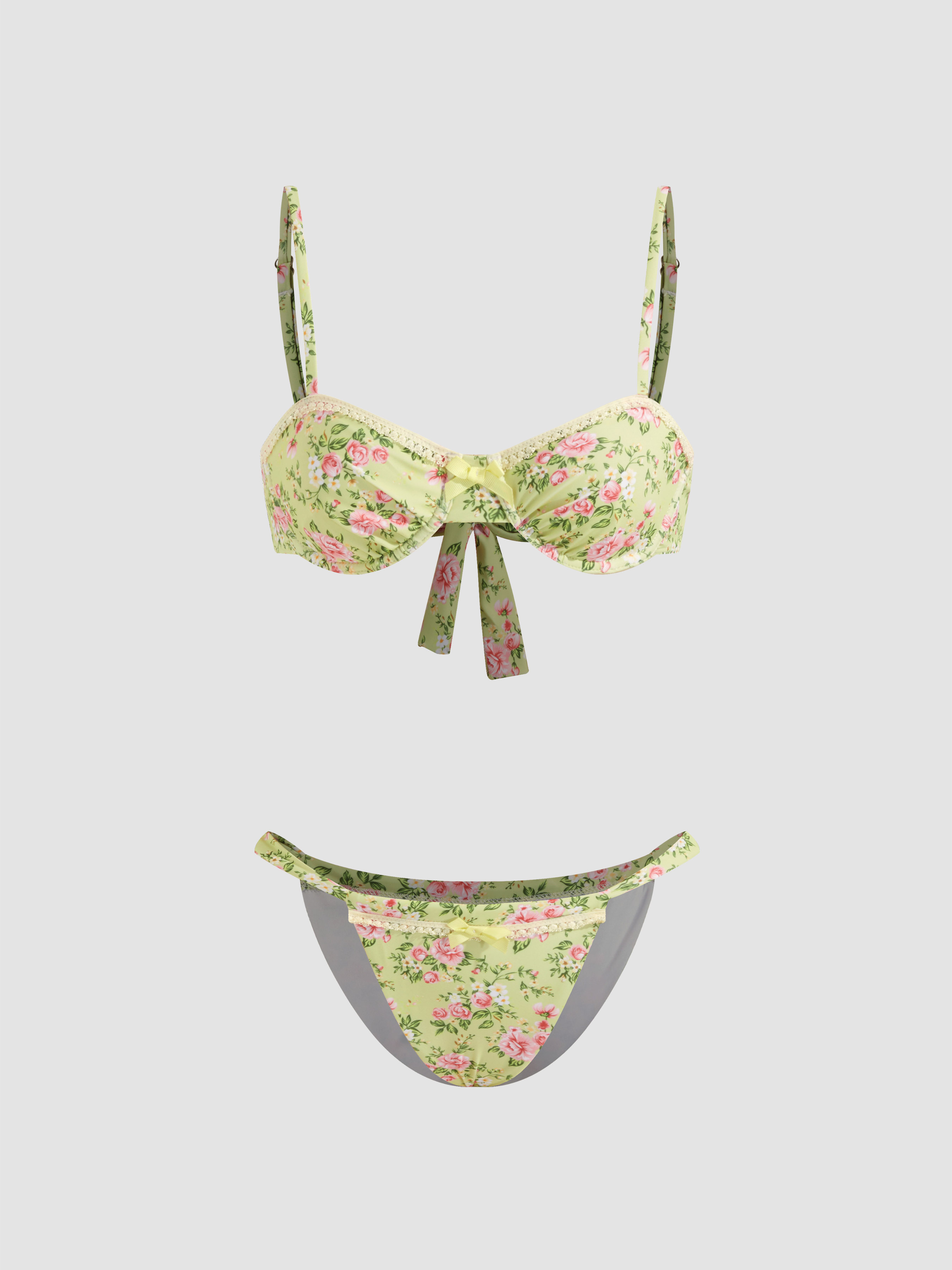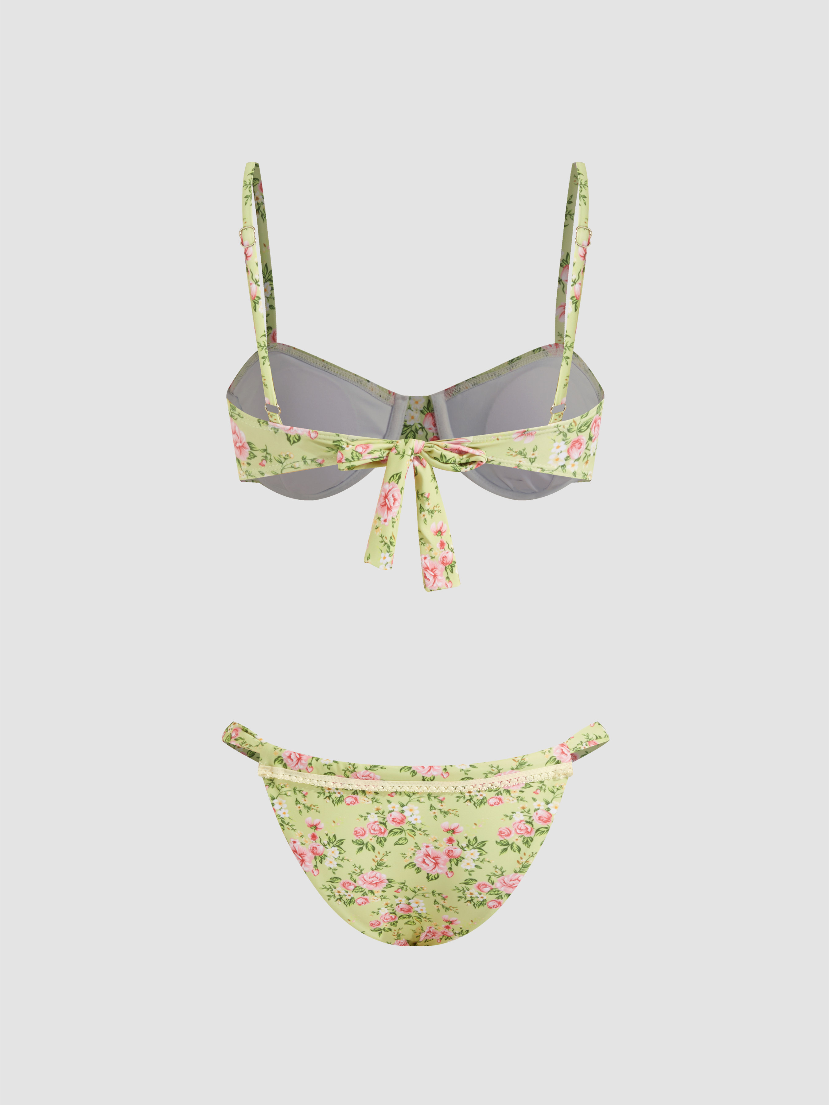 Bikini set con ferretto, fiocco floreale e scollo a V