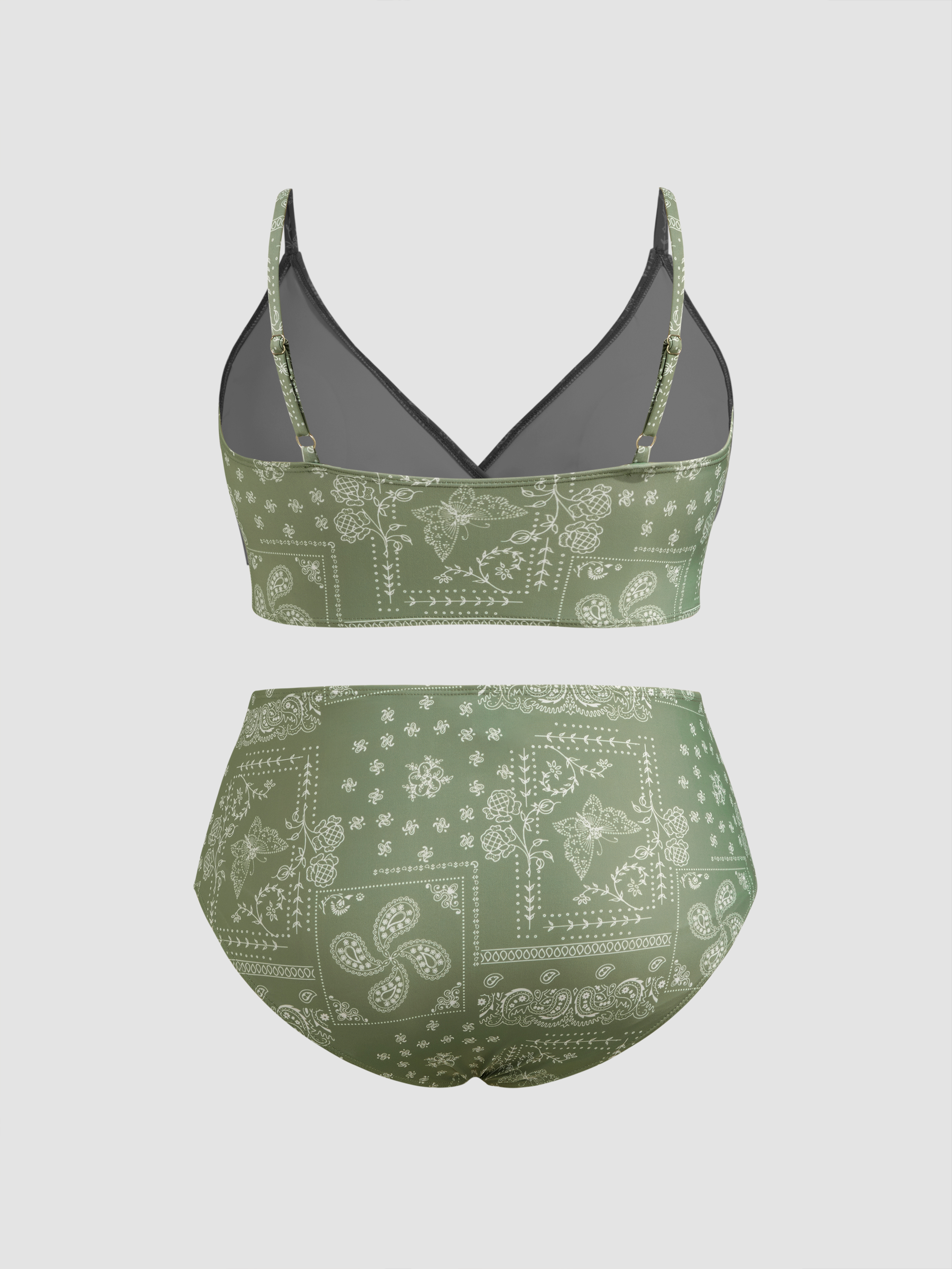 Costume da bagno bikini sfacciato con scollo a V e braccialetto floreale Curve & Plus
