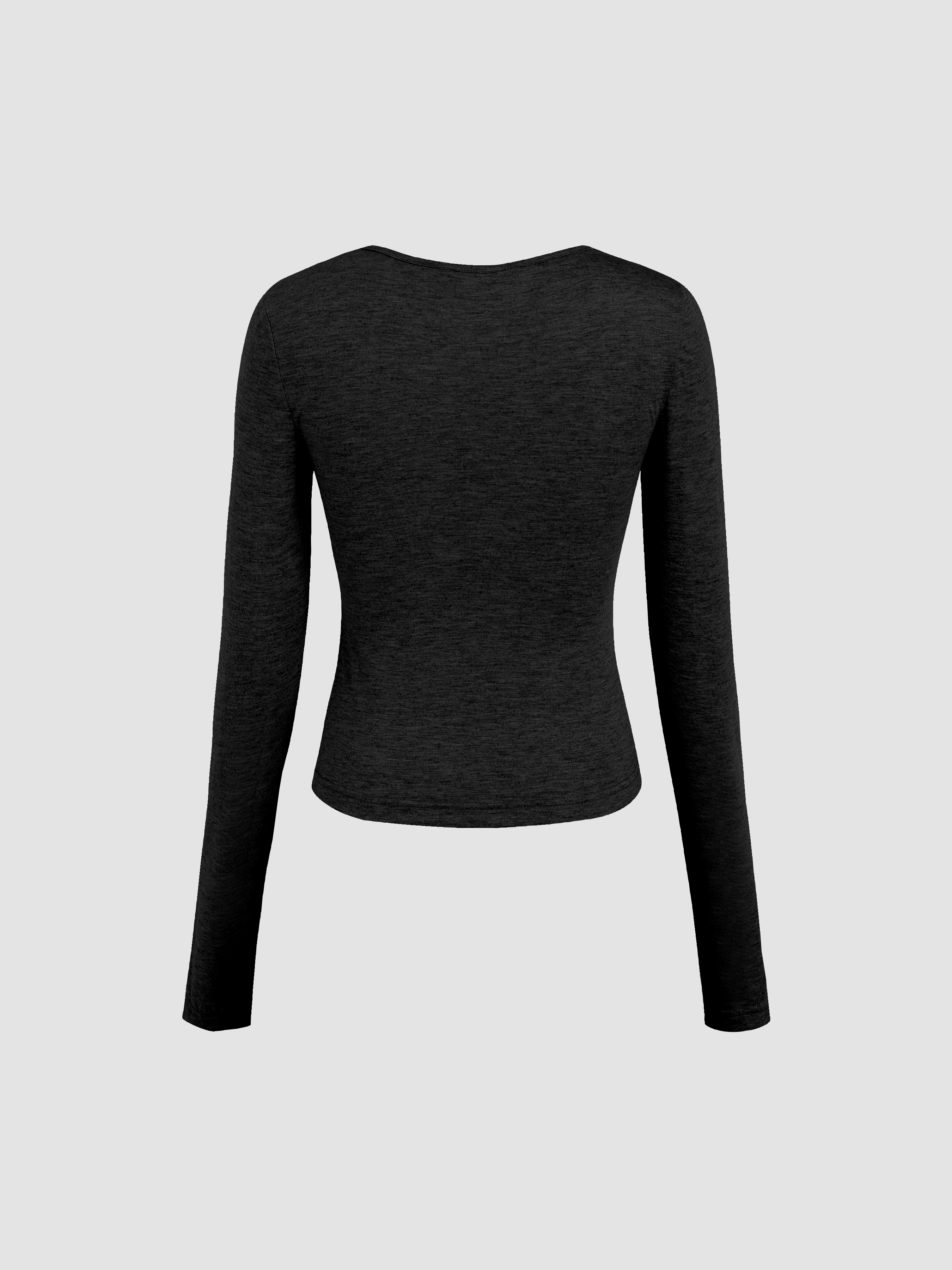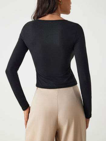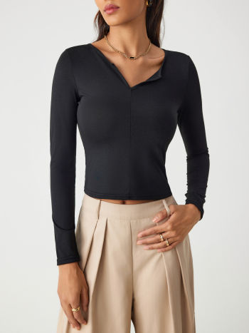 T-shirt a maniche lunghe tinta unita in jersey con scollo a V