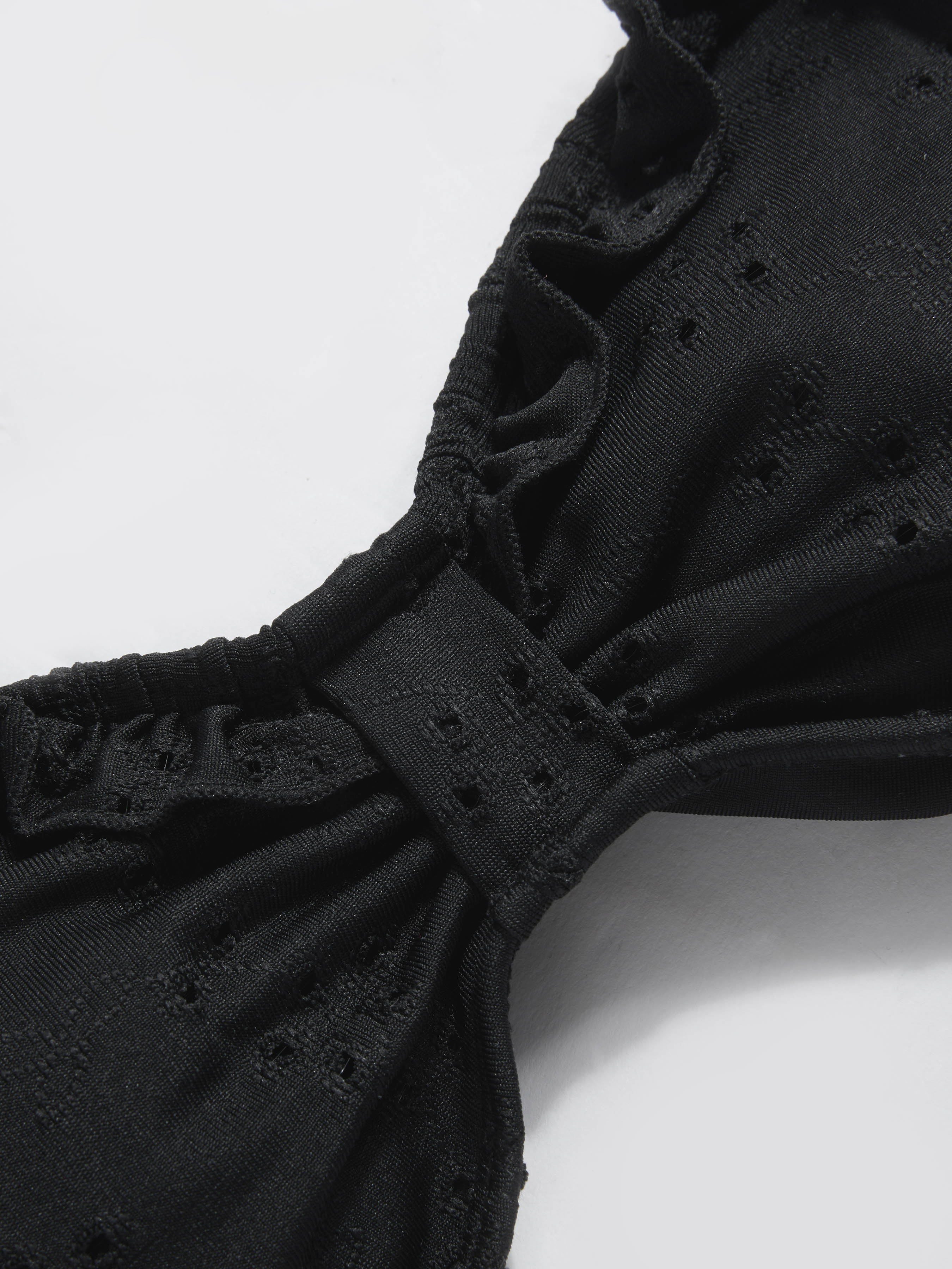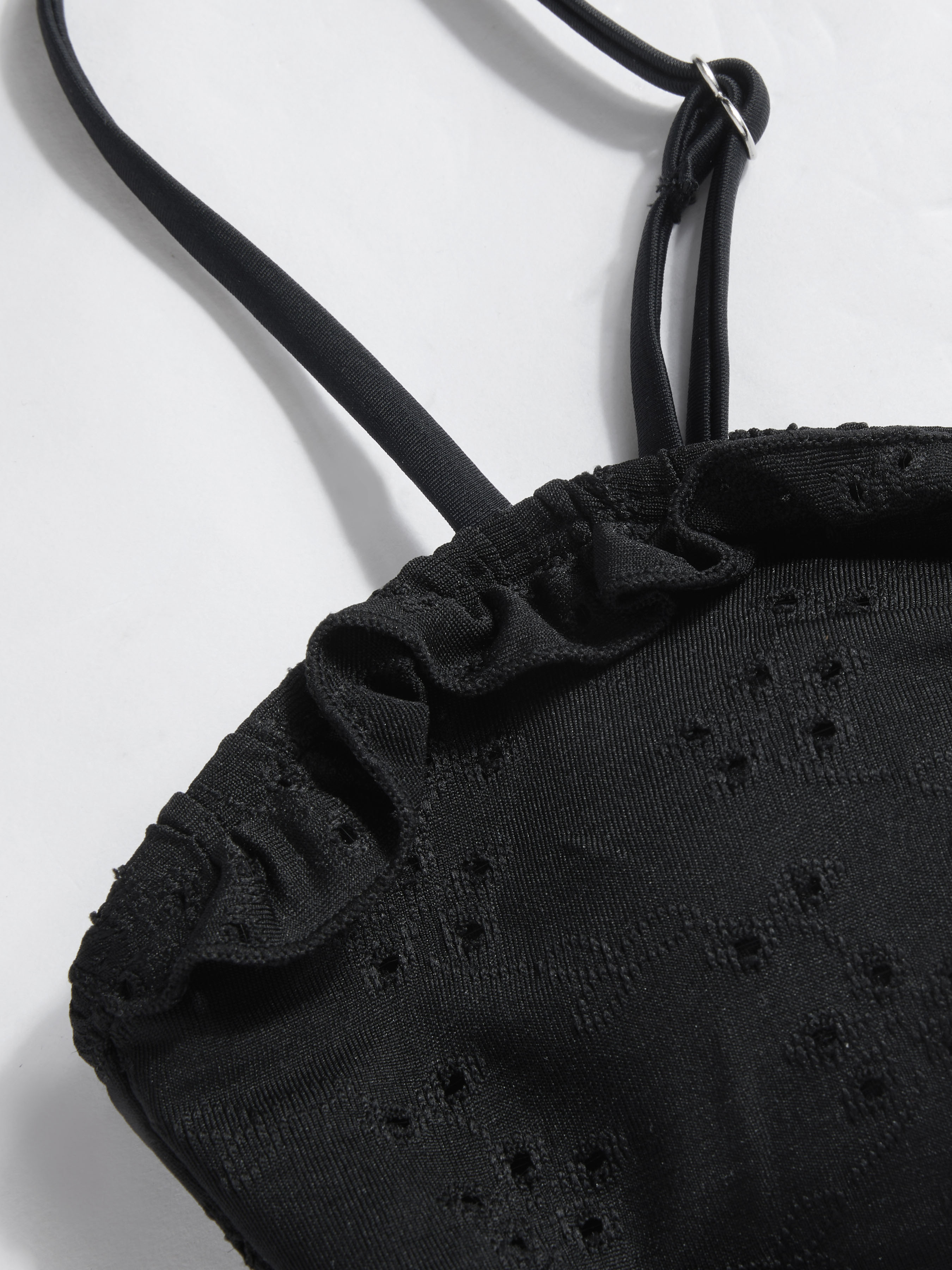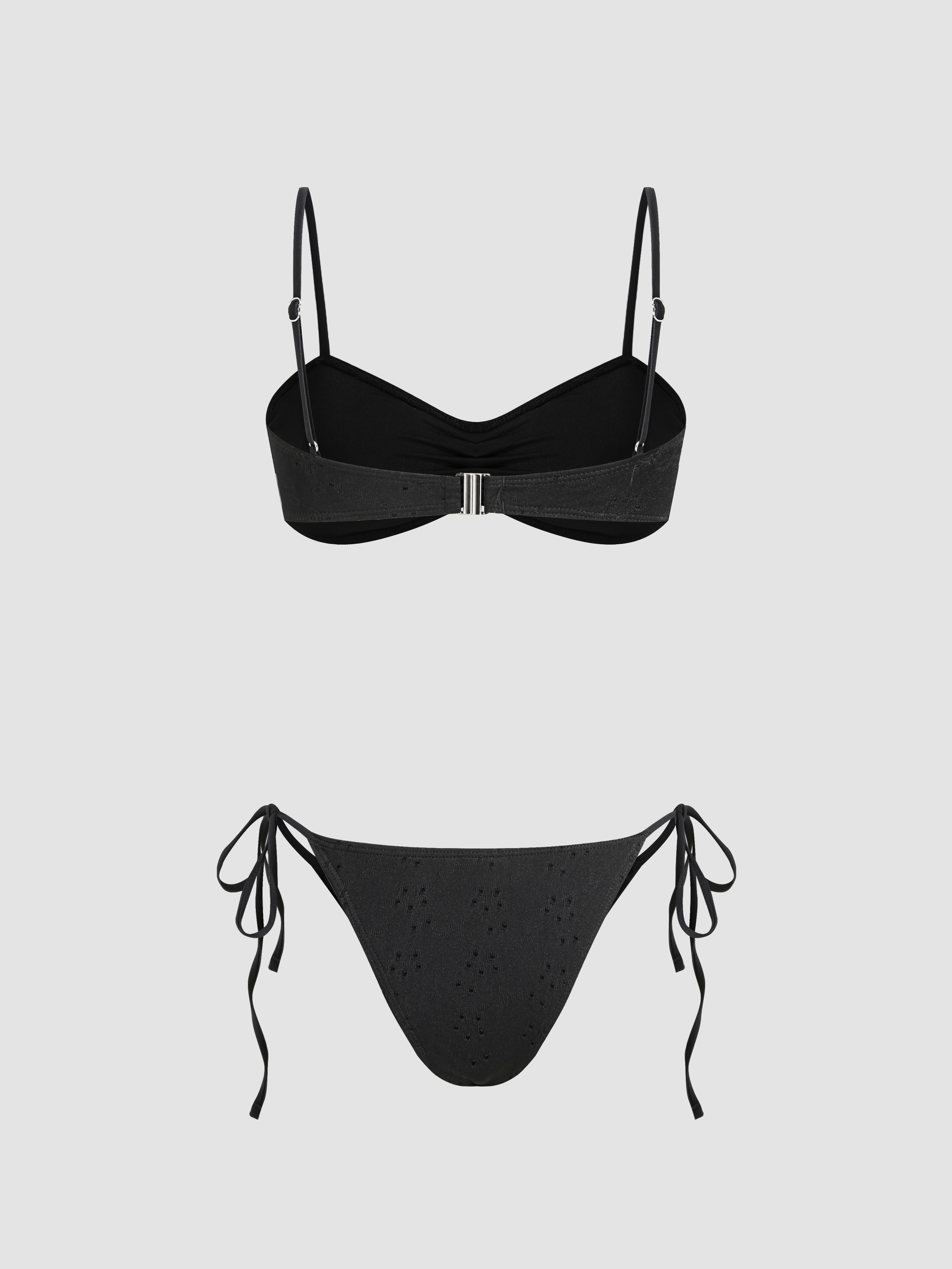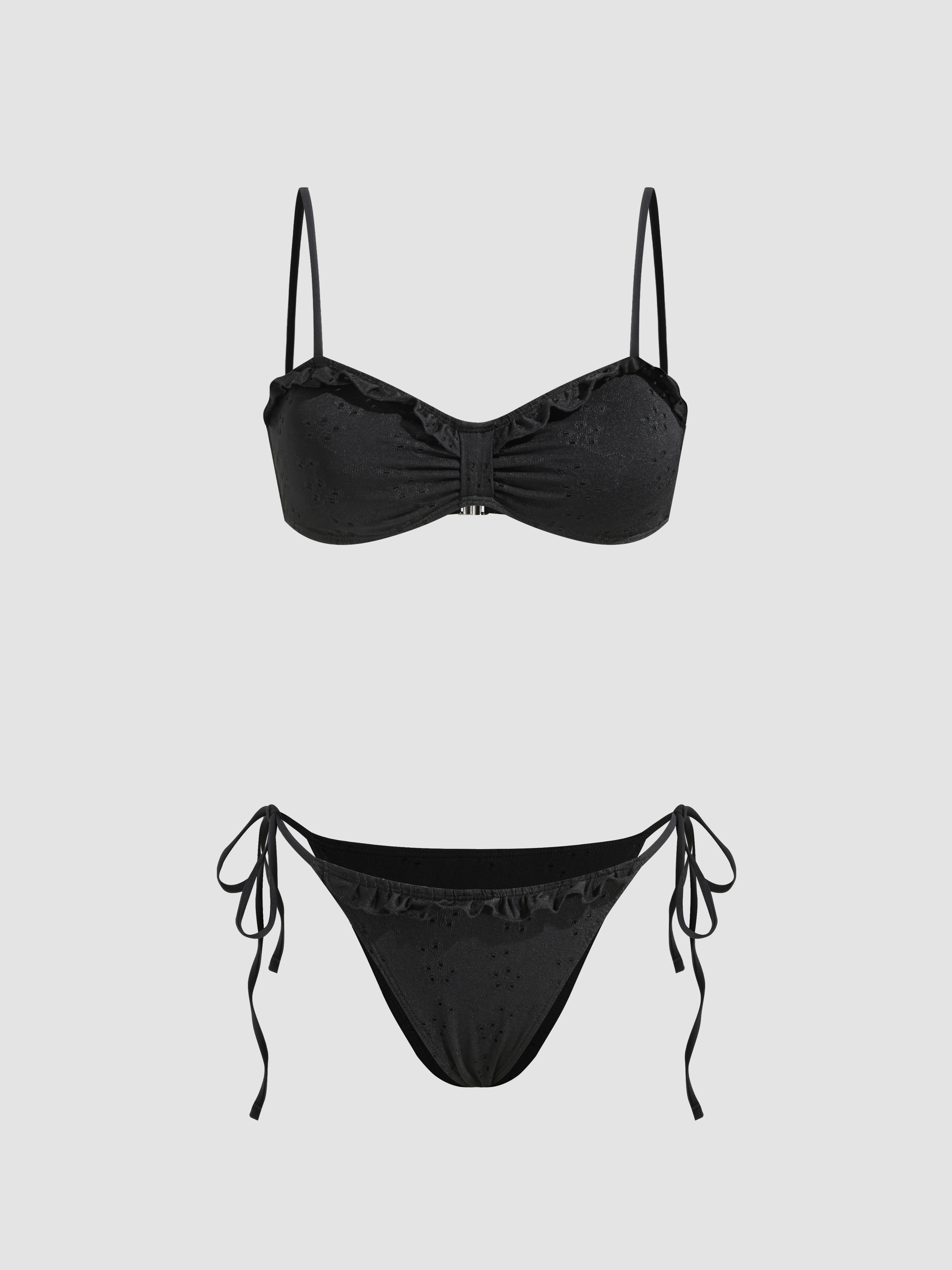 Bikini set con scollo a V, cinturino con ricamo a lattuga e lacci laterali