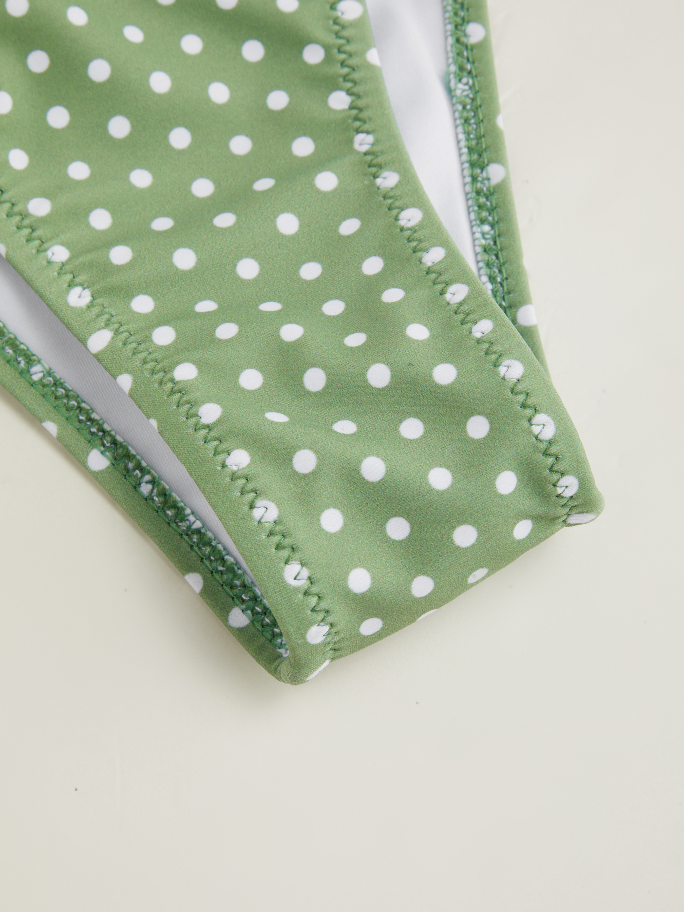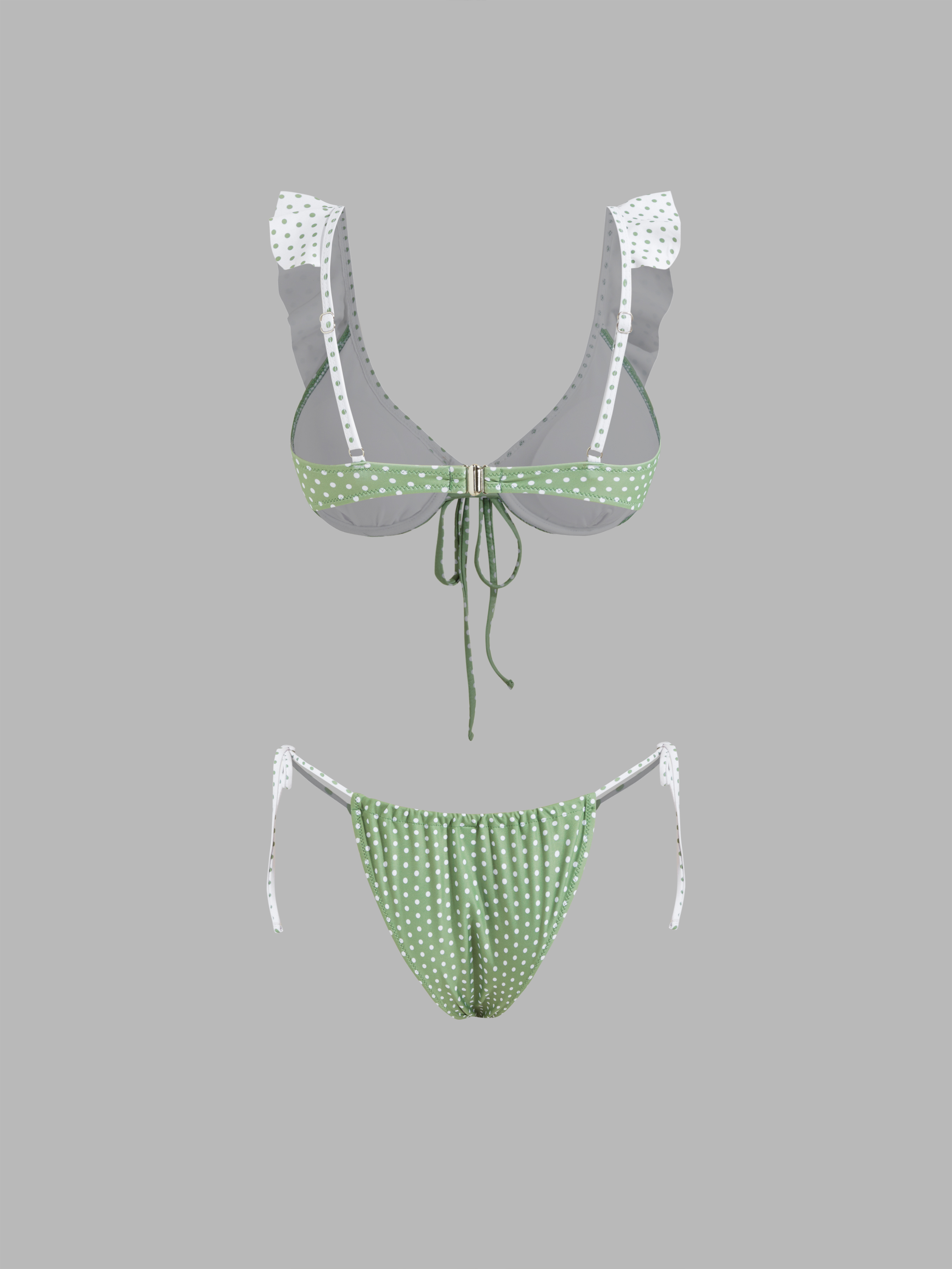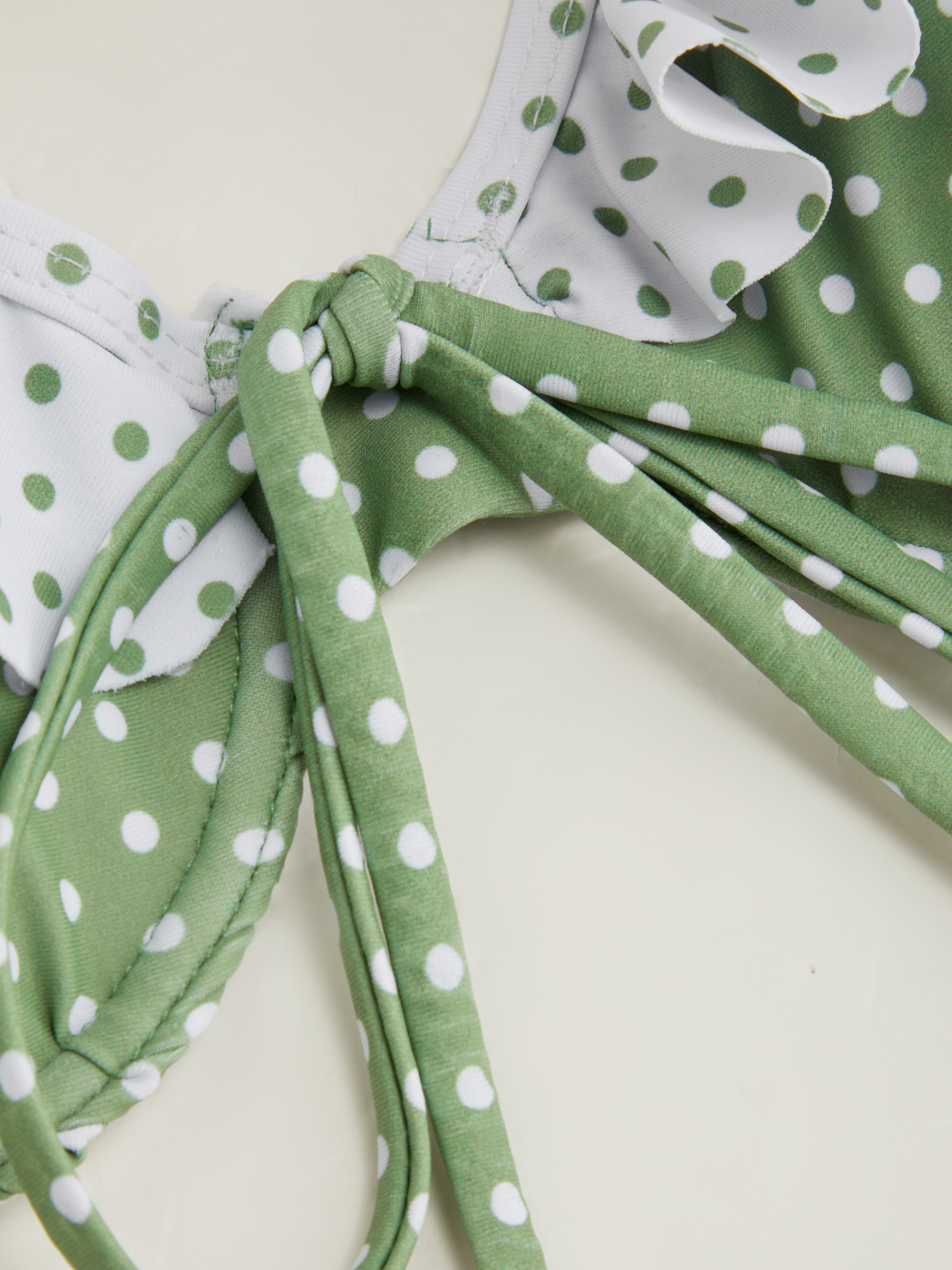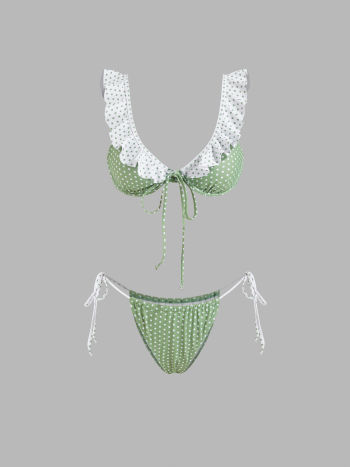 Set bikini con scollo a V e bordo in lattuga con ferretto e laccetto