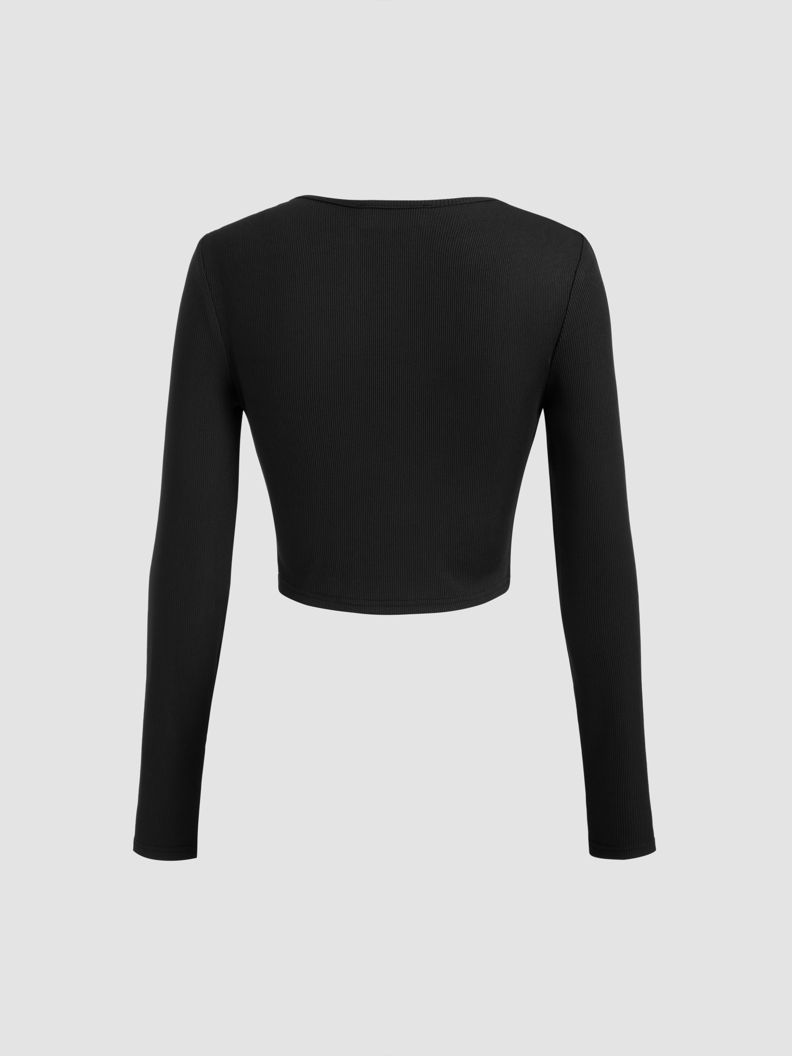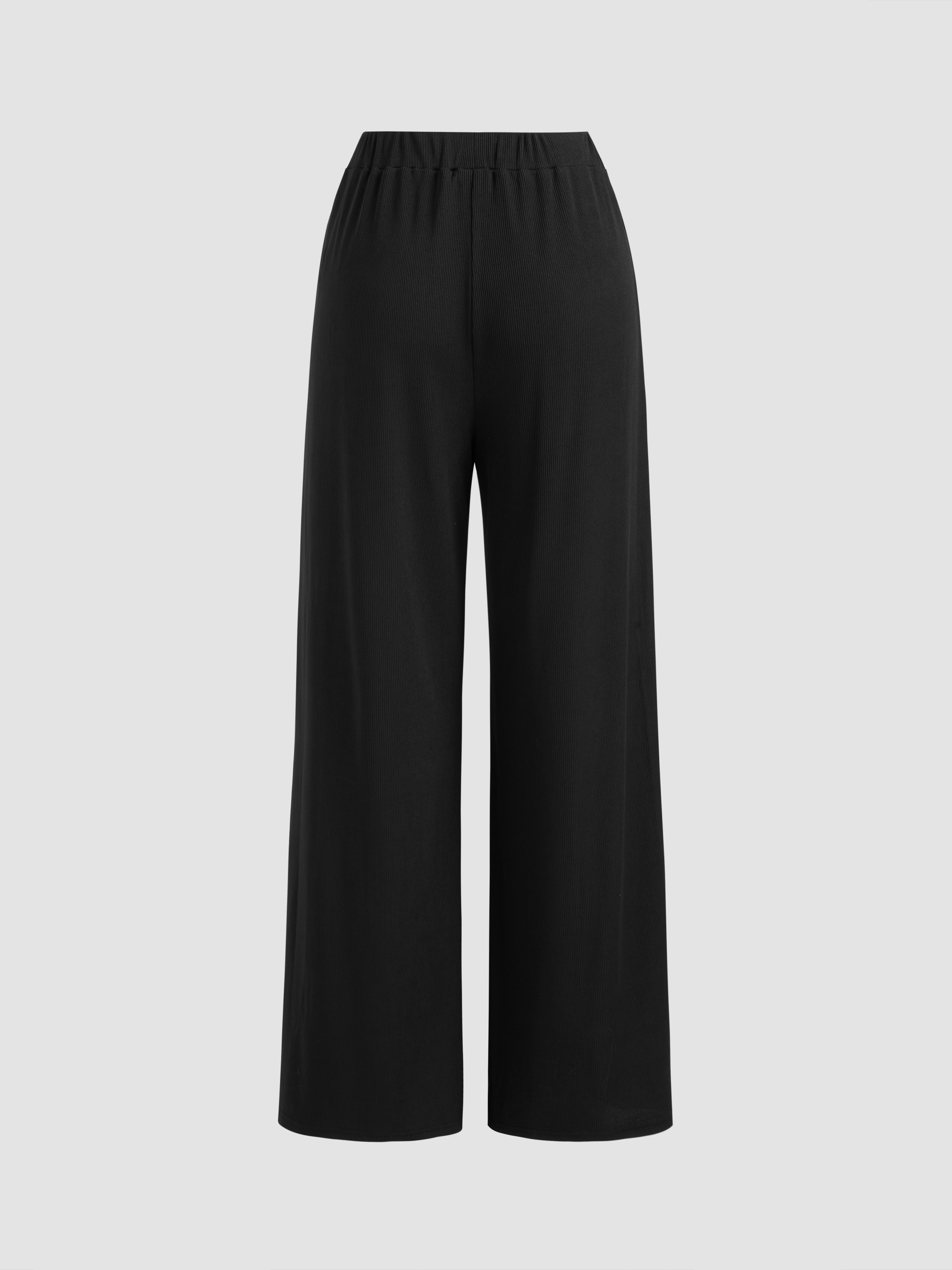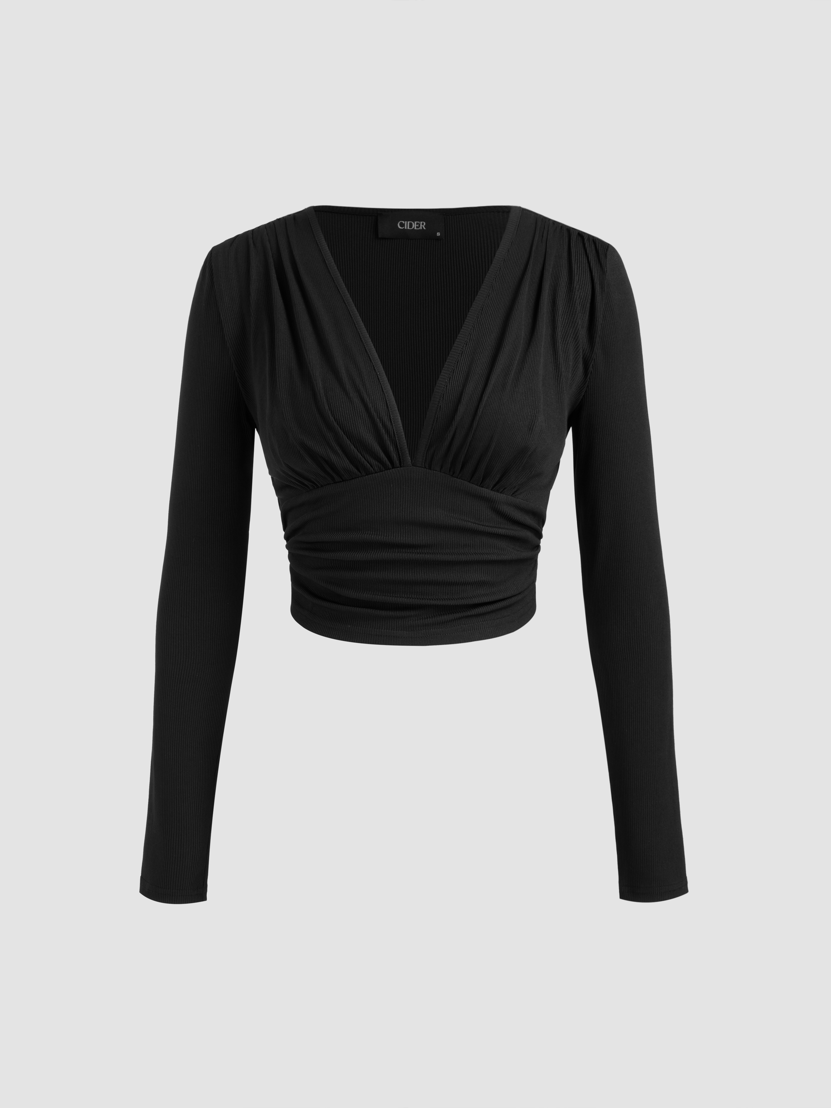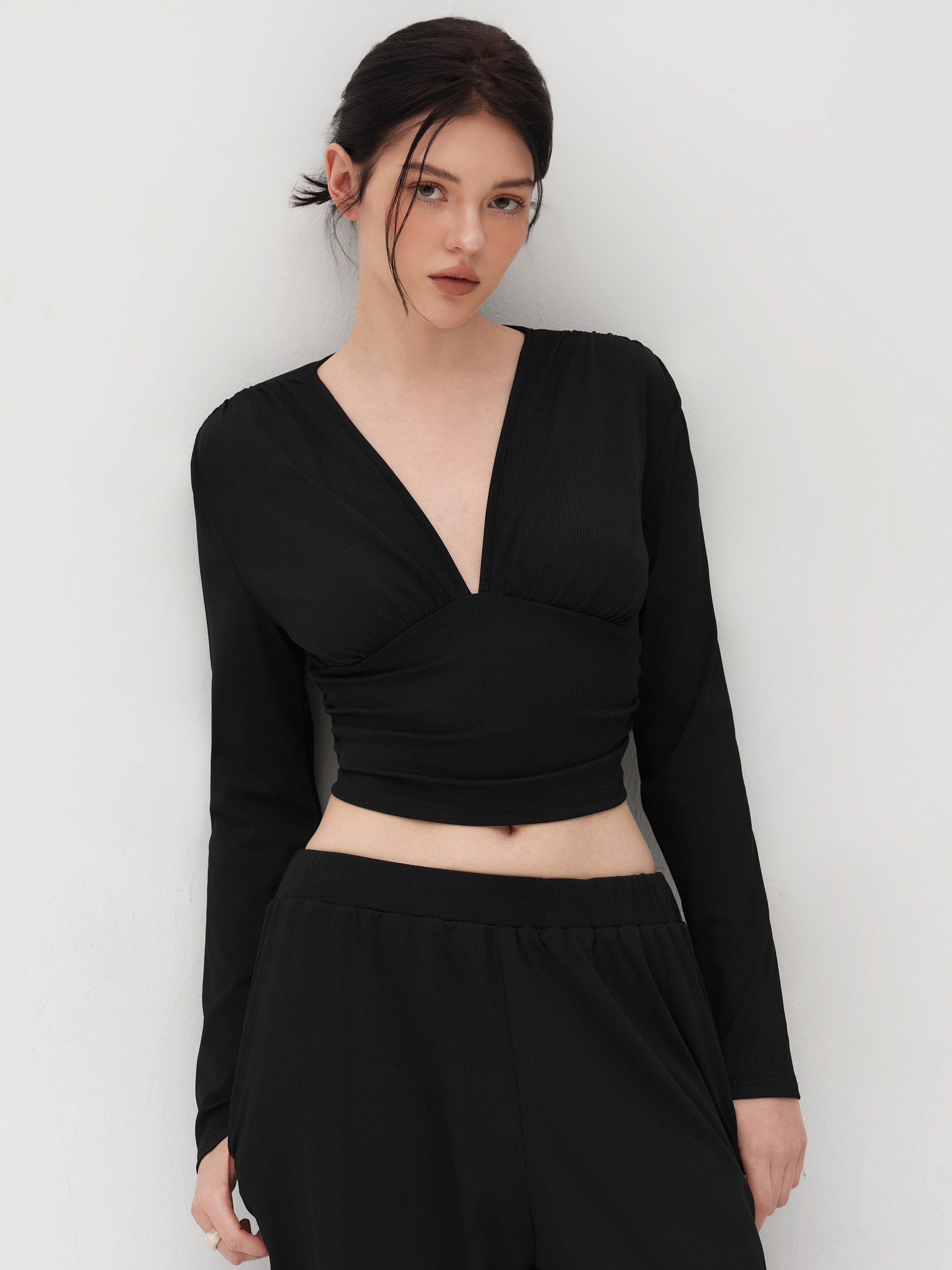 Crop Top con scollo a V e pantaloni a gamba larga a vita media in tinta unita con increspature.