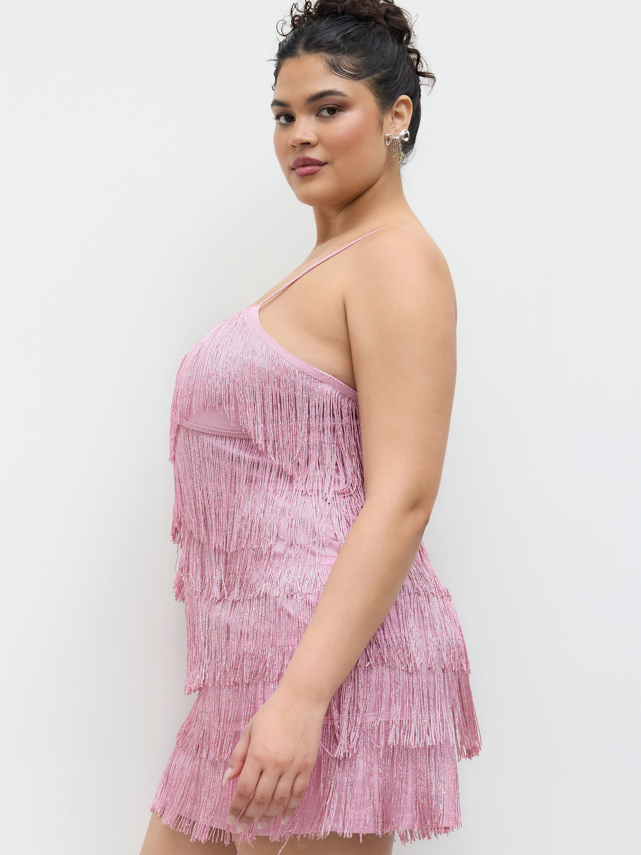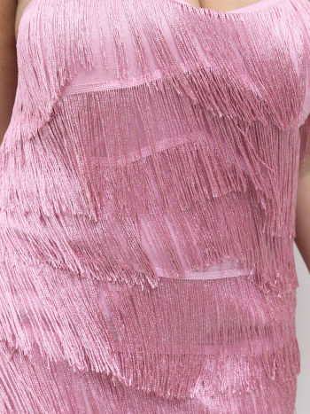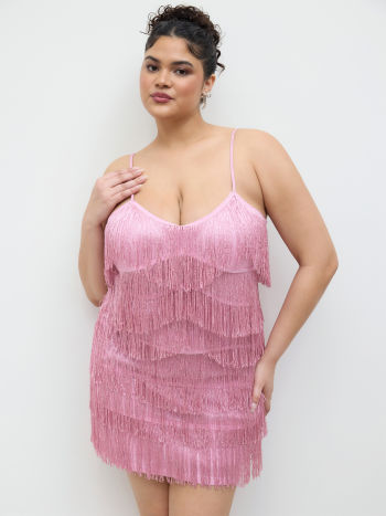 Mini abito a strati con nappe e scollo a V Taglie Curve & Plus