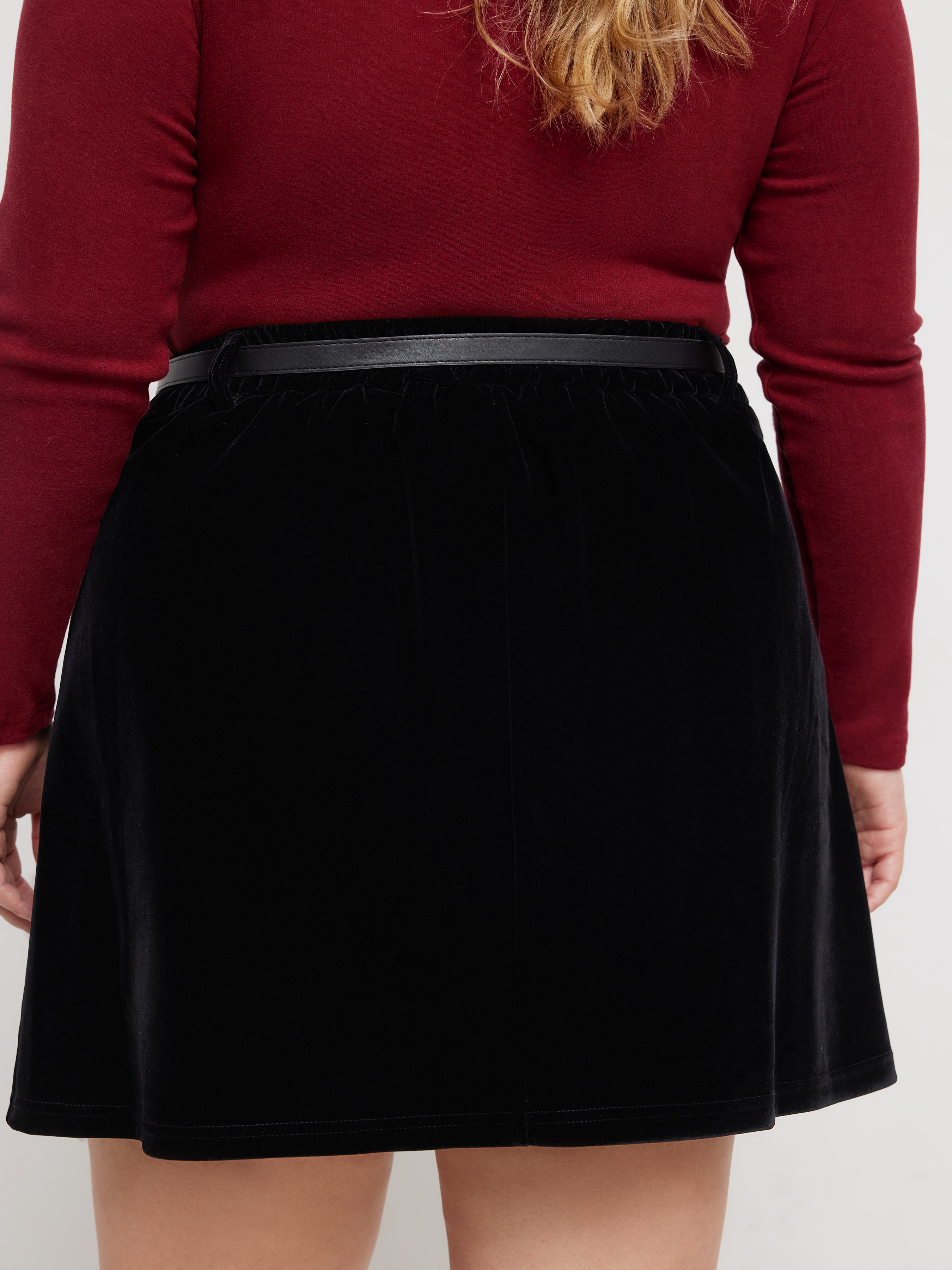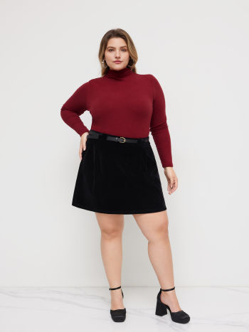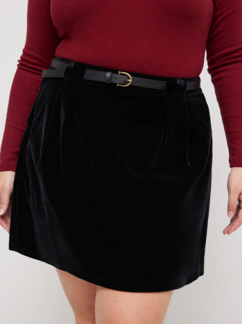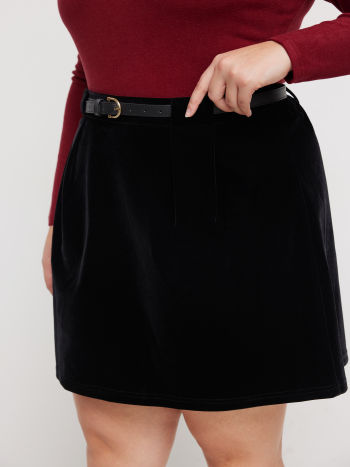 Minigonna in velluto a vita media con cintura Curve & Plus