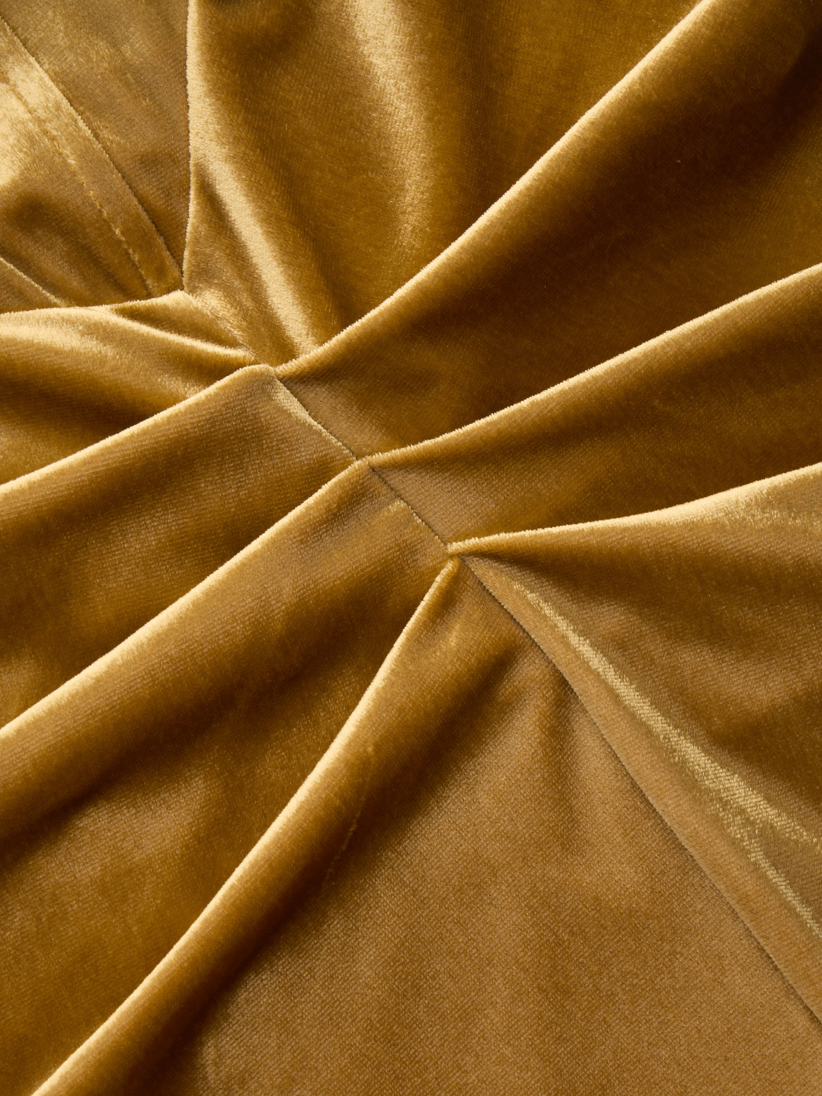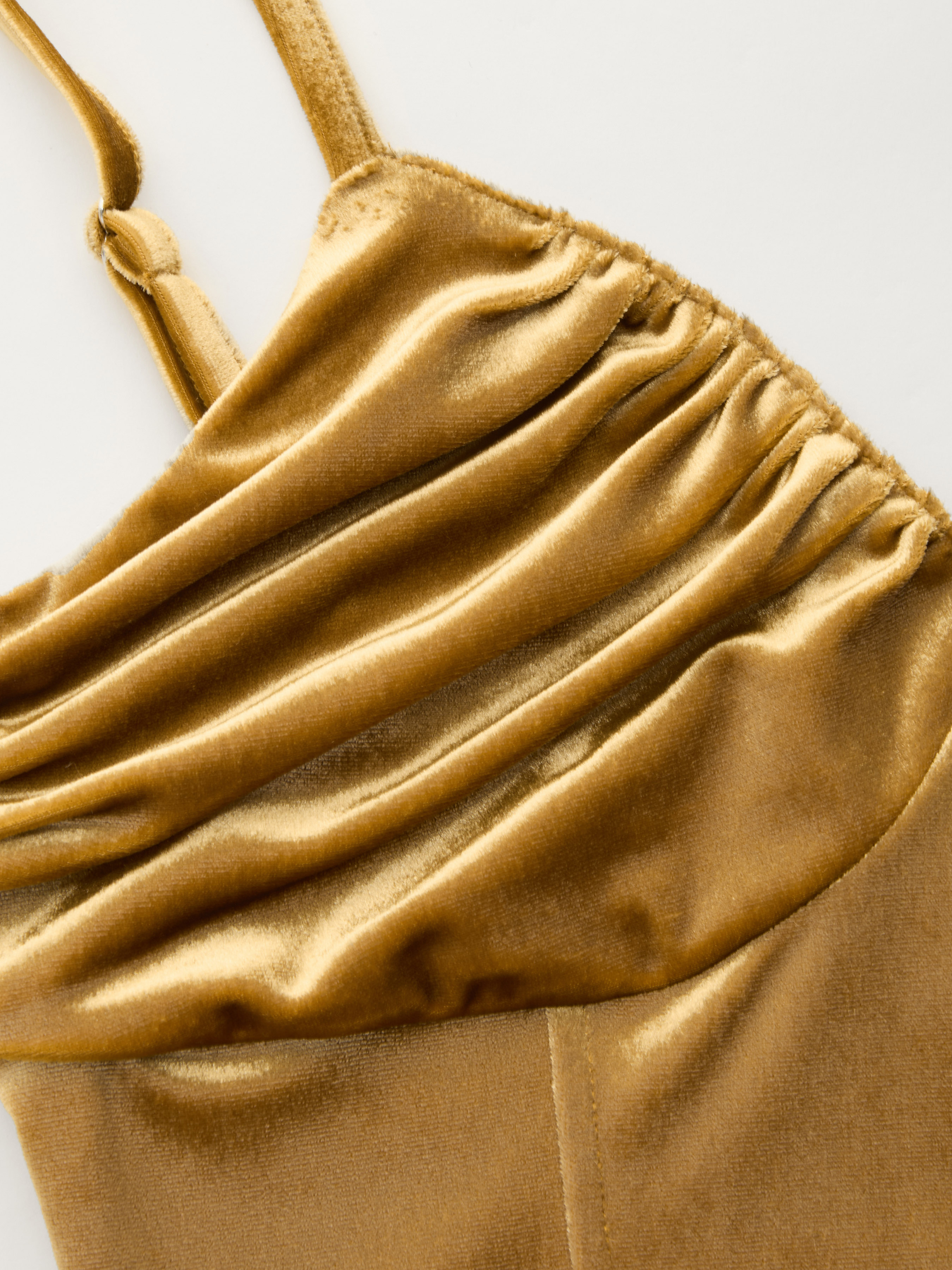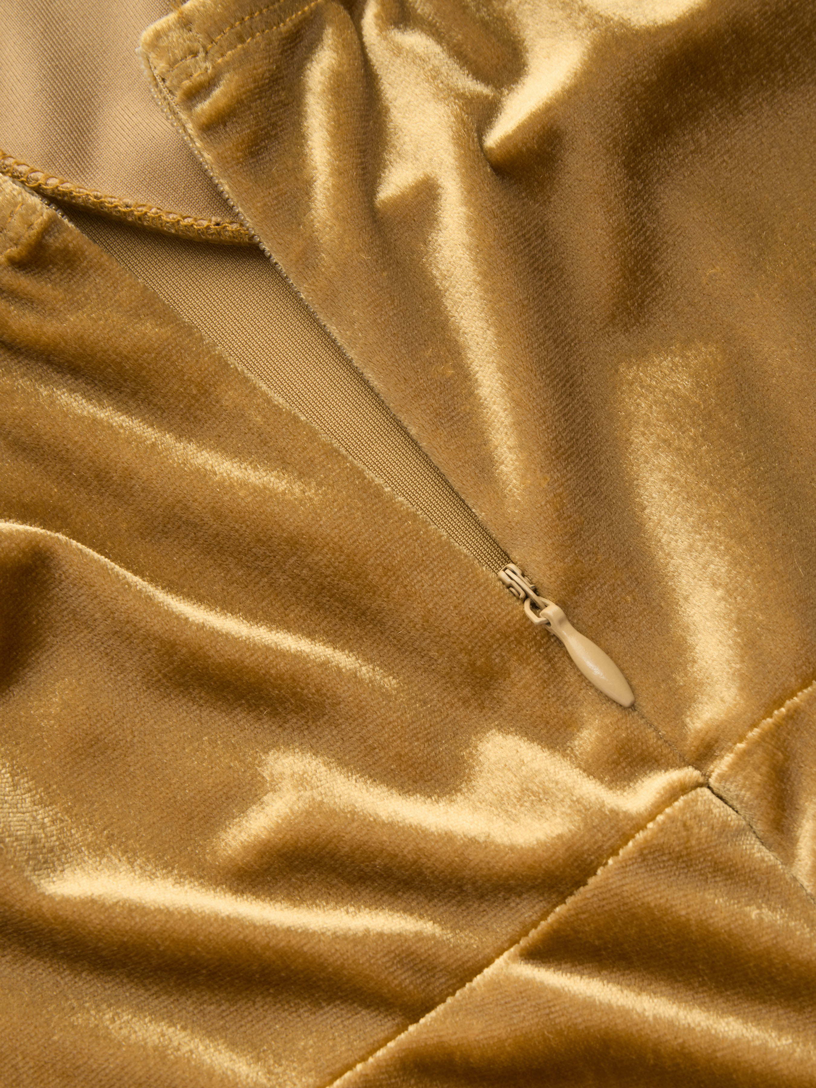 Vestito midi in velluto con scollo a V e spacco solido increspato